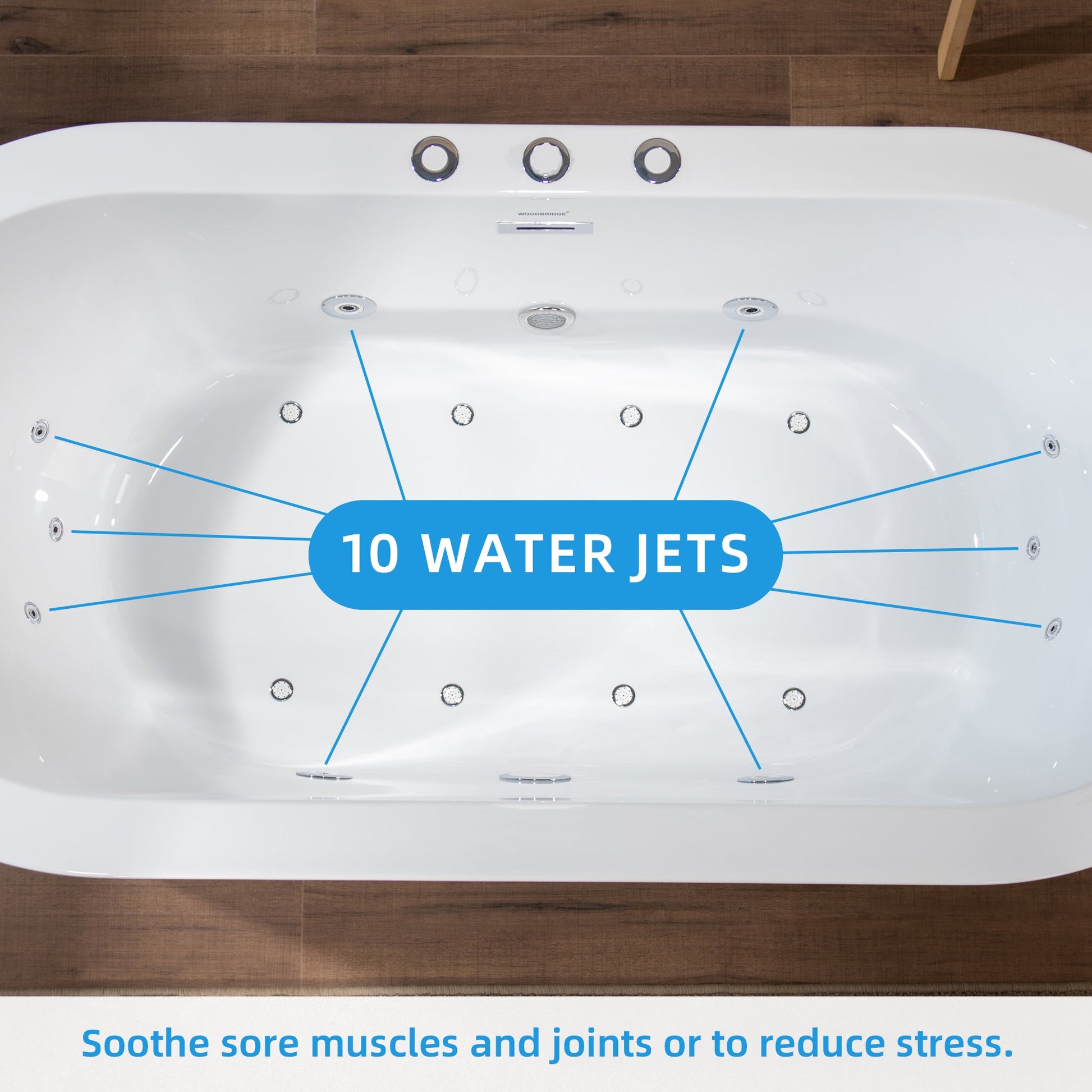 ? [JETS QUANTITY: 6 adjustable body massage jets and 10 whirlpool bubble bath jets for maximum bather comfort, The perfect mix of air and water delivers a powerful, yet comfortable hydro massage.