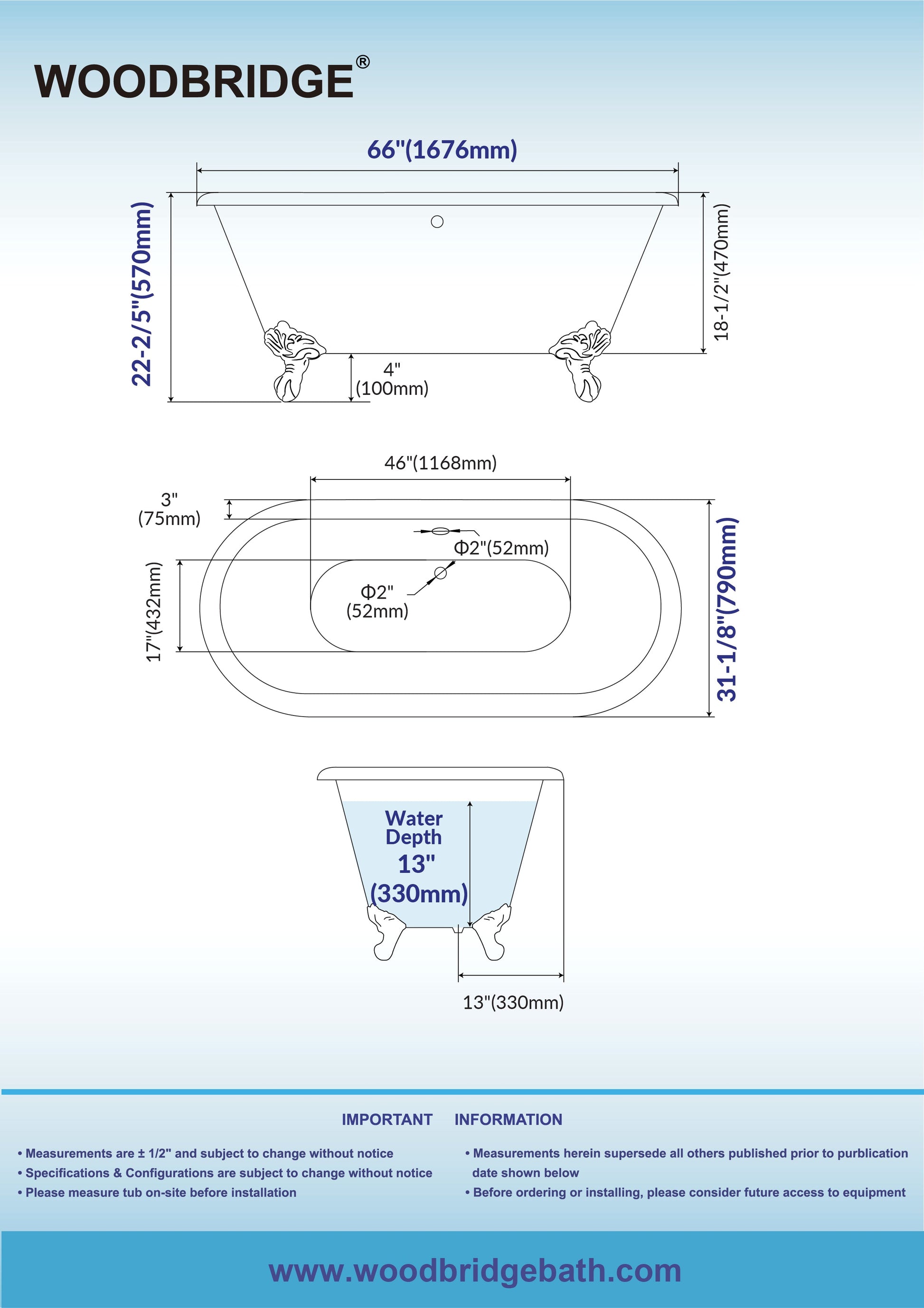 ? [PACKAGE INCLUDED]: Enameled cast iron bathtub, a complete set of chrome iron feet, and a user manual, all secured in a sturdy, fumigation-free wooden box to ensure safe delivery.