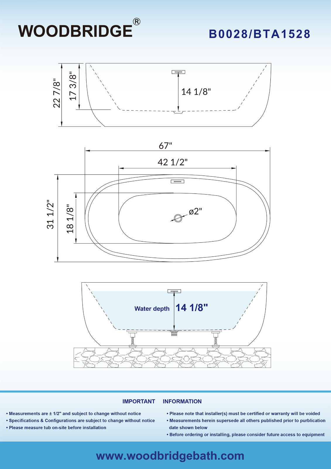 [PREMIUM QUALITY CONSTRUCTION]: Woodbridge bathtub is made out of 100% high gloss white LUCITE acrylic and reinforced with ASHLAND resin & fiberglass . All of these are top quality material which are rarely used by others due to a relatively high cost.