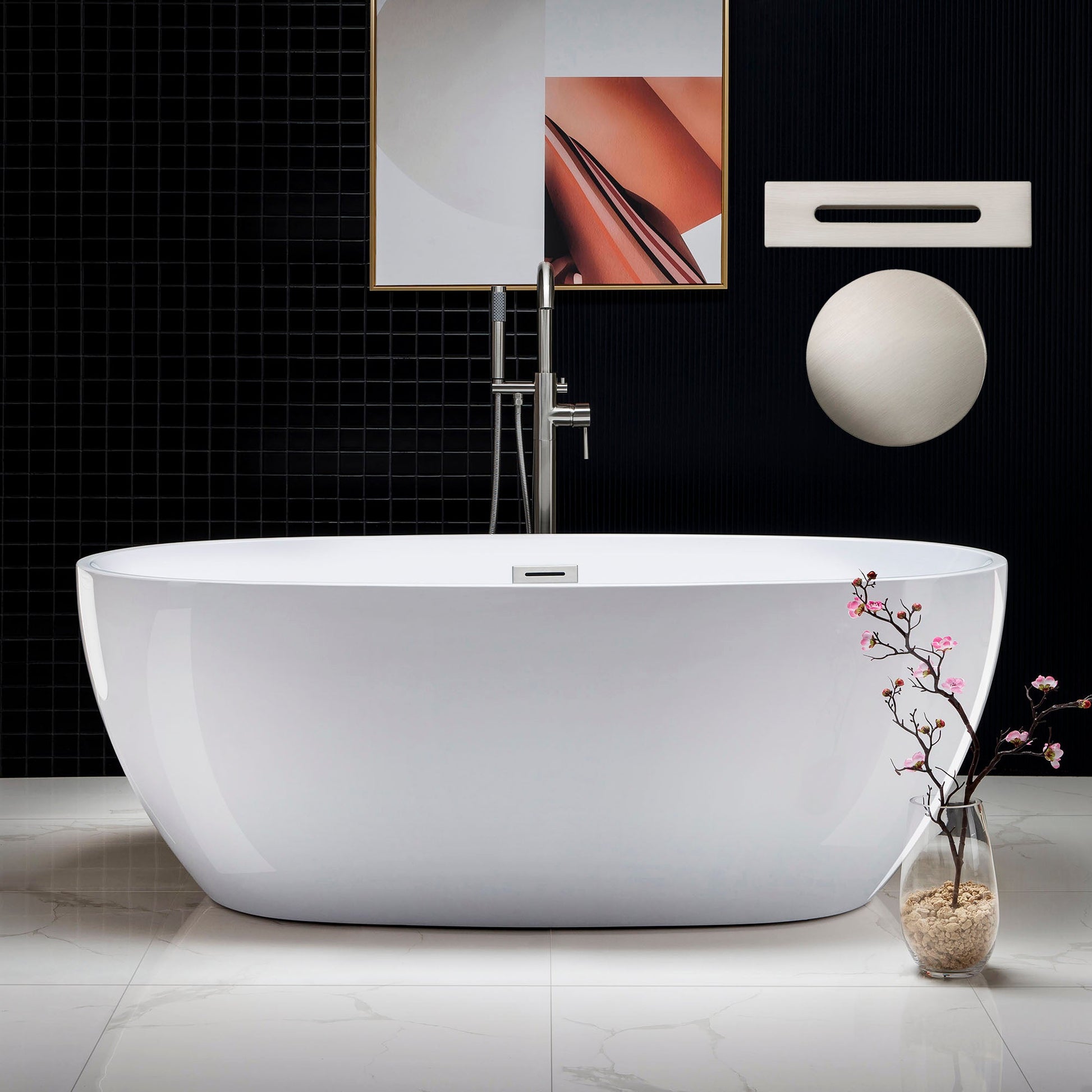 [PACKAGE INCLUDED]: Solid brass Brushed Nickel drain, stainless steel Brushed Nickel overflow, user & instruction manual. Besides, extremely solid package - very firm carton box is used to transport bathtubs, making sure a safe delivery.