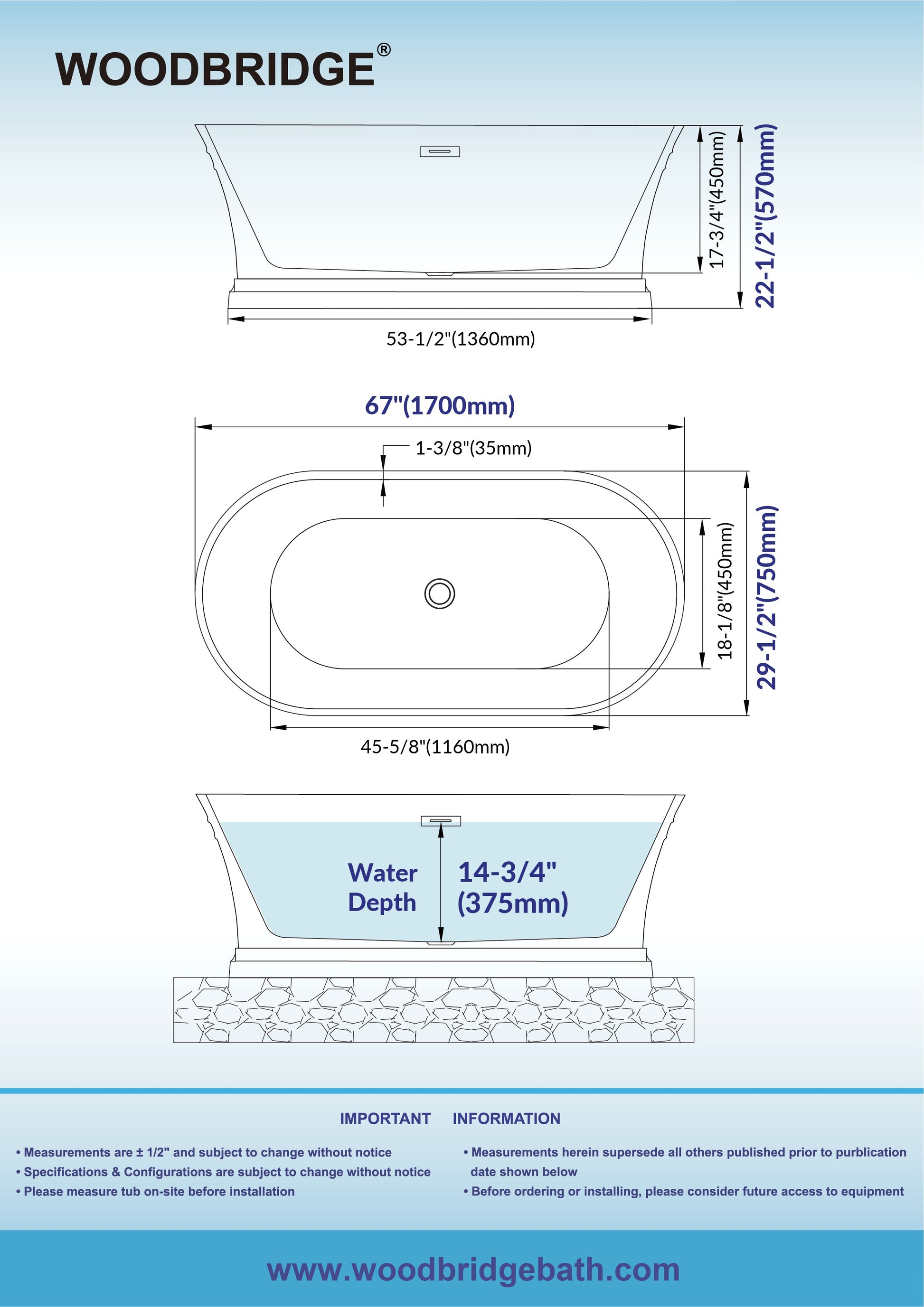 ? [PREMIUM QUALITY CONSTRUCTION]: WOODBRIDGE bathtub is made out of 100% high gloss white LUCITE acrylic and reinforced with ASHLAND resin & fiberglass . All of these are top quality material which are rarely used by others due to a relatively high cost.