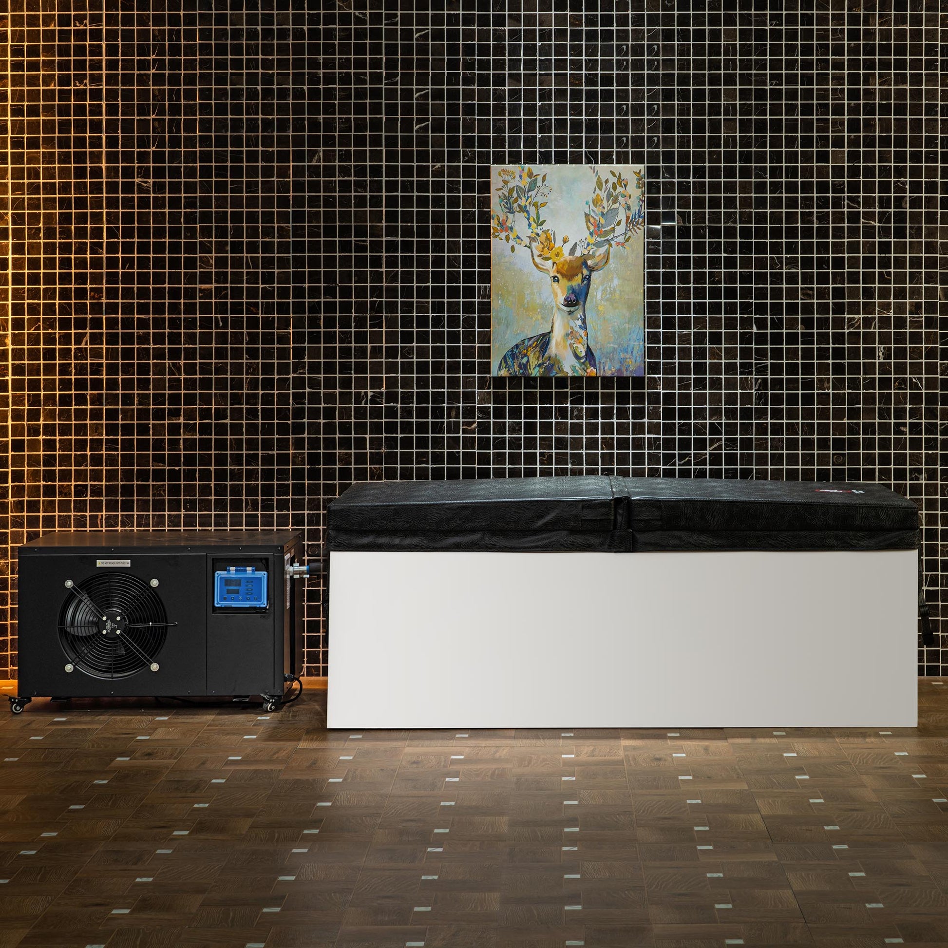 [FILTER CIRCULATION SYSTEM]: The chiller’s 5-micron filter removes unwanted debris from the water, ensuring continuous circulation and maintaining high water quality for an enhanced cold plunge experience.