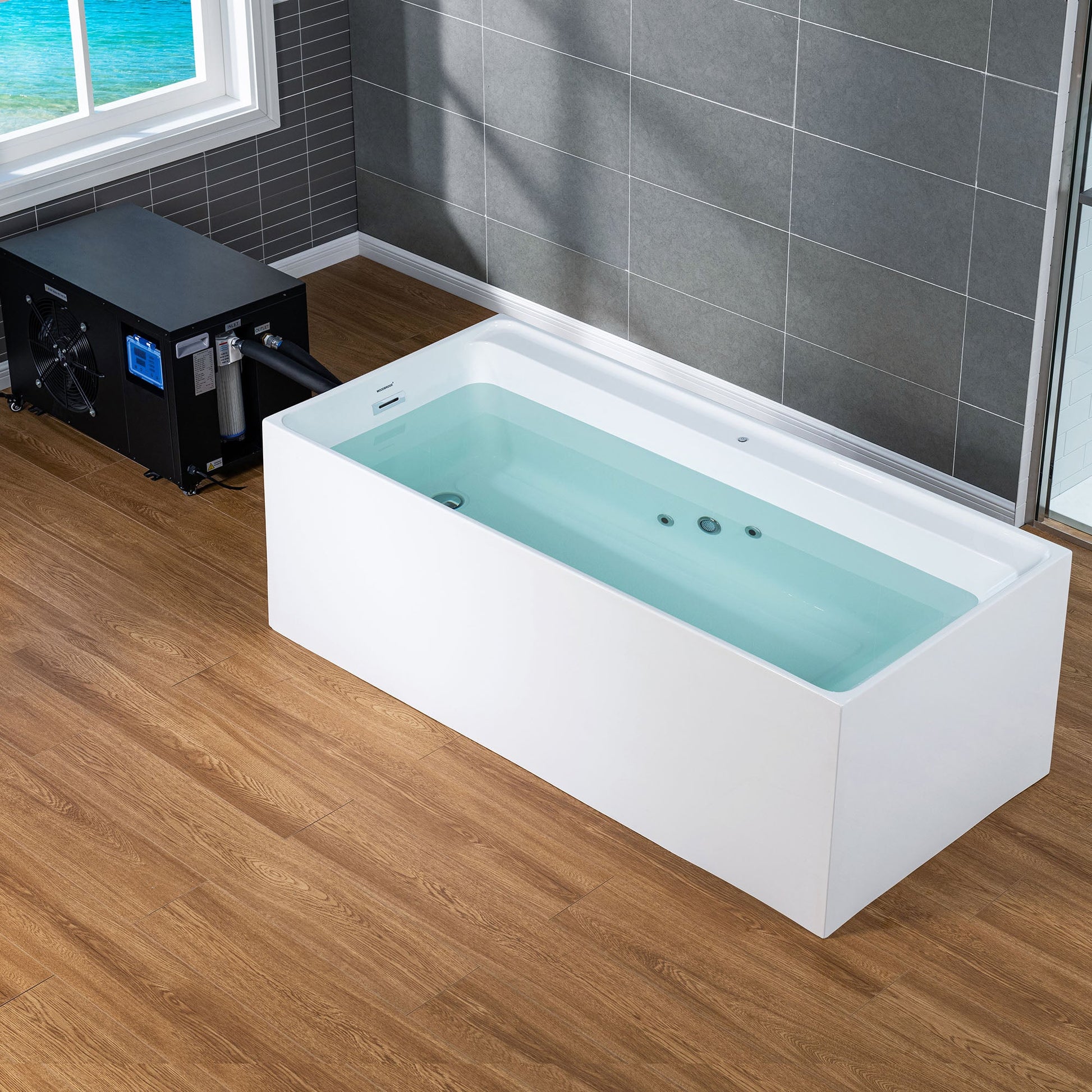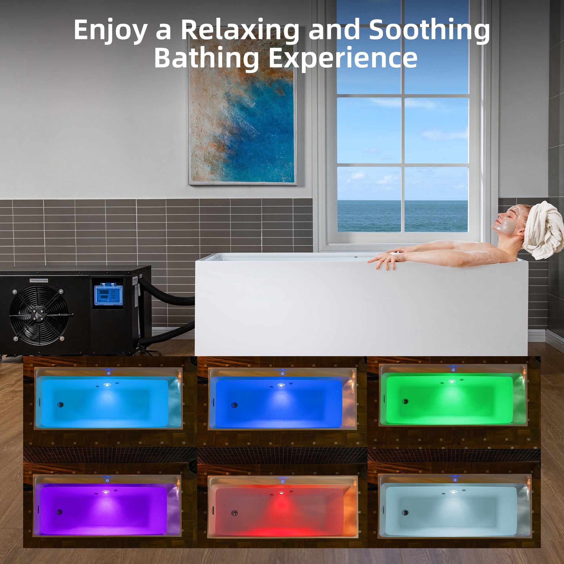 WOODBRIDGE 67" L x 31-1/2" W Freestanding Acrylic Cold Plunge Ice Tub with Chiller and Heater, Ozone sanitation, Filter circulation system, Insulated tub cover
