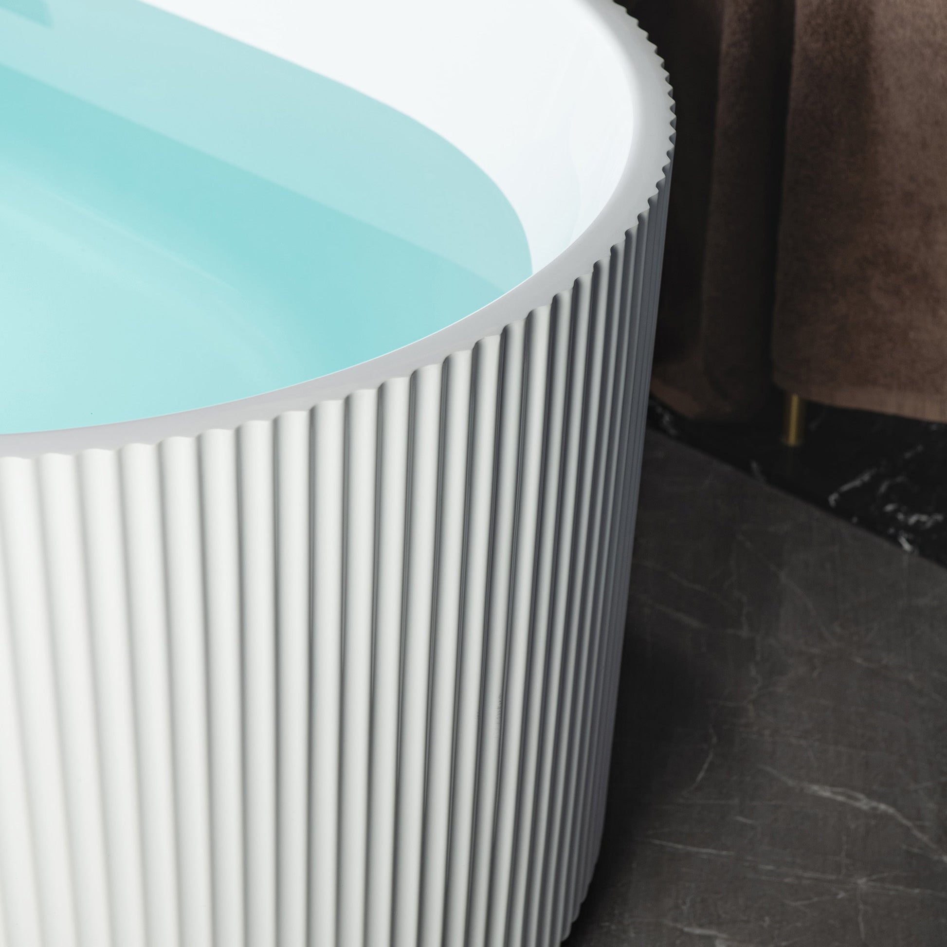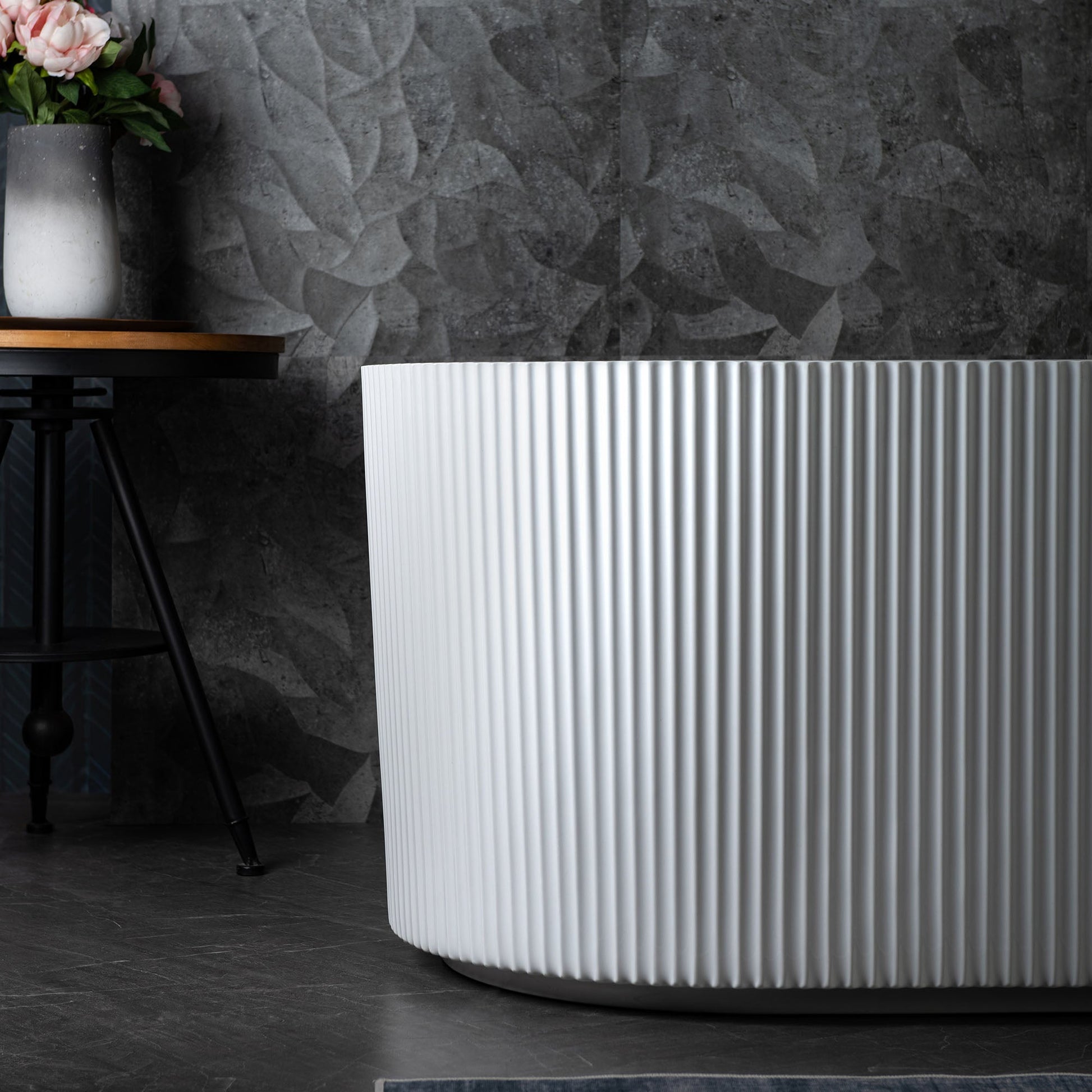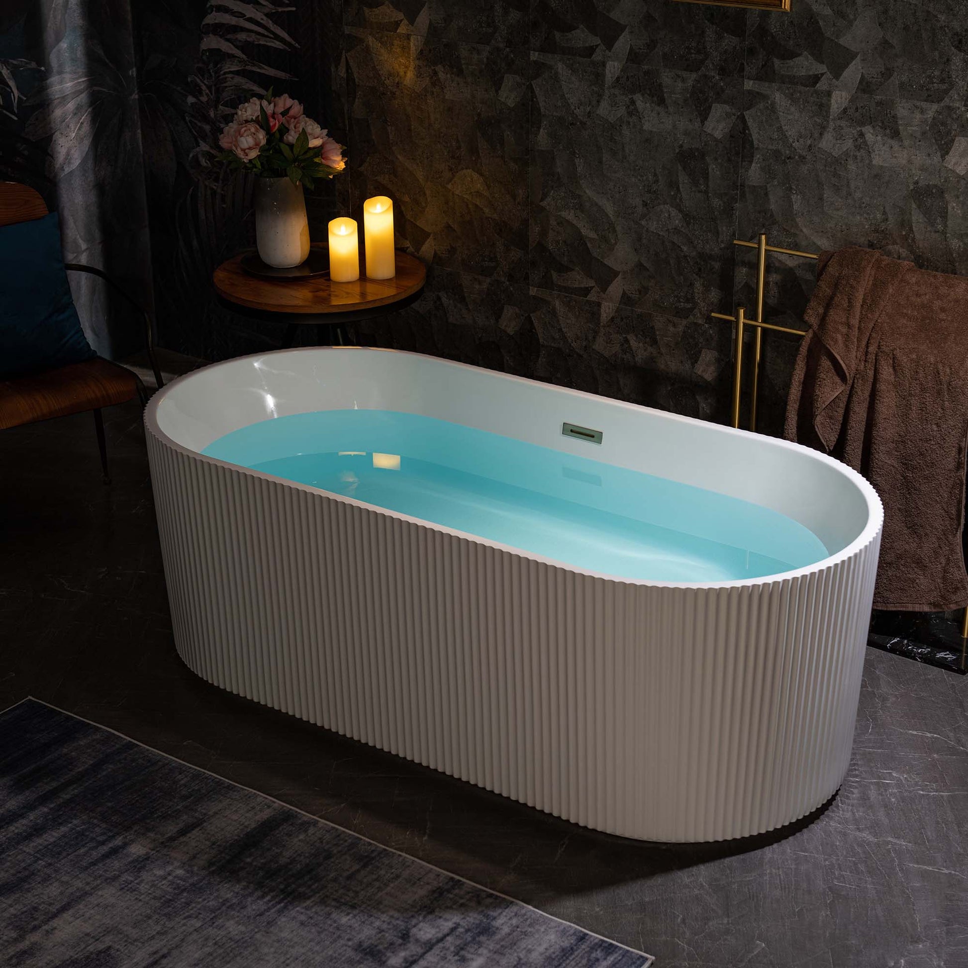 ? [UNIQUE PLEATED EXTERIOR]:This bathtub makes a statement with its unique pleated exterior, and “pleated” exterior adds unexpected texture to the bathroom.