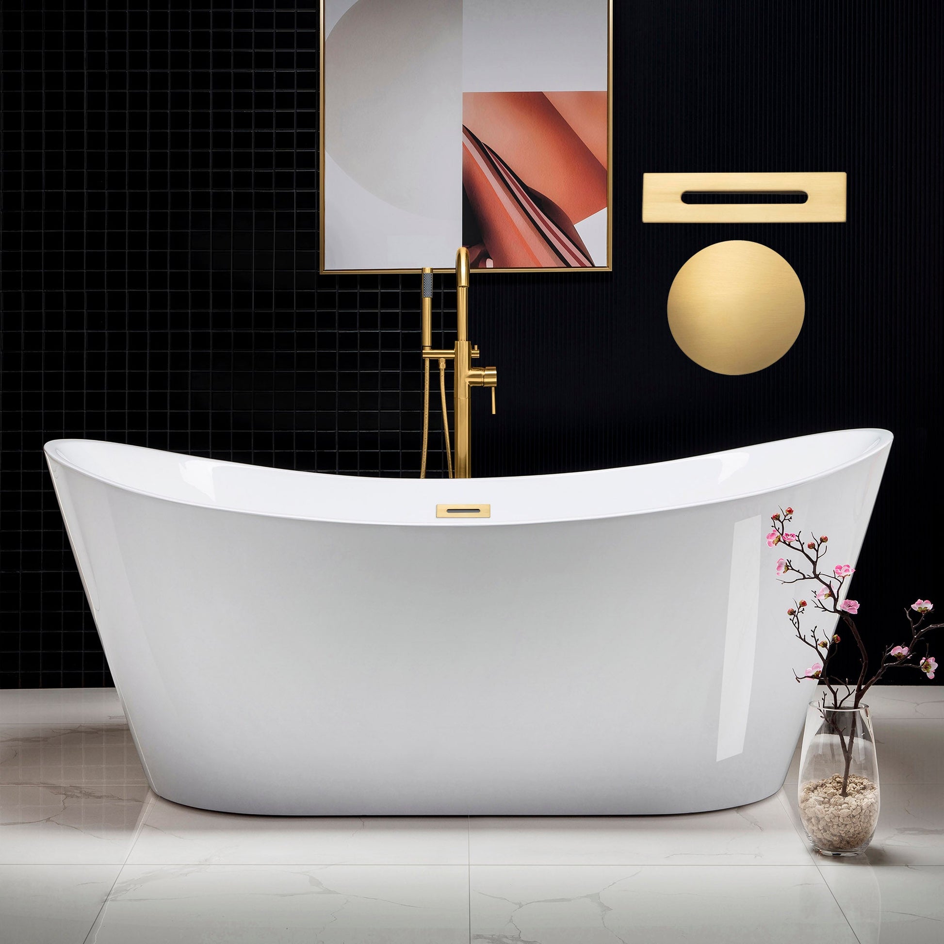 [PACKAGE INCLUDED]: Solid brass brushed nickel drain, Stainless steel brushed nickel Overflow, user & instruction manual. Besides, extremely solid package - very firm carton box is used to transport bathtubs, making sure a safe delivery.