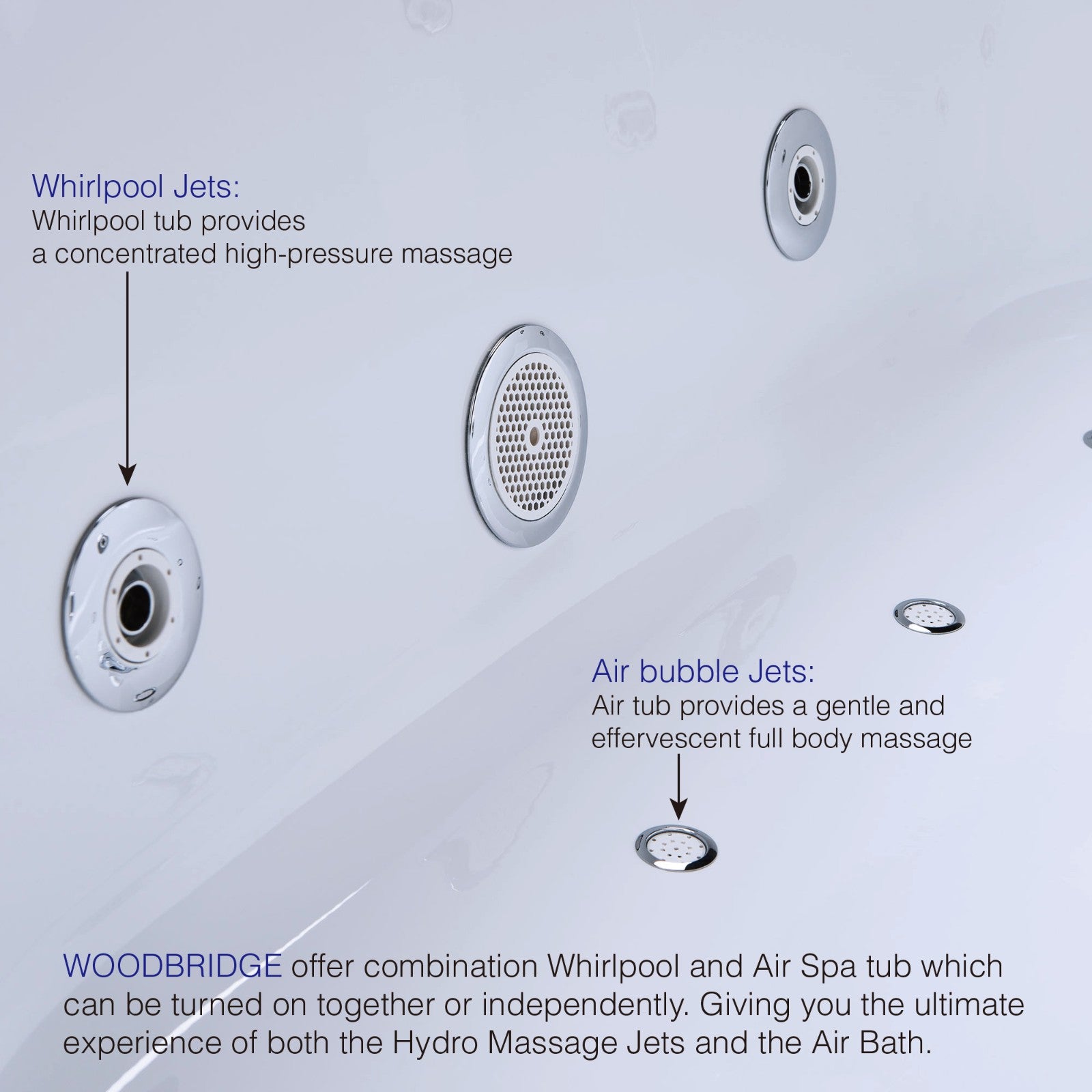 [WHIRLPOOL AND AIR BUBBLE]WOODBRIDGE Deluxe acrylic Freestanding bathtub combines with Whirlpool and Air Bubble Jets in one tub