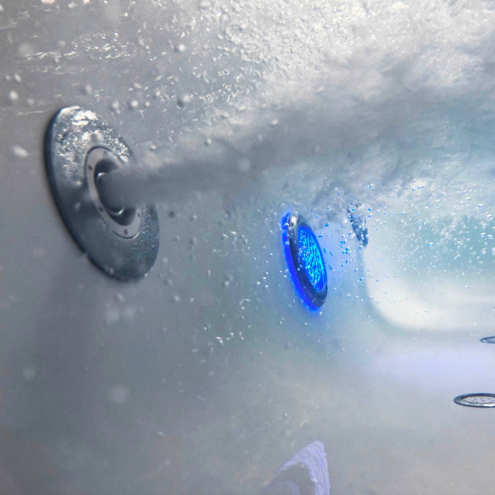 ? [STAINLESS STEEL JETS] Stainless Steel sanitary full-draining jets , underwater chromotherapy light, Spaciously designed to provide maximum bathing space with a wide and deep bathing well