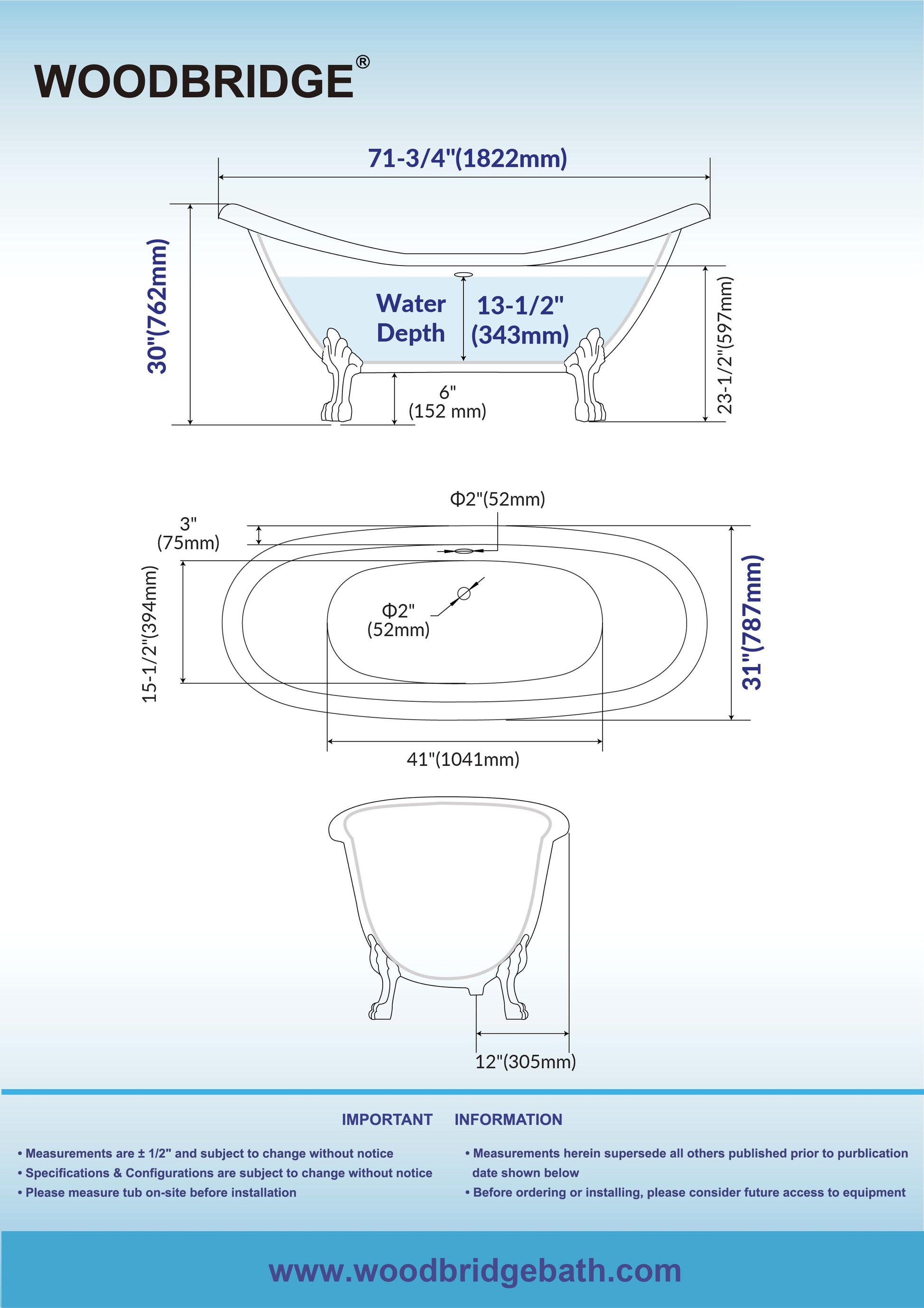 ? [PACKAGE INCLUDED]: Enameled cast iron bathtub, a complete set of chrome iron feet, and a user manual, all secured in a sturdy, fumigation-free wooden box to ensure safe delivery.