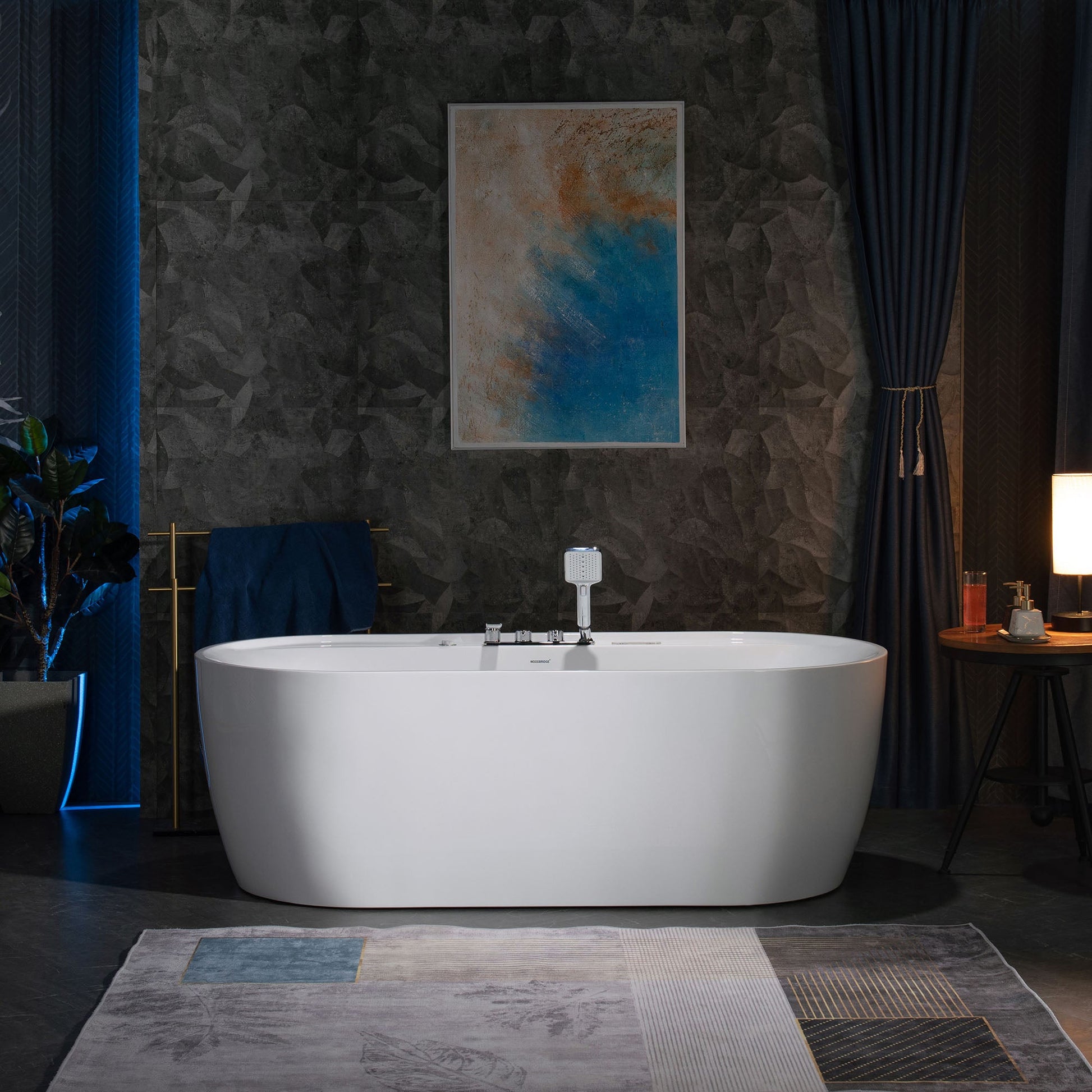 ? [WHIRLPOOL AND AIR BUBBLE]: WOODBRIDGE Deluxe acrylic Freestanding bathtub combines with Whirlpool and Air Bubble Jets in one tub.