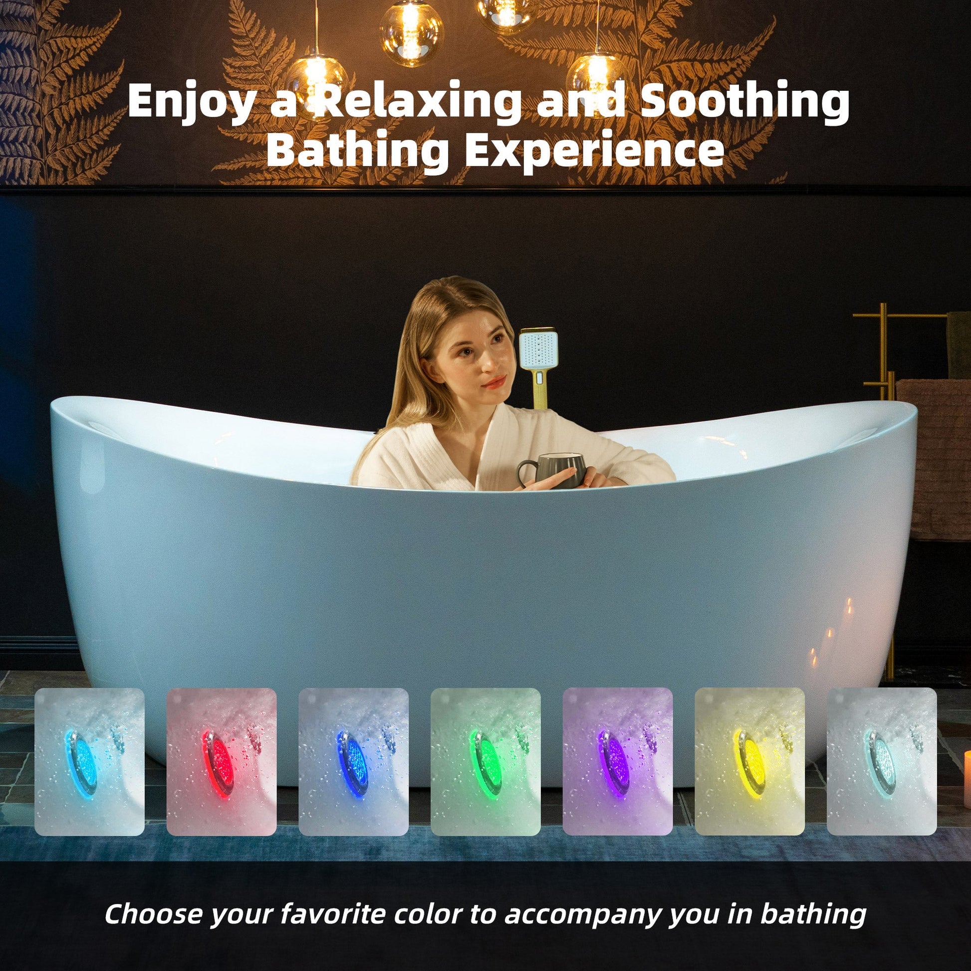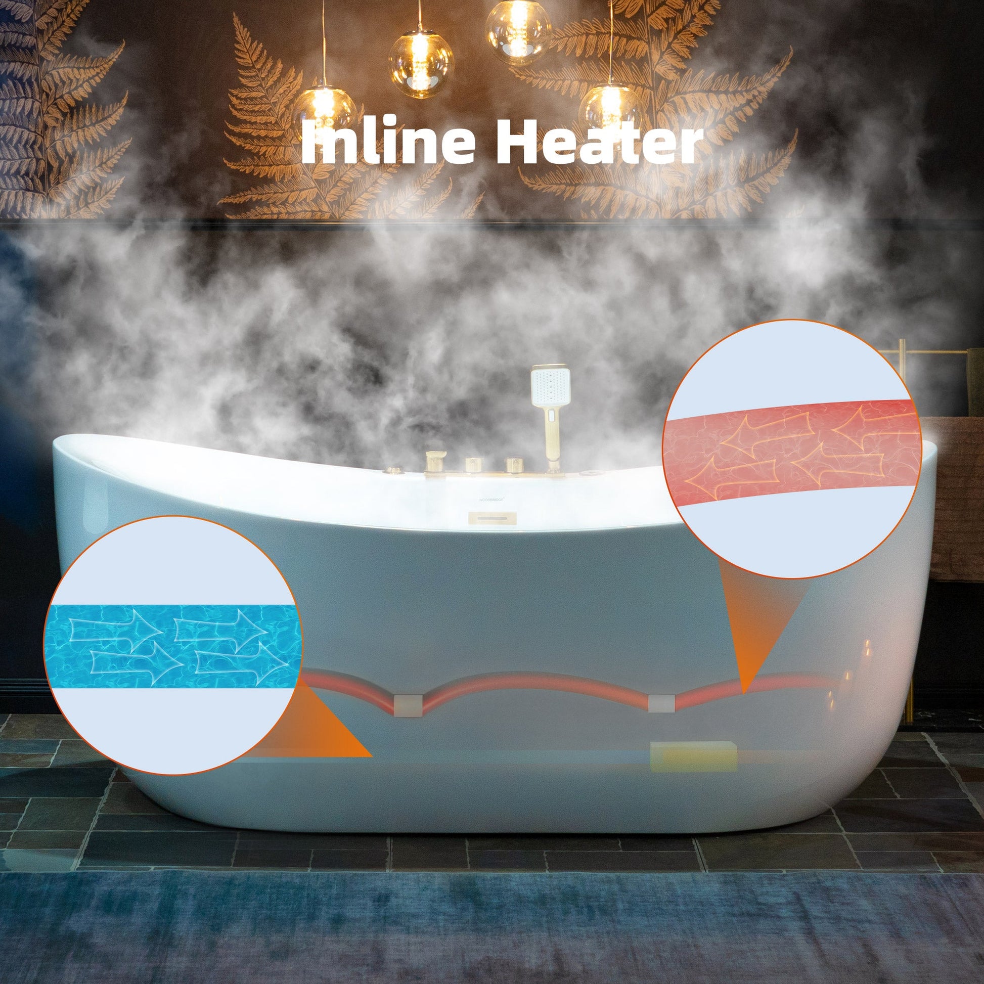 [HEATED SOAKING TUB]: With Inline Heater. This bathtub allows for a longer soak without adding more hot water. Setting the water temperature on LED control panel. Enjoy a hot bath for the entire bathing experience.