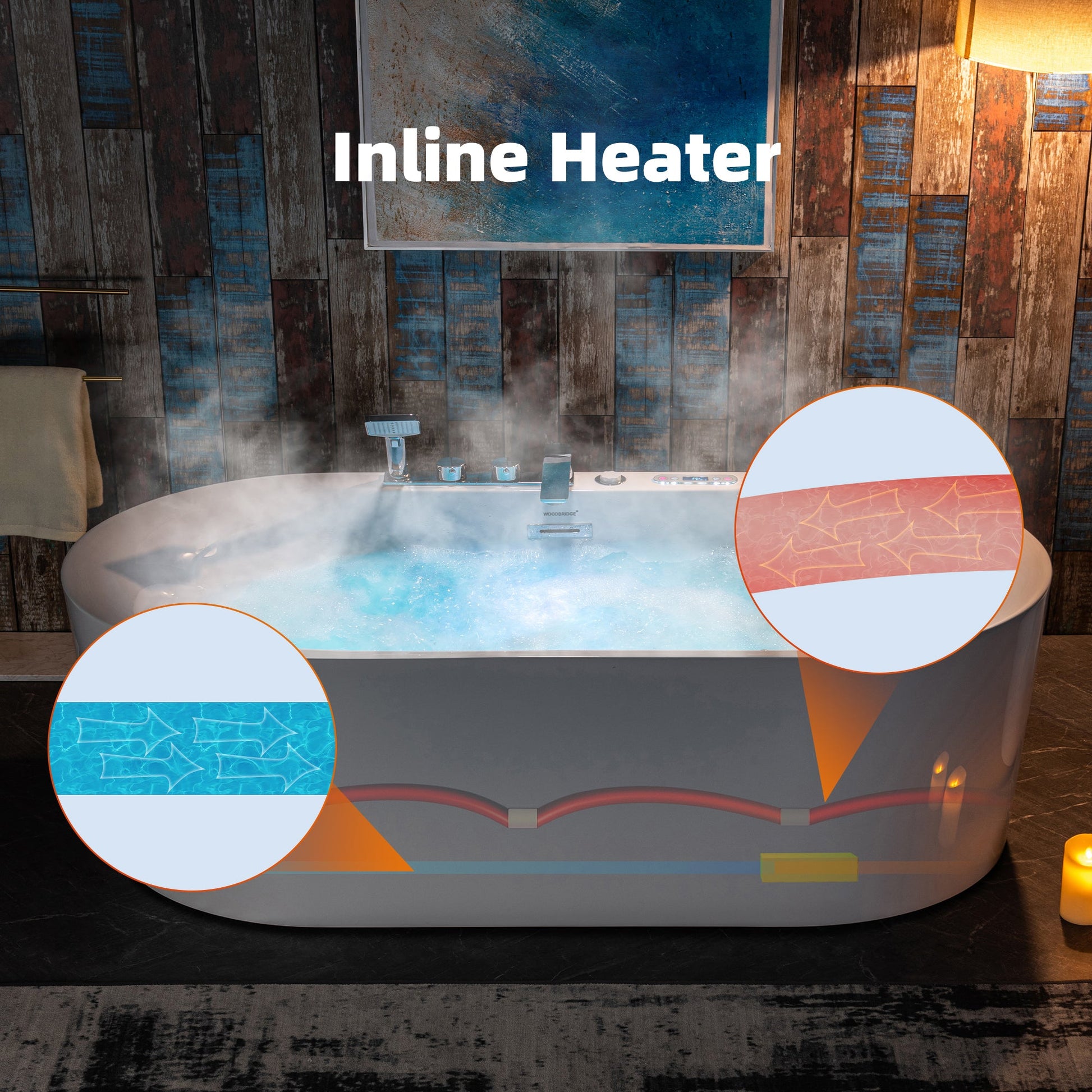 ? [HEATED SOAKING TUB]: With Inline Heater. This bathtub allows for a longer soak without adding more hot water. Setting the water temperature on LED control panel. Enjoy a hot bath for the entire bathing experience.