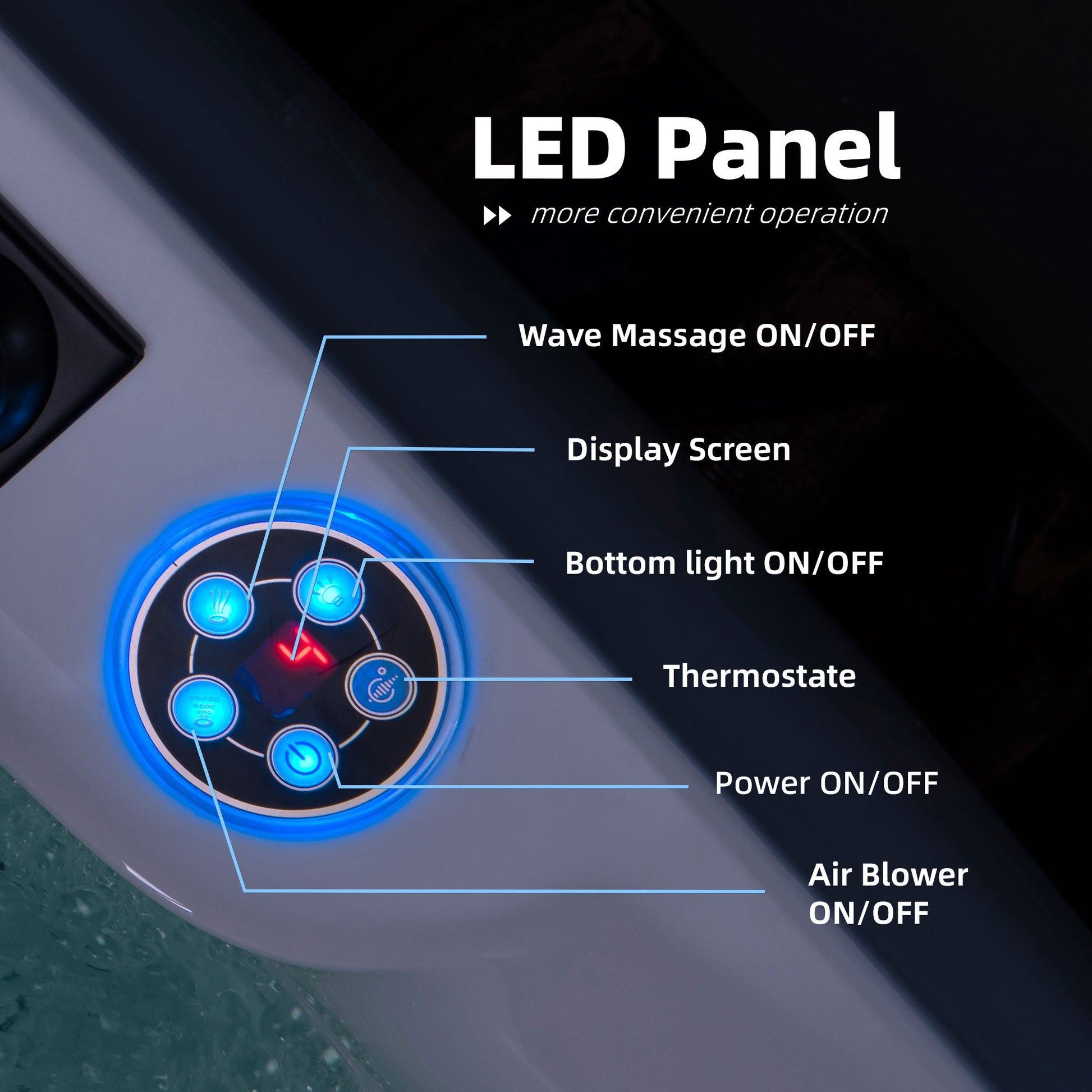 [Chromatherapy Lights]: Our chromatherapy LED lights feature has been upgraded, allowing users to manually select their preferred color and even pause the lighting effect. This enhancement enhances the spa experience, whether you seek to uplift your mood or simply unwind in relaxation.