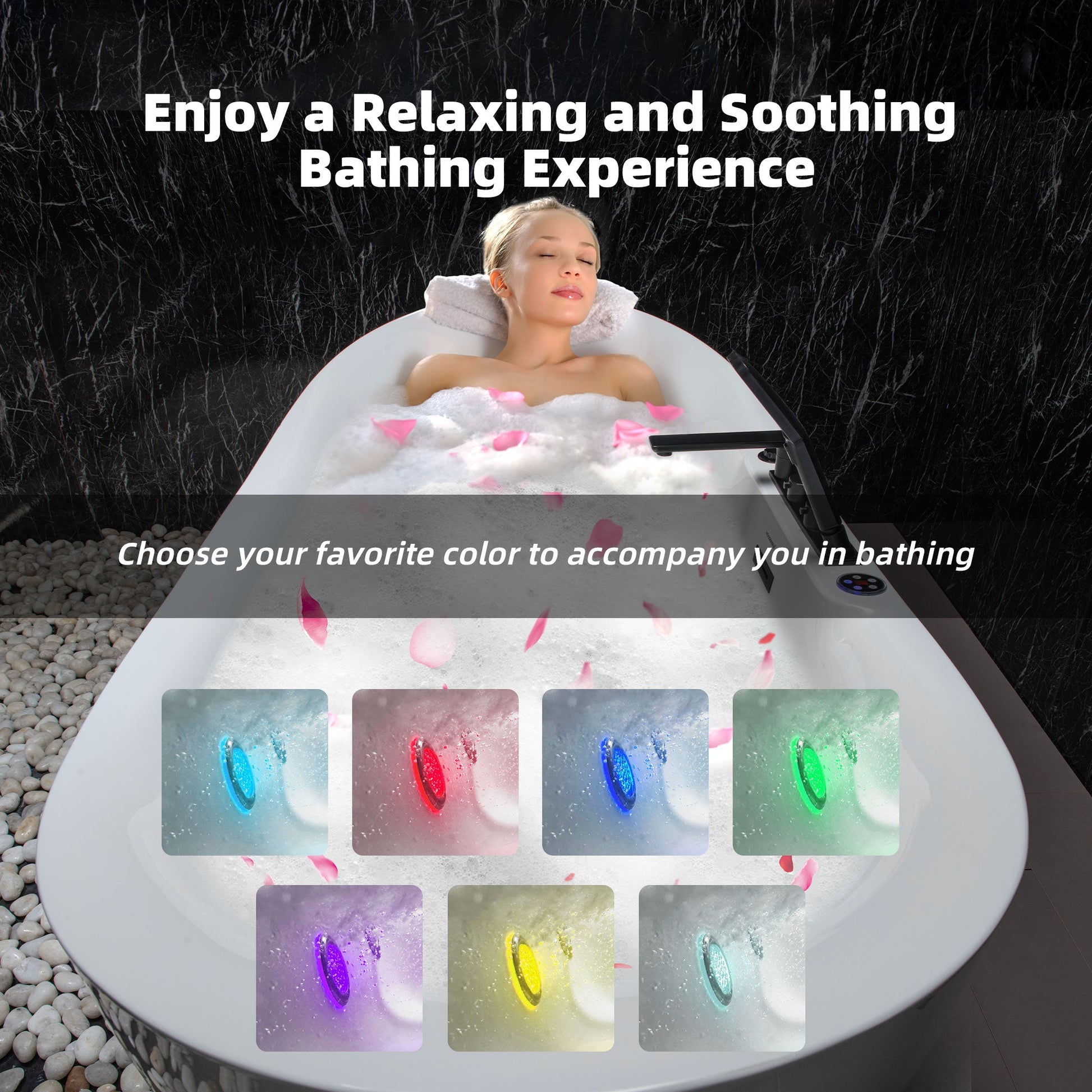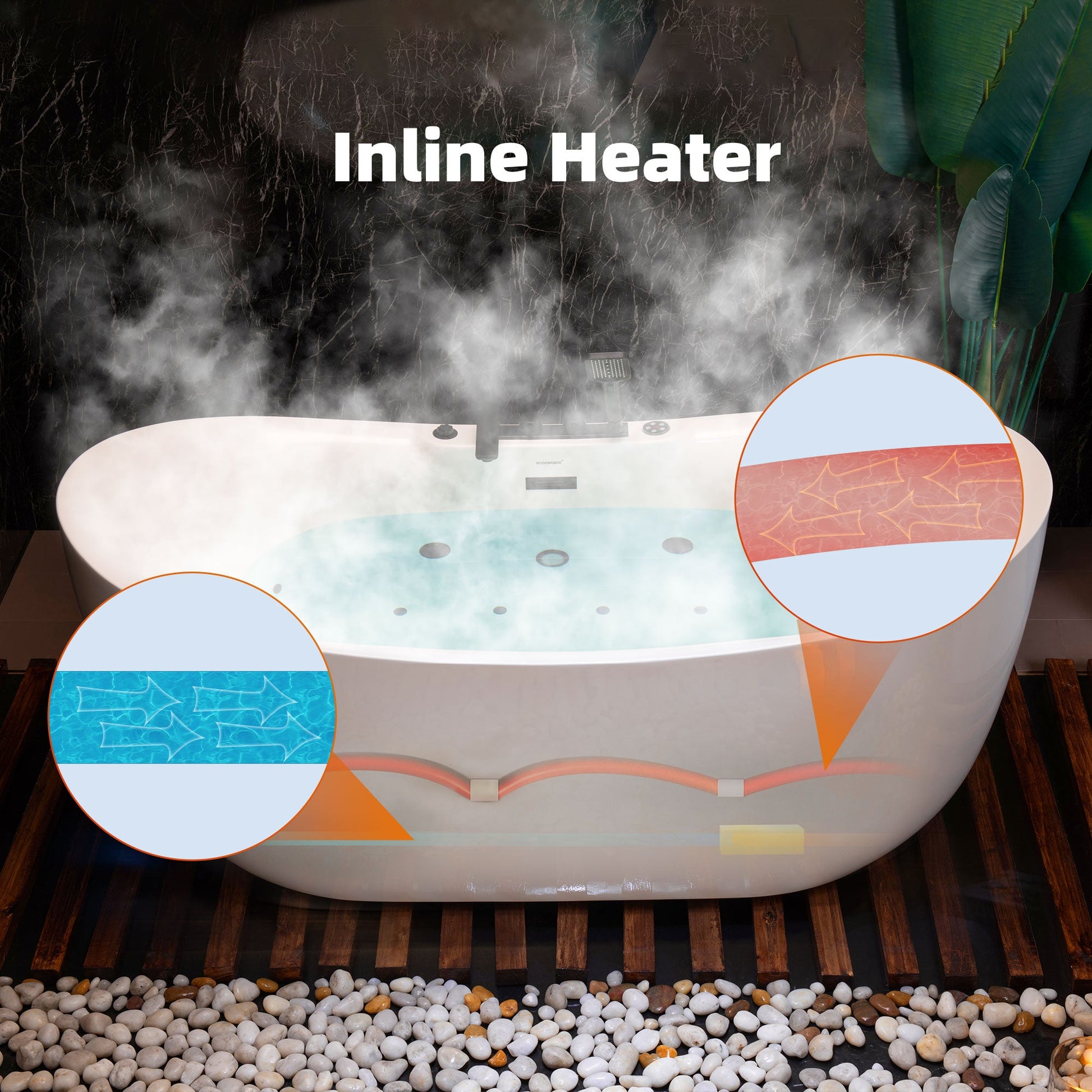 [HEATED SOAKING TUB]: Equipped with an inline heater, this bathtub enables extended soaking without the need for additional hot water. Easily set and control the water temperature using the LED control panel, ensuring a consistently warm bath throughout the entire bathing experience.