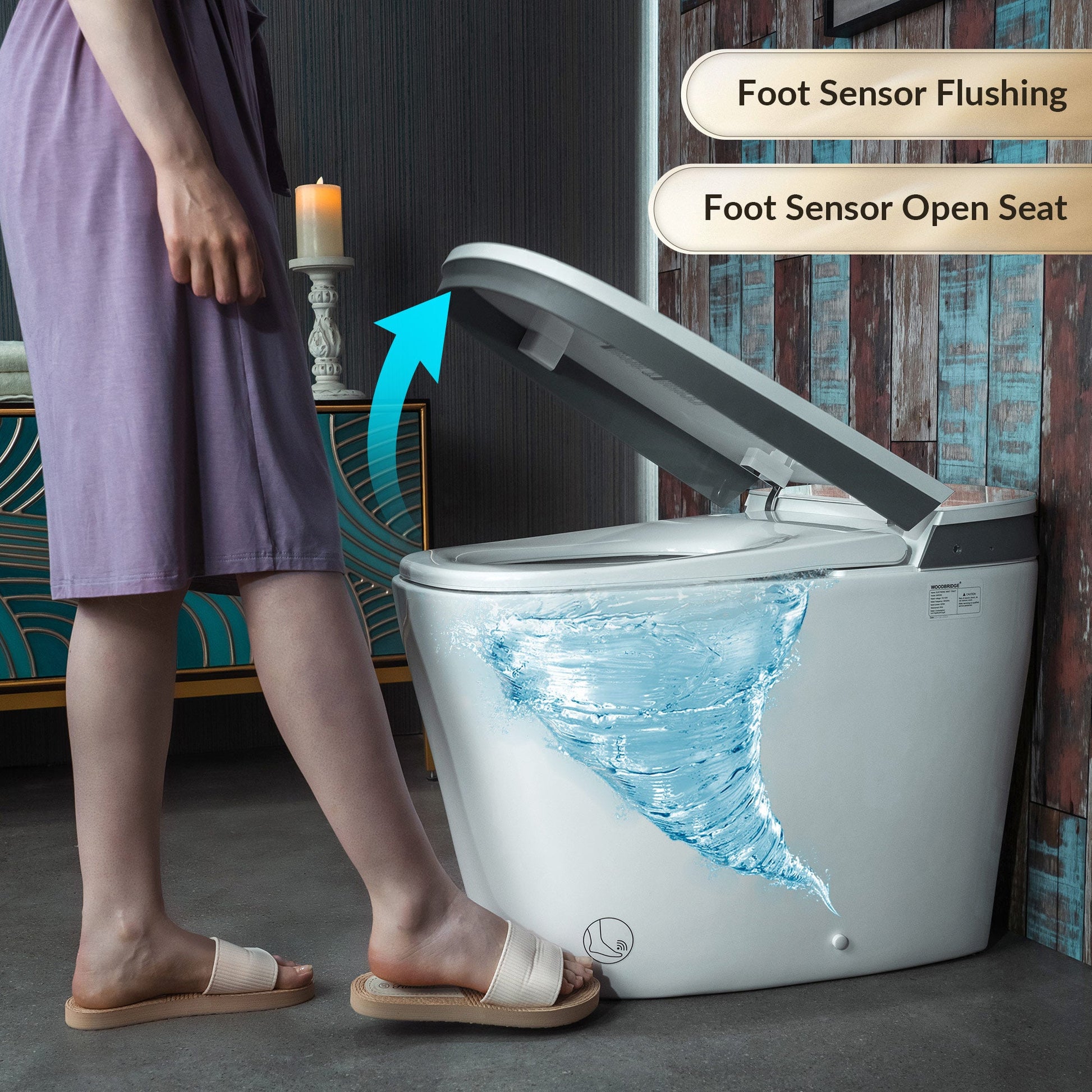 WOODBRIDGE B0931S Smart Bidet Toilet with 1.28 GPF Dual Flush Auto Open & Close, Foot Sensor Flush, Voice Control,1000 Gram Map Flushing Score, Movement Drying, LED Display, Chair Height Design and Cleaning Foam Dispenser