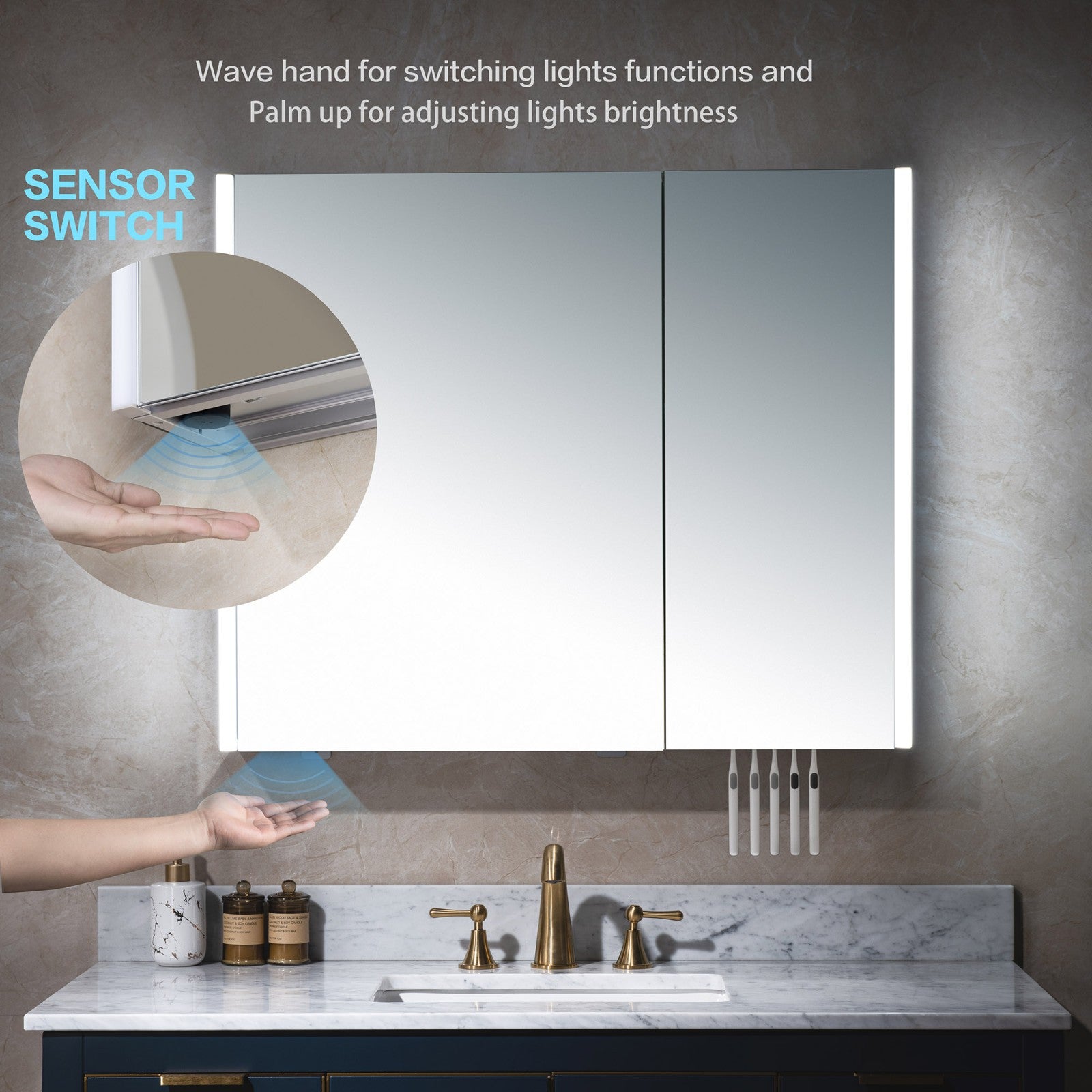 WOODBRIDGE Contemporary 36”W X 30"H Surface Mount Frameless 2 Doors Medicine Cabinet with Mirror Defogger and soft close hinges