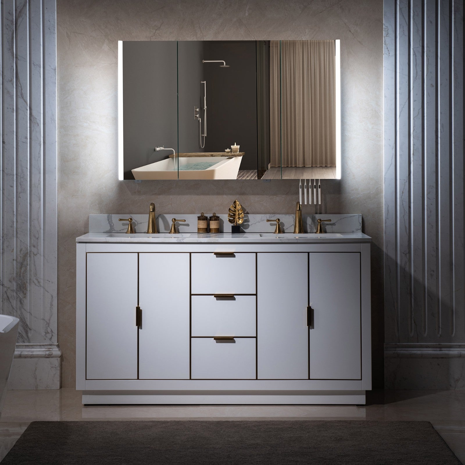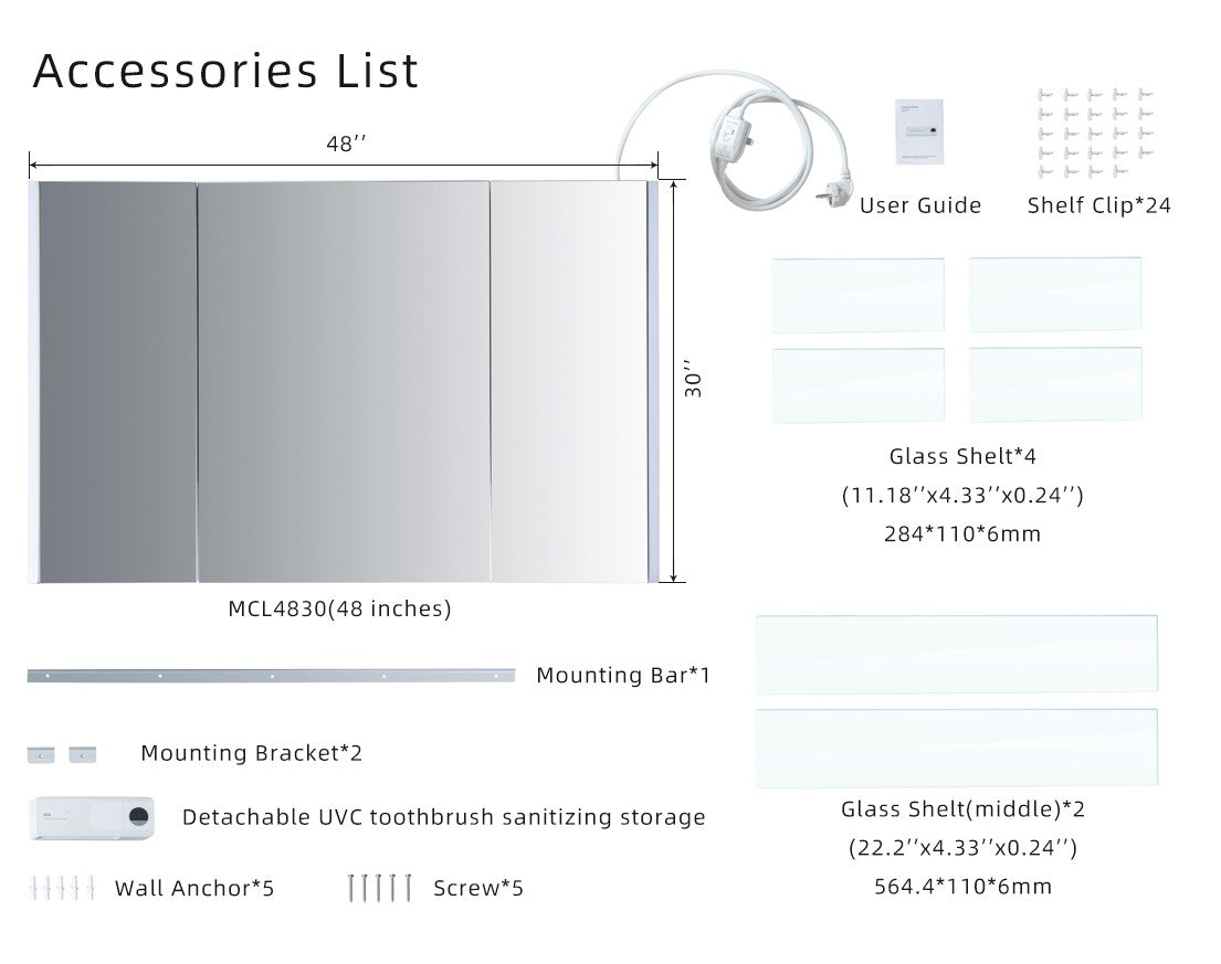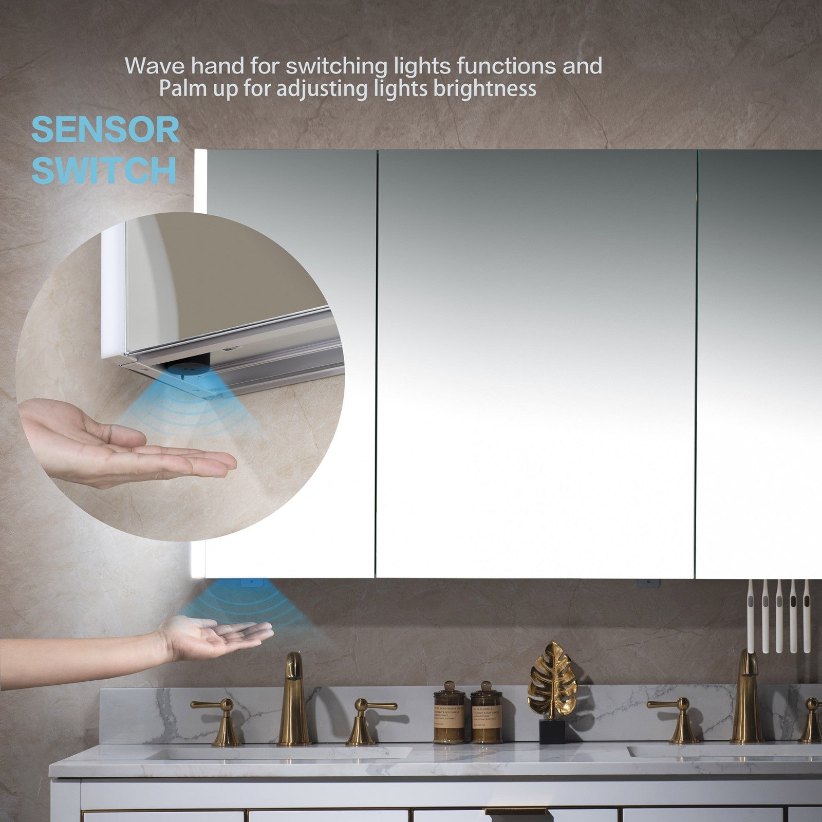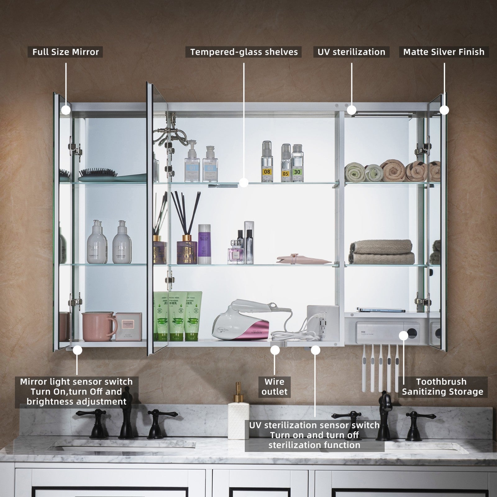 WOODBRIDGE Contemporary 48”W X 30"H Surface Mount Frameless Tri View Medicine Cabinet with Mirror Defogger and soft close Hinges