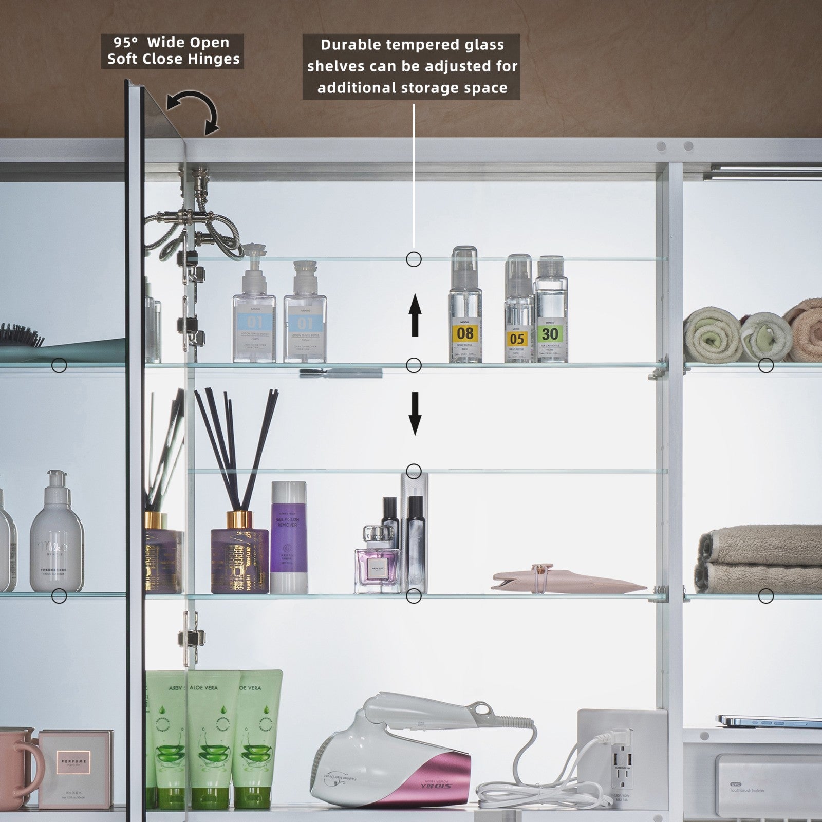 ? [SOFT CLOSING BLUM HINGES]: Blum 95 degree swing open and soft close, offering a silent shut to the door, protecting the mirror and your items.