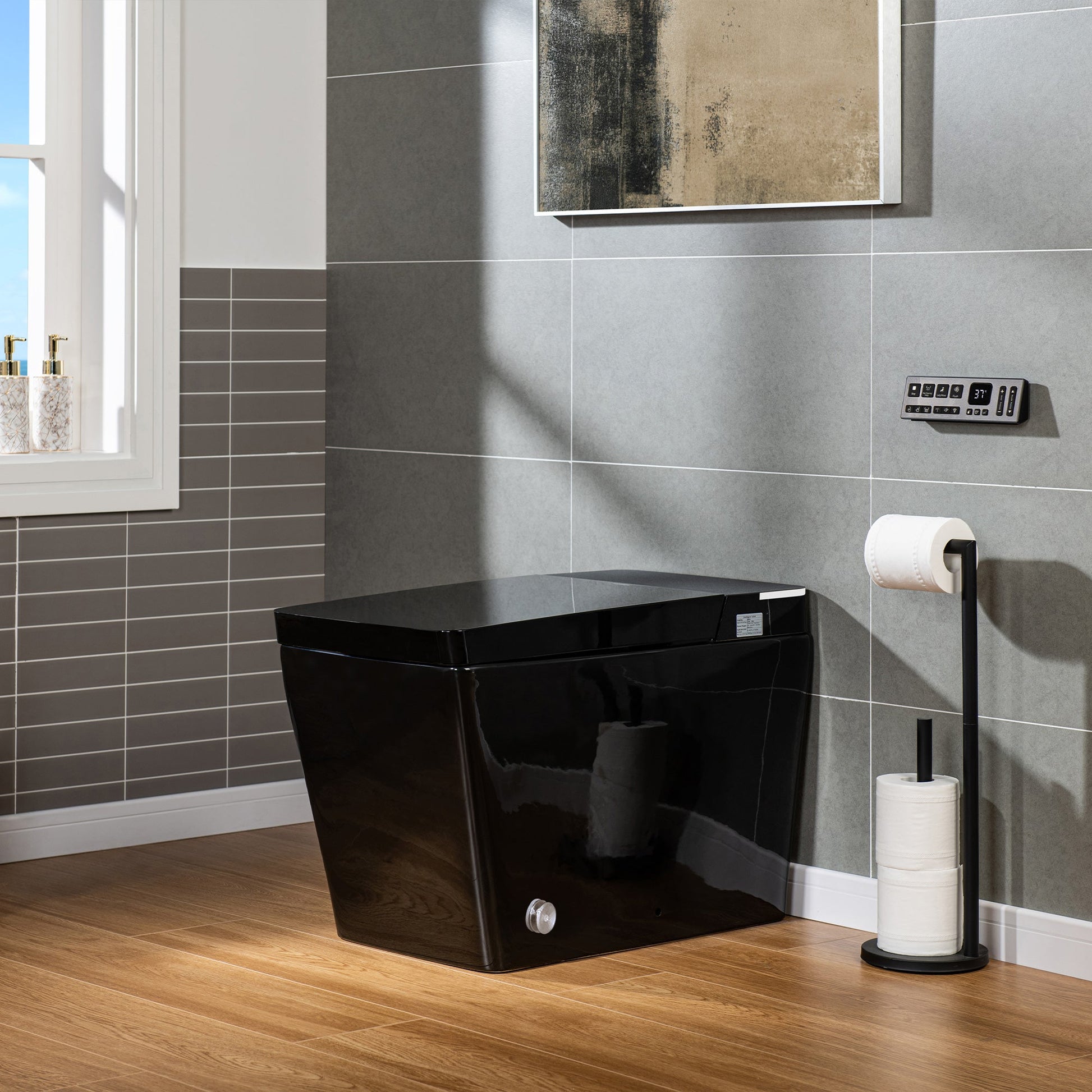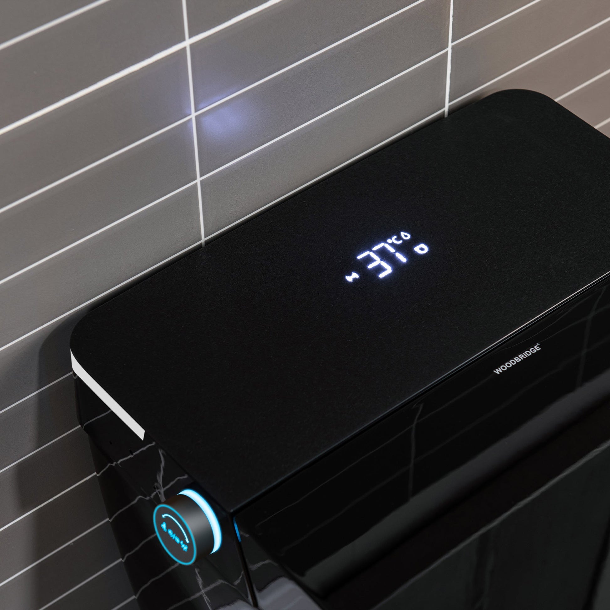 WOODBRIDGE EBT-HB02 One-Piece Square Smart Bidet Toilet with Auto Open & Close, Foot Sensor, Auto Flush, Multiple Spray Modes, Heated Seat, Warm Water and Air Dryer, Auto LED Nightlight, Glossy Black