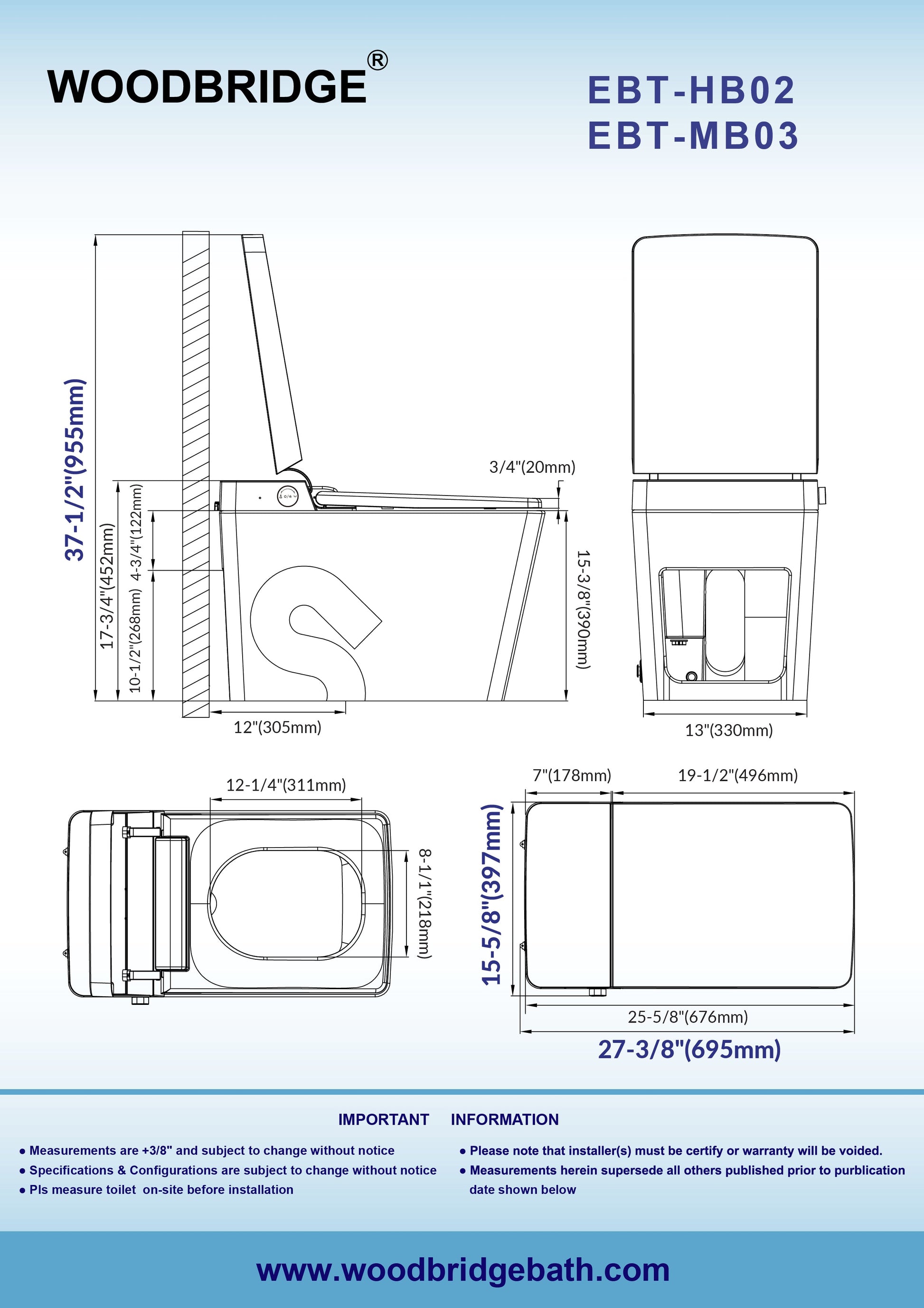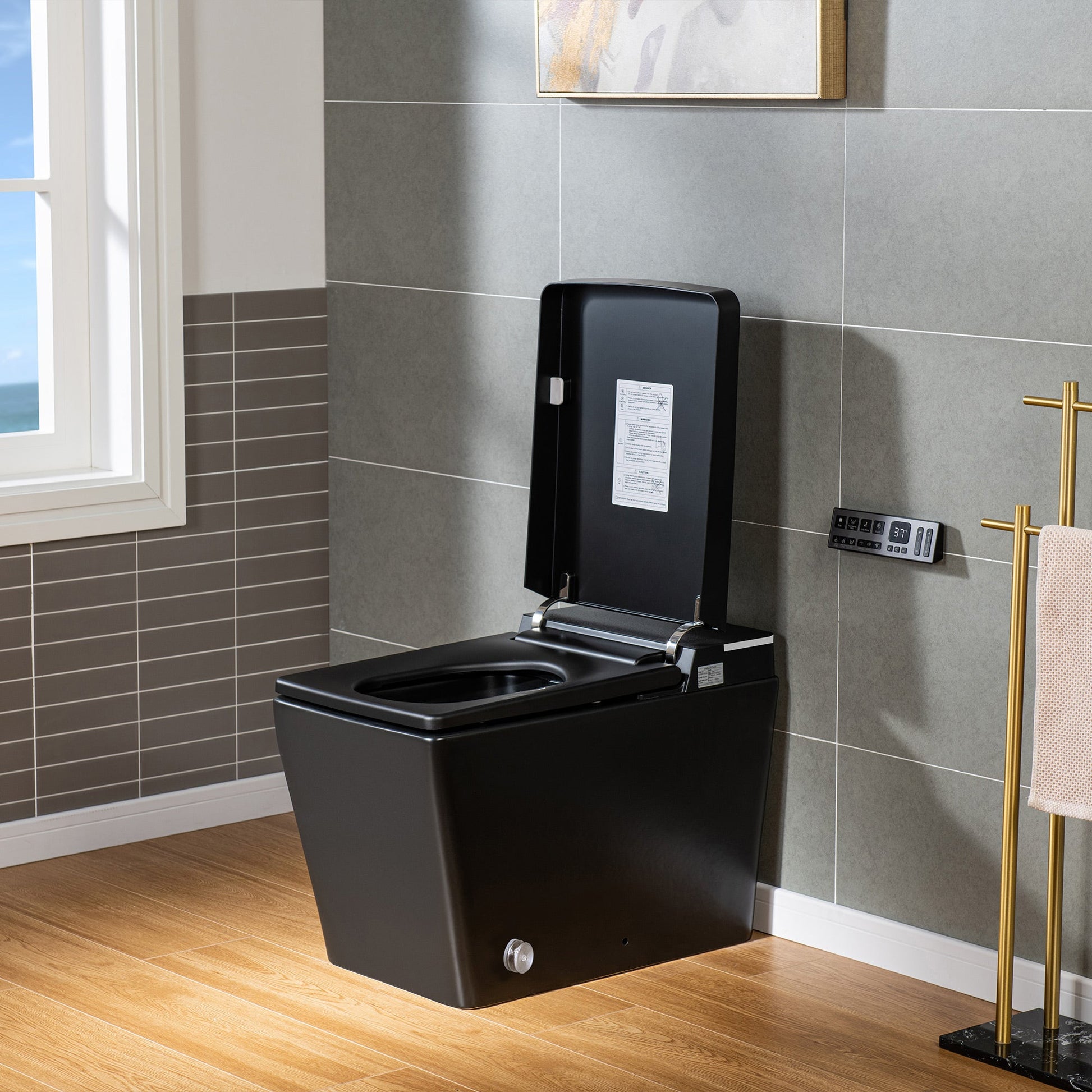 WOODBRIDGE EBT-MB03 One Piece Square Smart Bidet Toilet with Auto Open & Close, Foot Sensor, Auto Flush, Multiple Spray Modes, Heated Seat, Warm Water and Air Dryer, Auto LED Nightlight, Matte Black