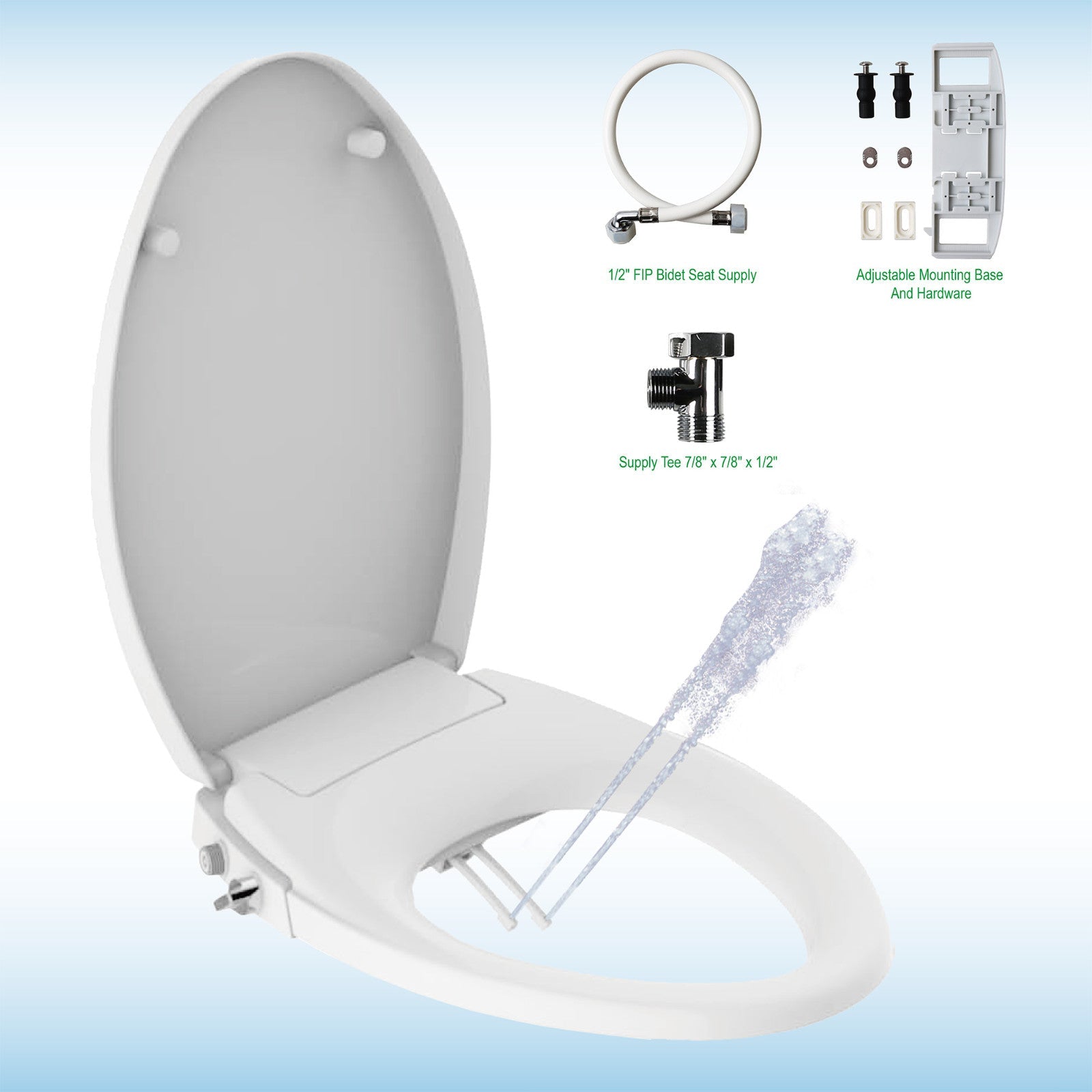 ? [All-IN -ONE PACKAGE]: Elongated bidet toilet seat with mounting and connection hardware included ( one PCS of Water Supply Pipe and one PCS of 3-Way Connector ) , Easy to install.