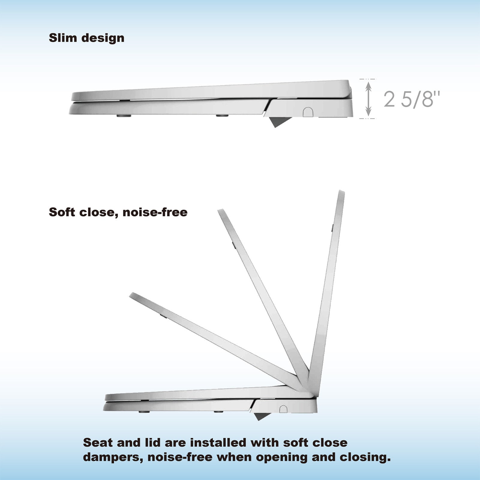 ? [SOFT CLOSE, NOISE -FREE]: Seat and lid are installed with soft close dampers, noise-free when opening and closing.