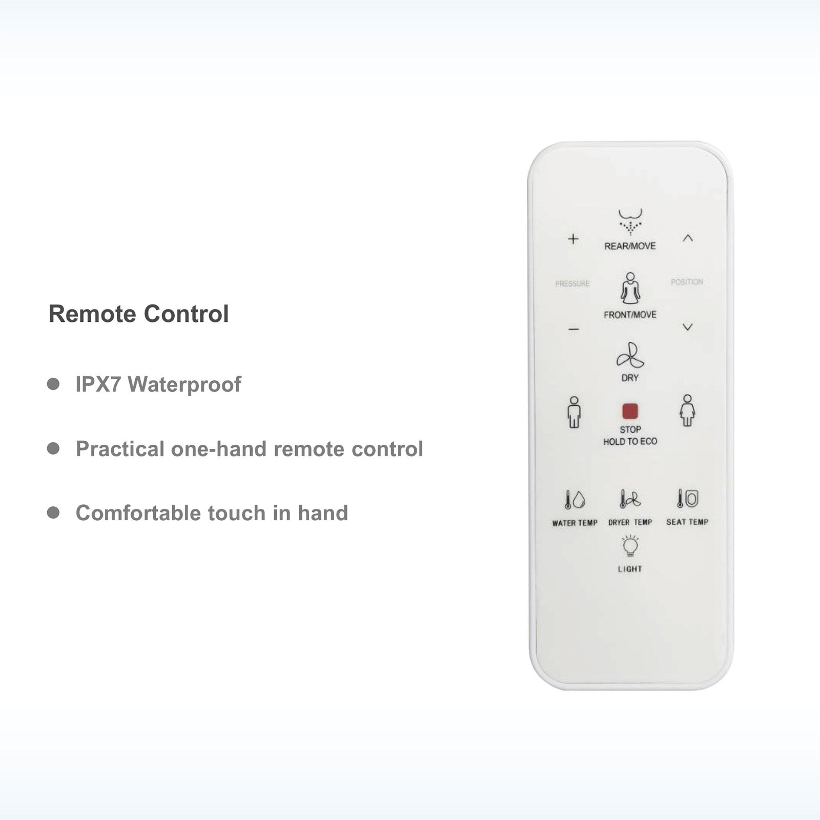 ? [COMFORT, & CONVENIENCE]: Water Heater(6 adjustable temperature); Heated Seat (5 adjustable temperature); Warm Air Dryer(6 different level); 2 User Memory to save preferred settings; Unlimited Warm Water, with oscillating and gentle massage pulse functions; Safety On/Off Sensor, Automatic Nozzle Cleaning; LED night light.