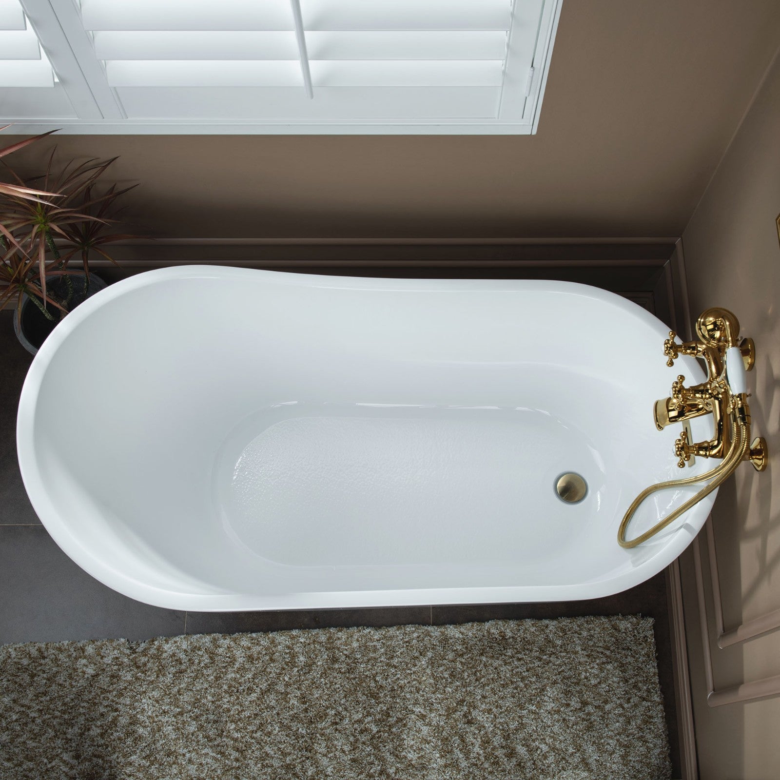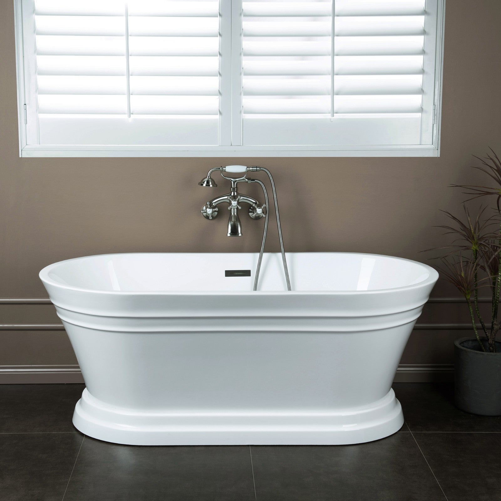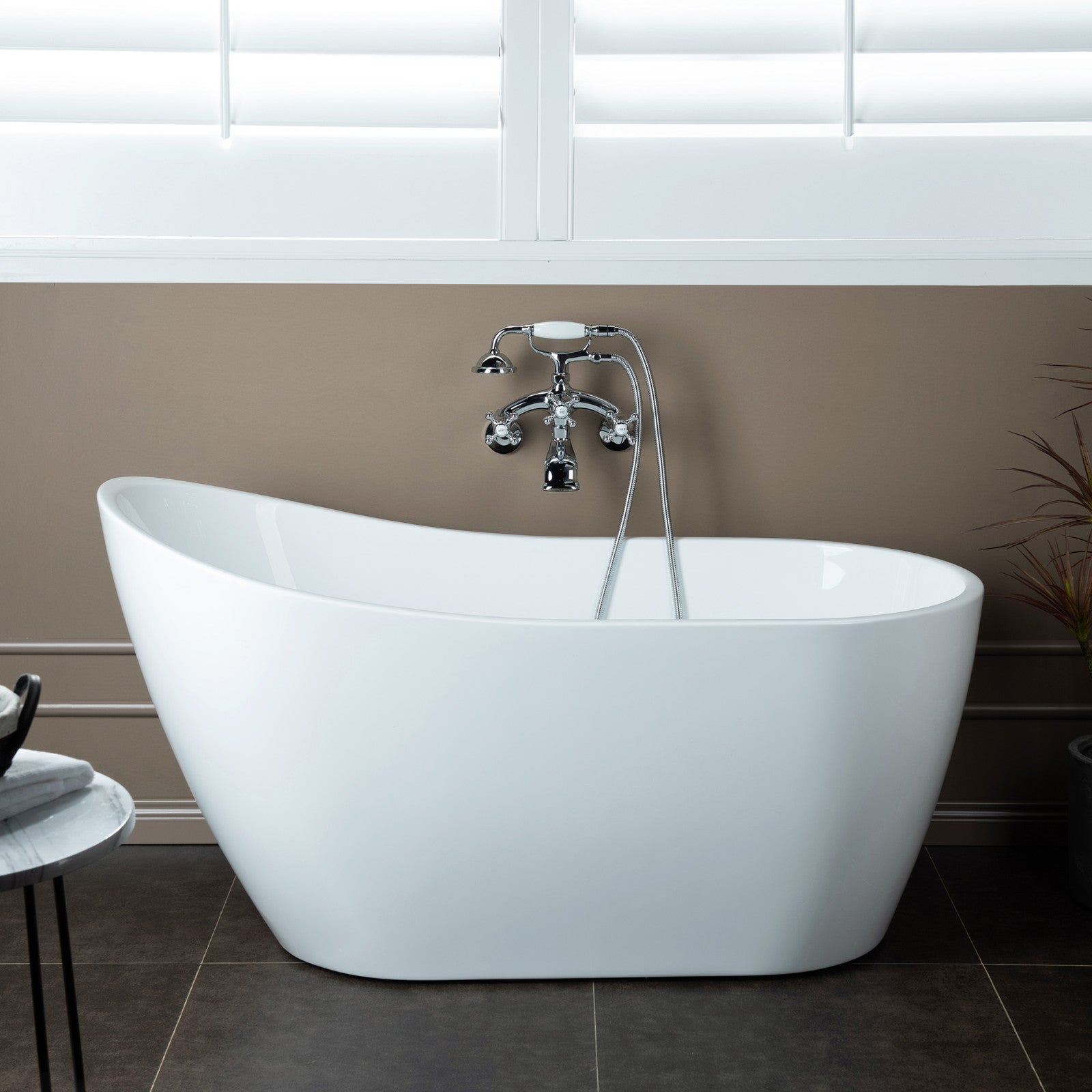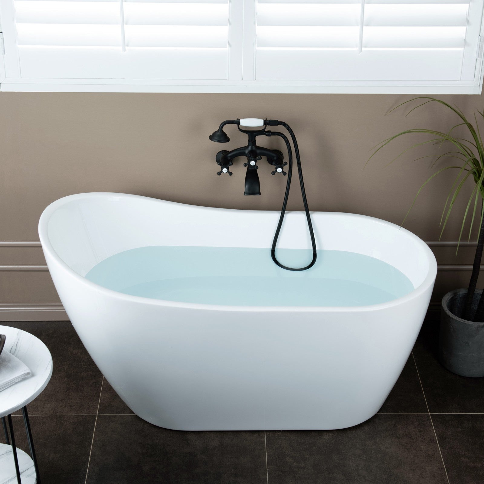 ? [ DESIGN INSPIRATION ]: Victorian style faucet body with telephone style hand shower with porcelain wand and classical 1/4 turn metal cross handles, package come with wall mount elbow that fits 3-3/8" to 8" center spread and riser kit for deck mount installation.