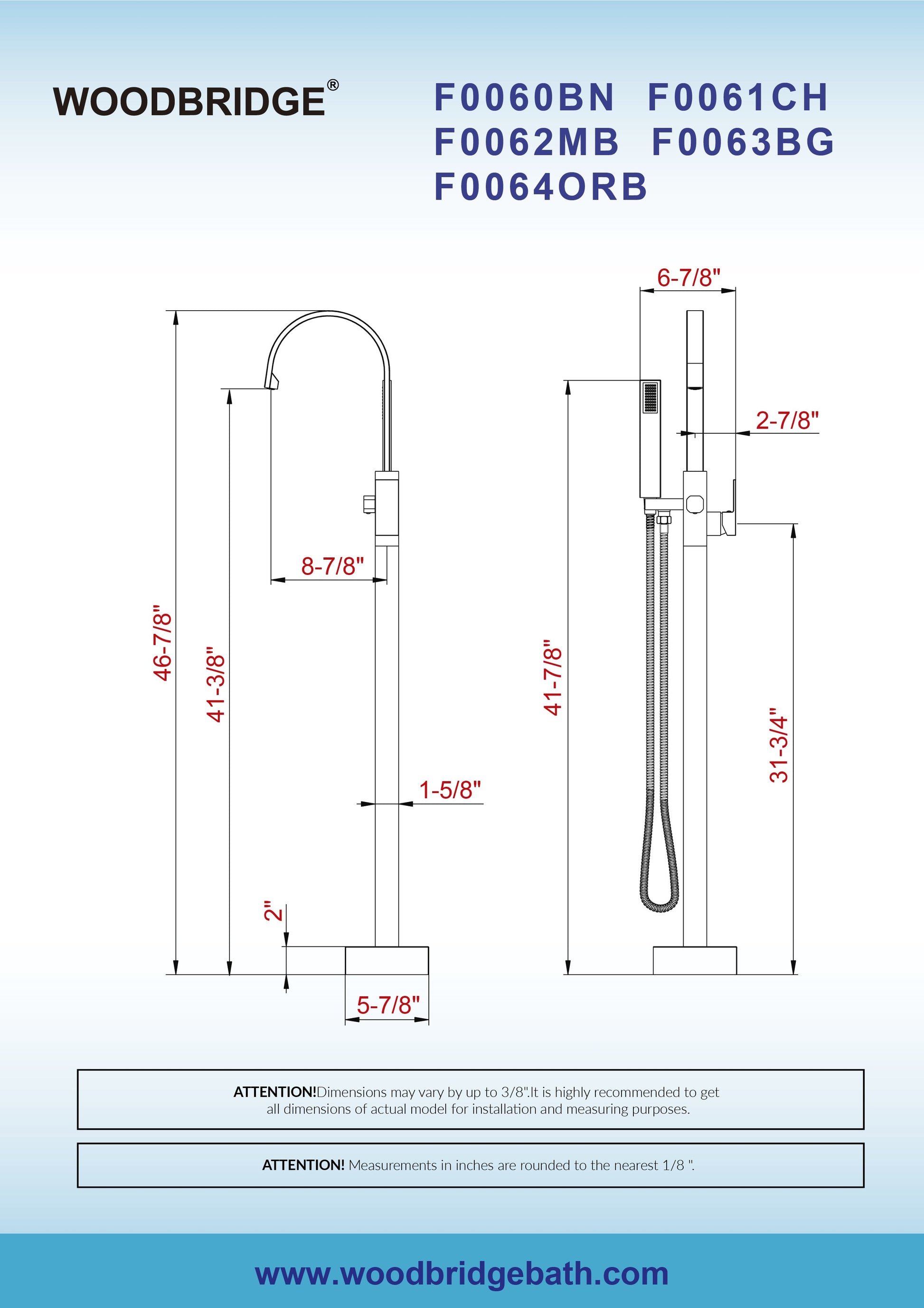 WOODBRIDGE F0060BN Contemporary Single Handle Floor Mount Freestanding Tub Filler Faucet with Hand Shower