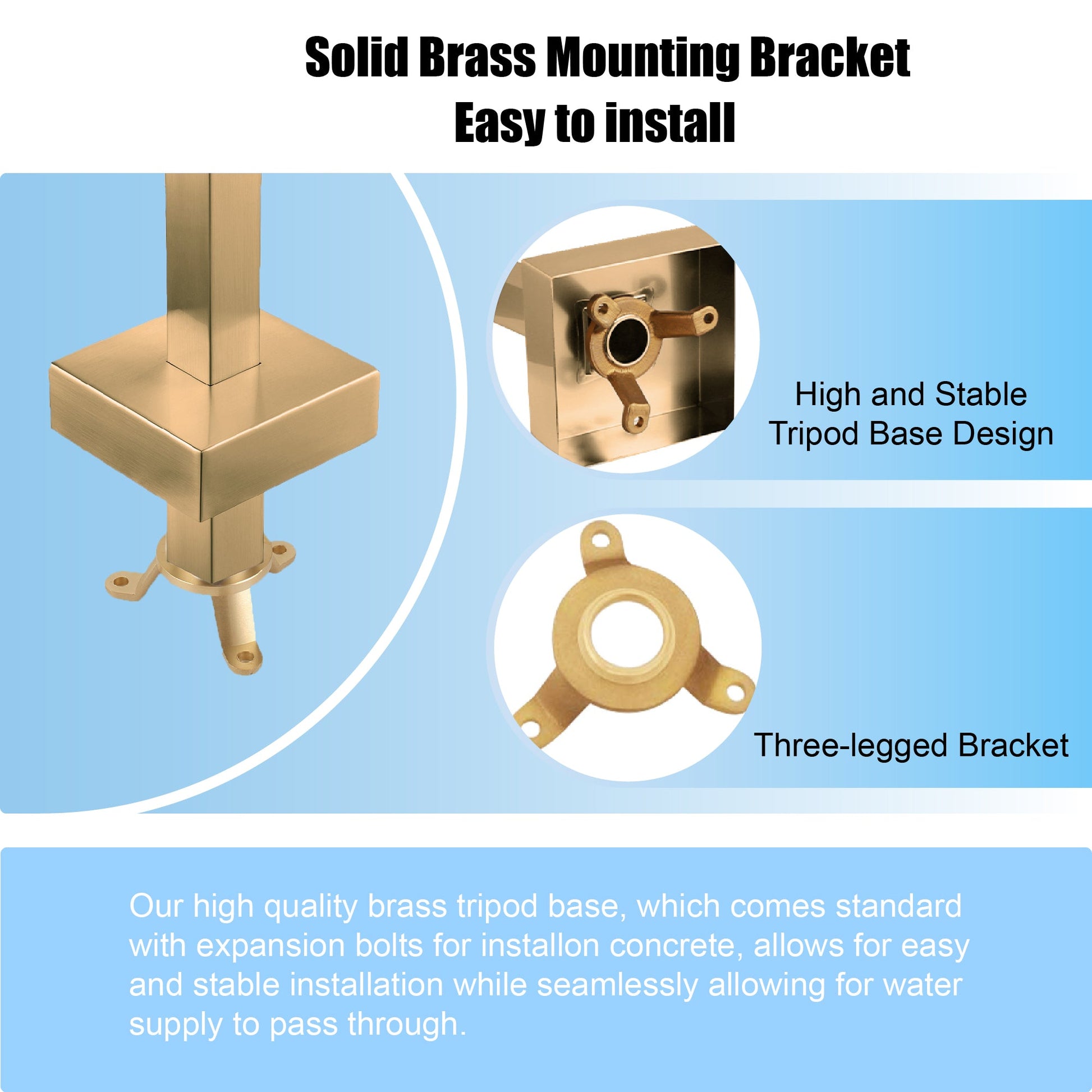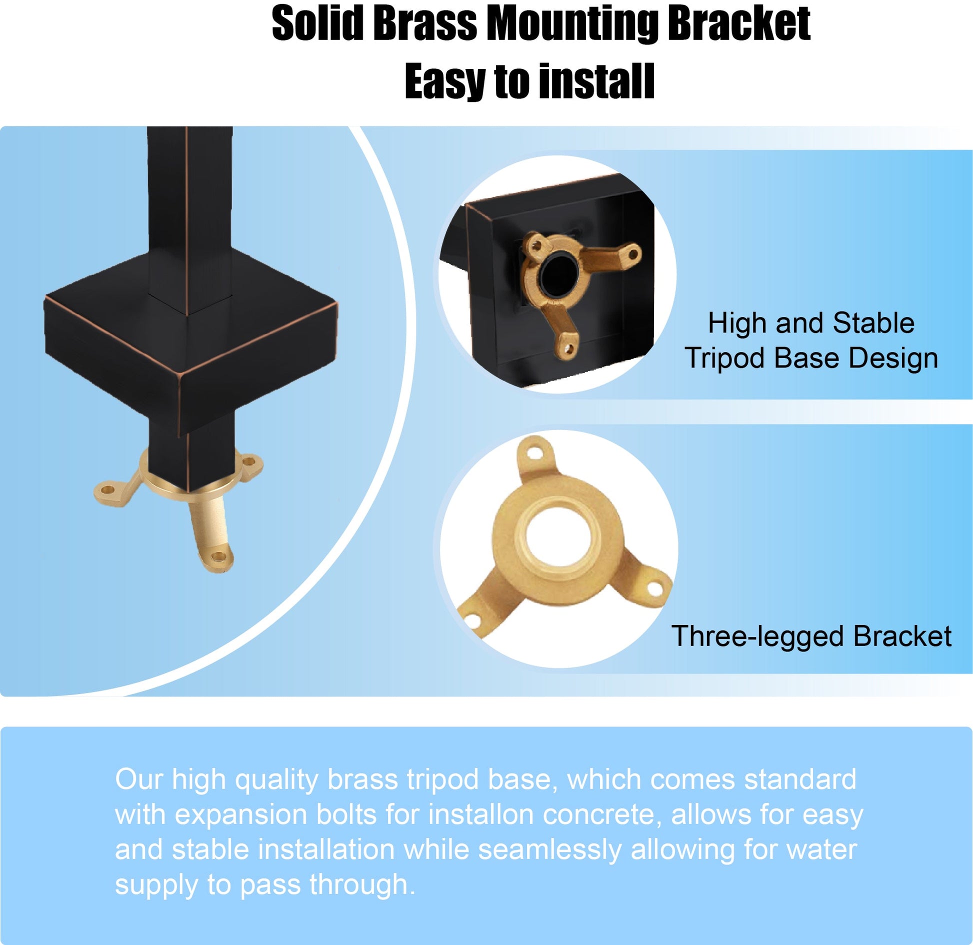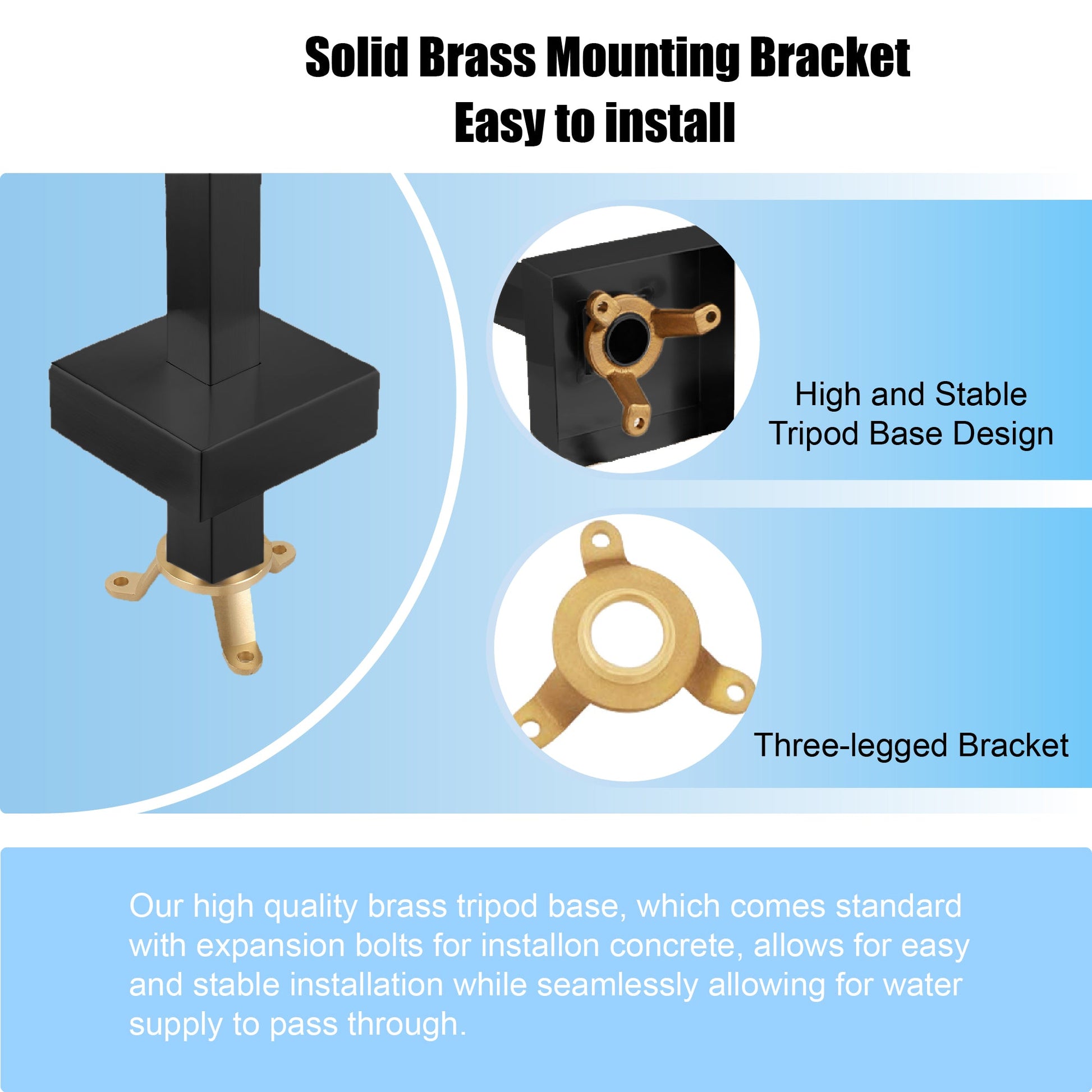 ? [EASY INSTALLATION]: Our high quality brass tripod mounting bracket, which comes standard with expansion bolts for install on concrete, allows for easy and stable installation while seamlessly allowing for water supply to pass through.