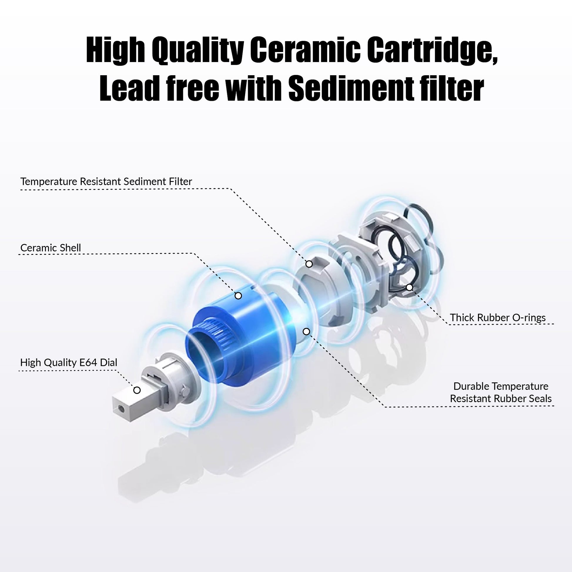 ? [PREMIUM QUALITY CONSTRUCTION]: Faucet body is crafted from solid brass and hand shower is made of 304 Grade (18/10) Stainless Steel to resist from tarnish and corrosion from daily use, drip free ceramic disc cartridge for extended product life.