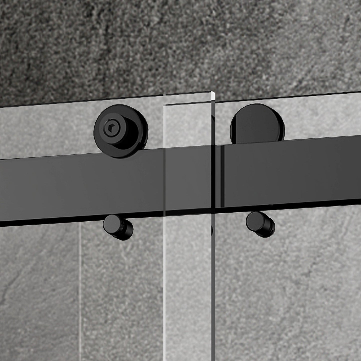 ? [HIGH QUALITY MATERIAL]: 3/8"(10mm) thick tempered safety glass with ANSI Z97.1 certified, for easy cleaning and to resist water spots; Large solid stainless steel rollers creating a quiet, smooth and effortless sliding