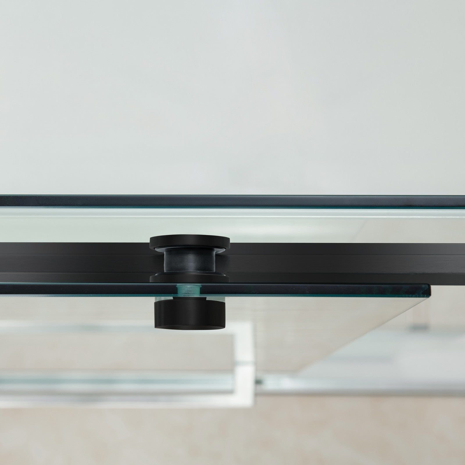 ? [HIGH QUALITY MATERIAL]: 5/16"(8mm) thick tempered safety glass with ANSI Z97.1 certified, for easy cleaning and to resist water spots; Large solid stainless steel rollers creating a quiet, smooth and effortless sliding