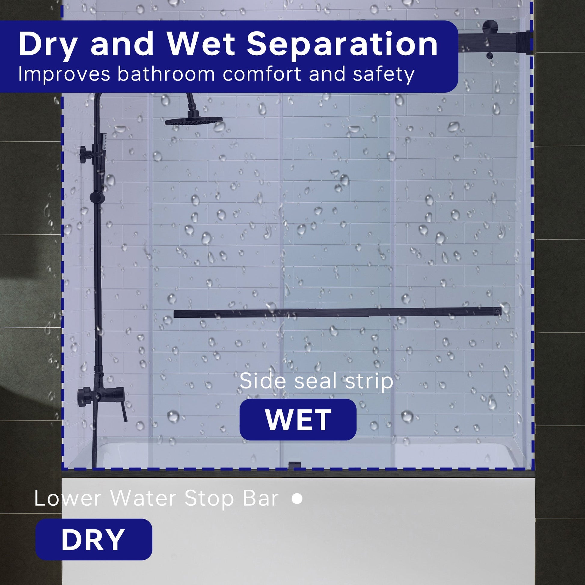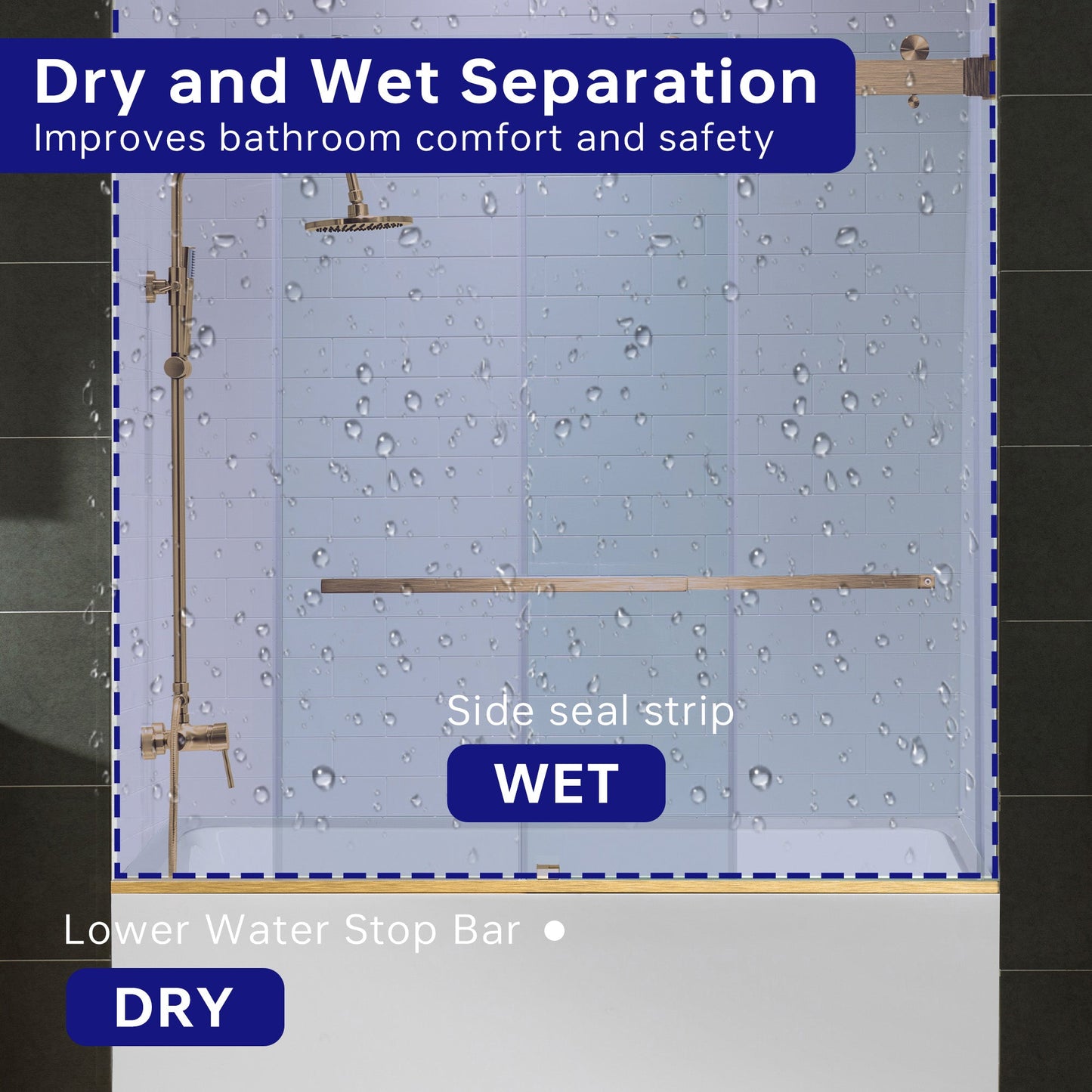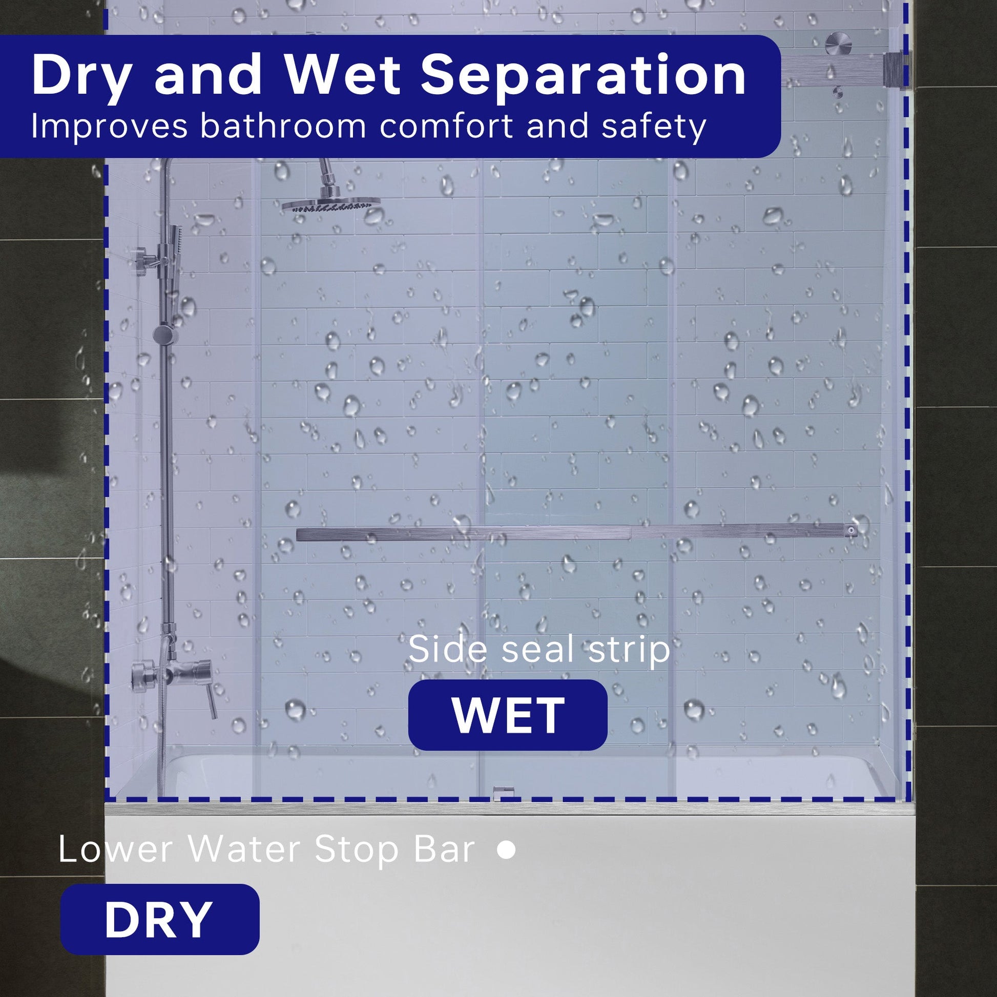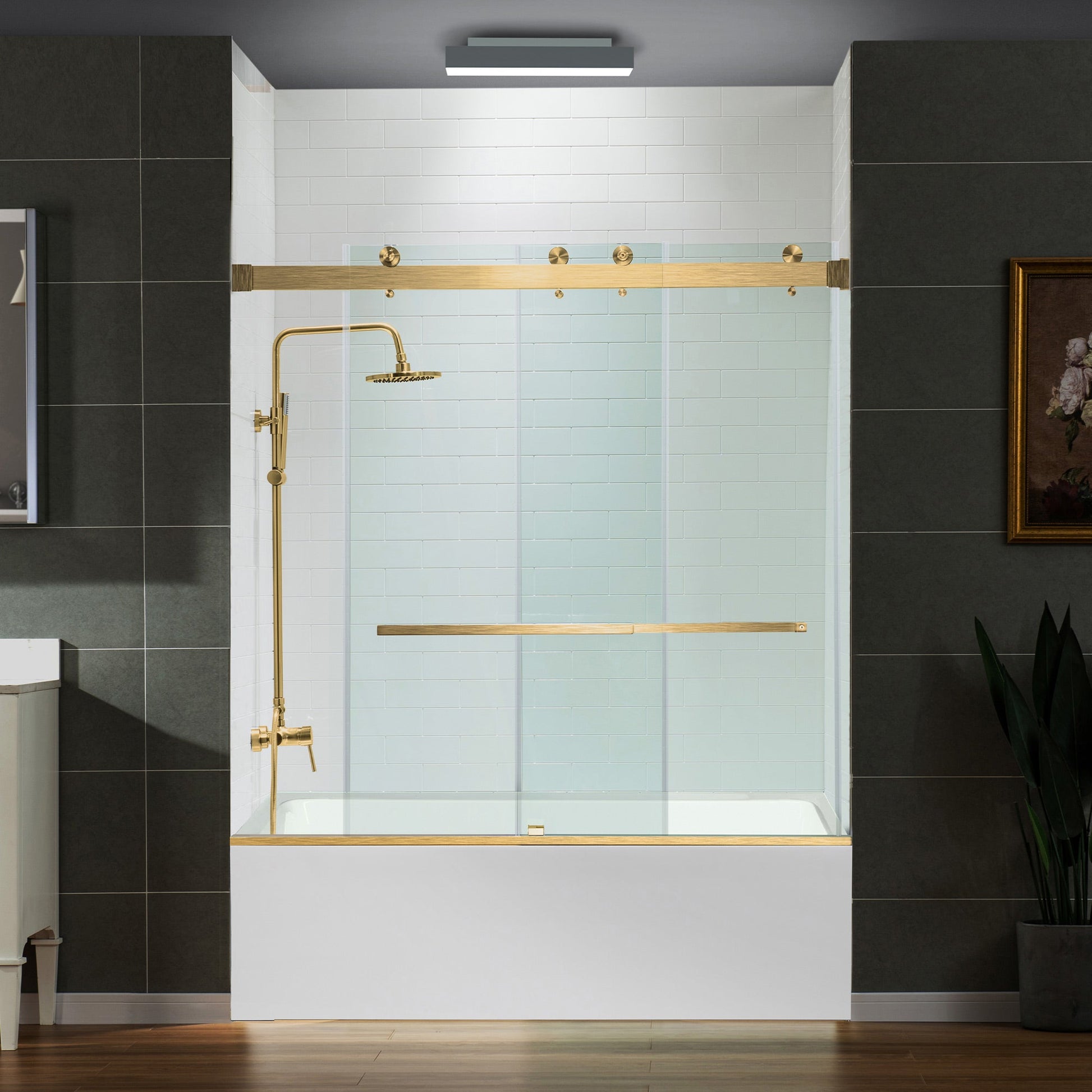 WOODBRIDGE Frameless Bathtub Shower Doors 56-60" Width x 66" Height with 5/16"(8mm) Clear Tempered Glass, Double Sliding with Side Seal Strips