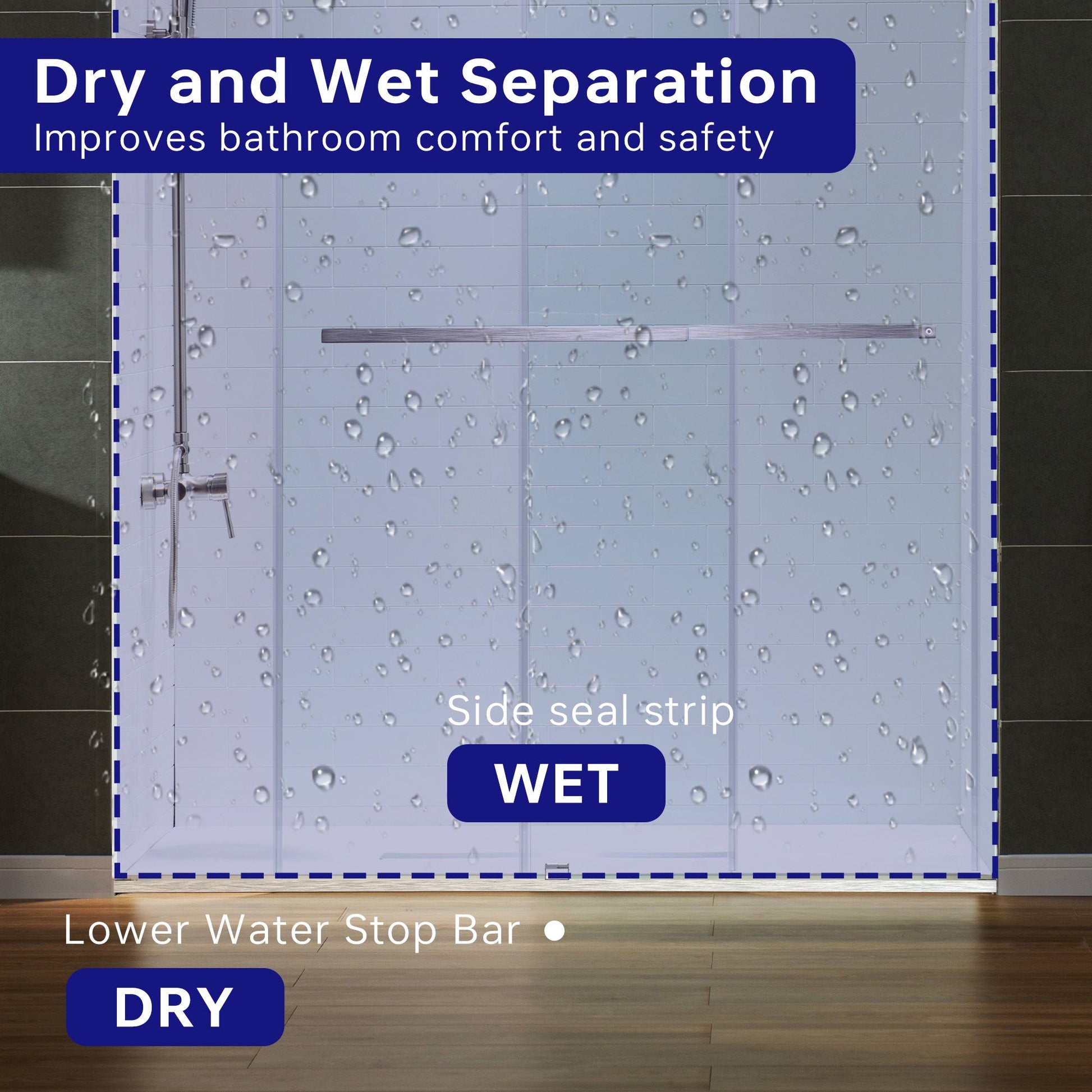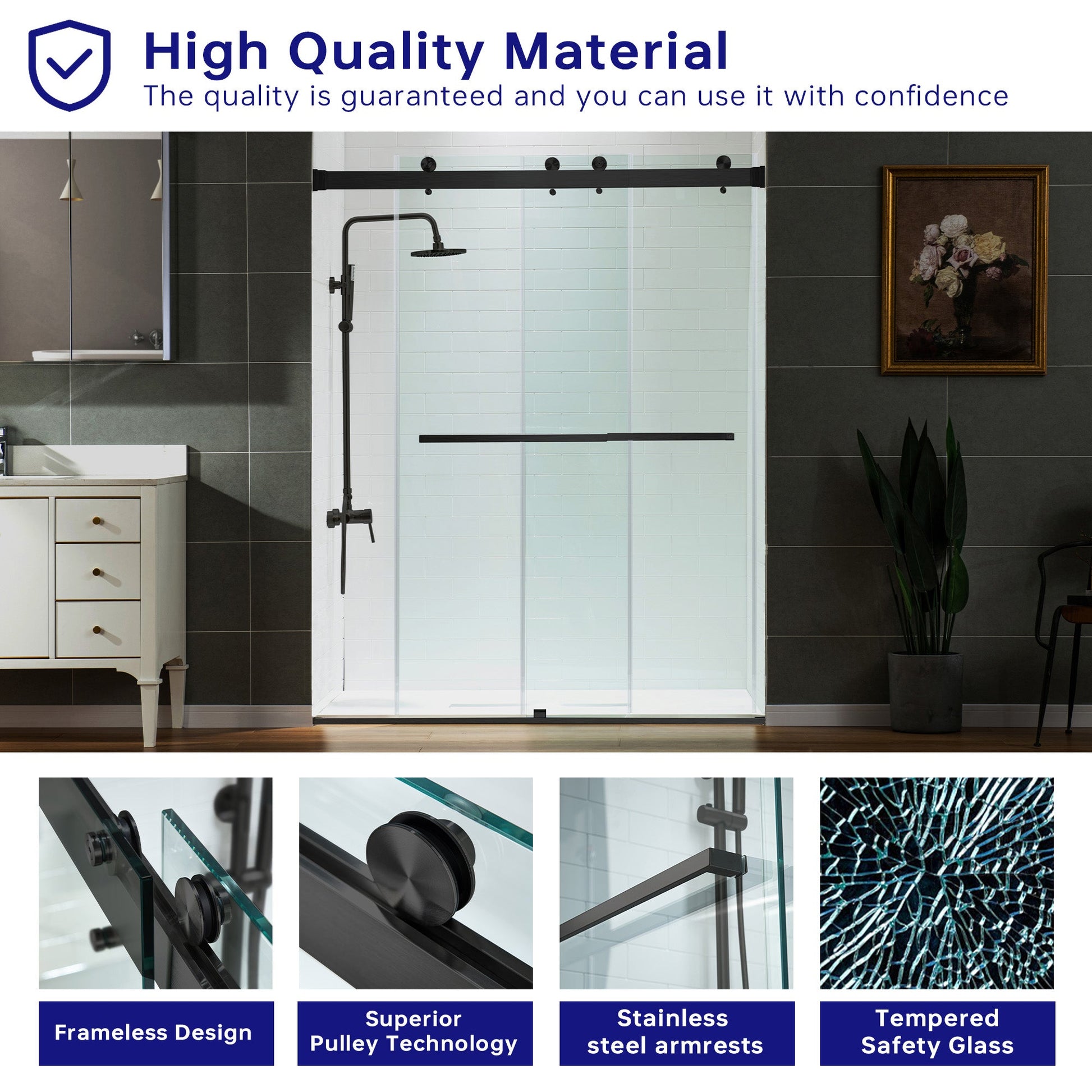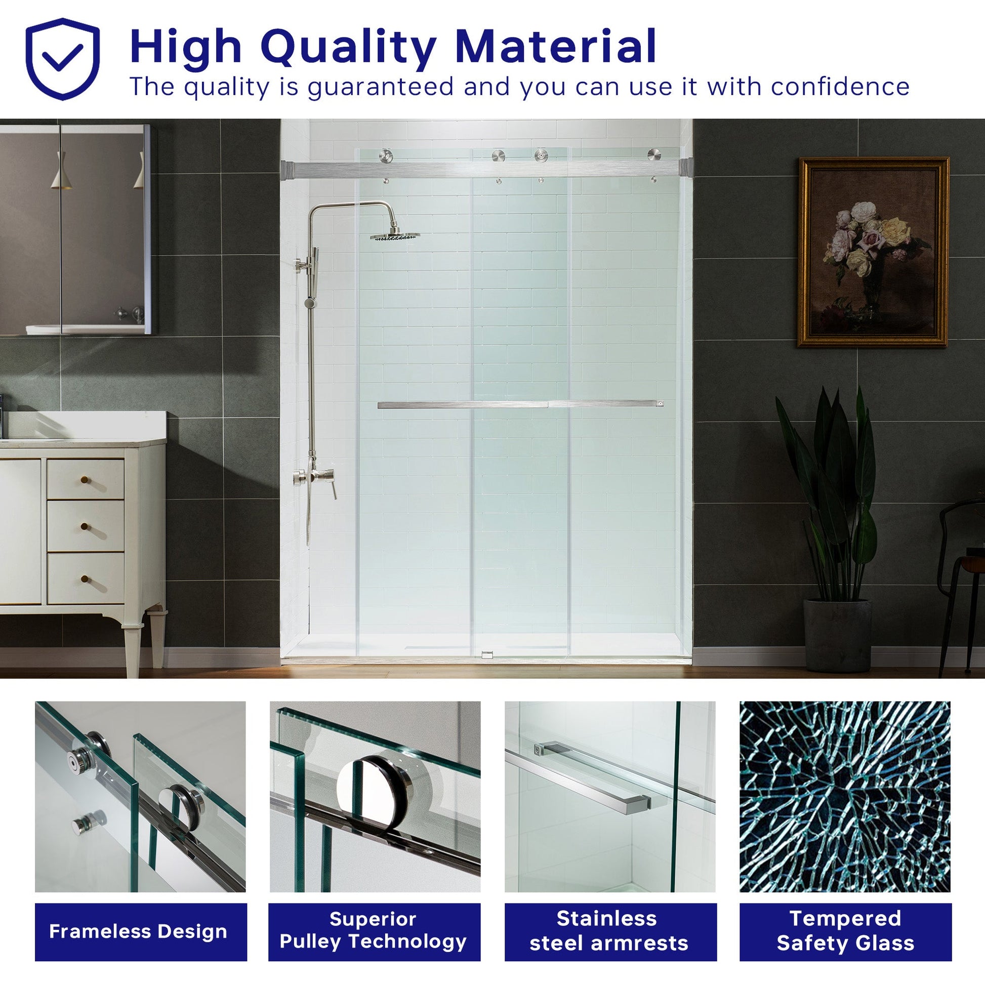 WOODBRIDGE Frameless Shower Doors 56-60" Width x 76" Height with 5/16"(8mm) Clear Tempered Glass, Double Sliding with Side Seal Strips