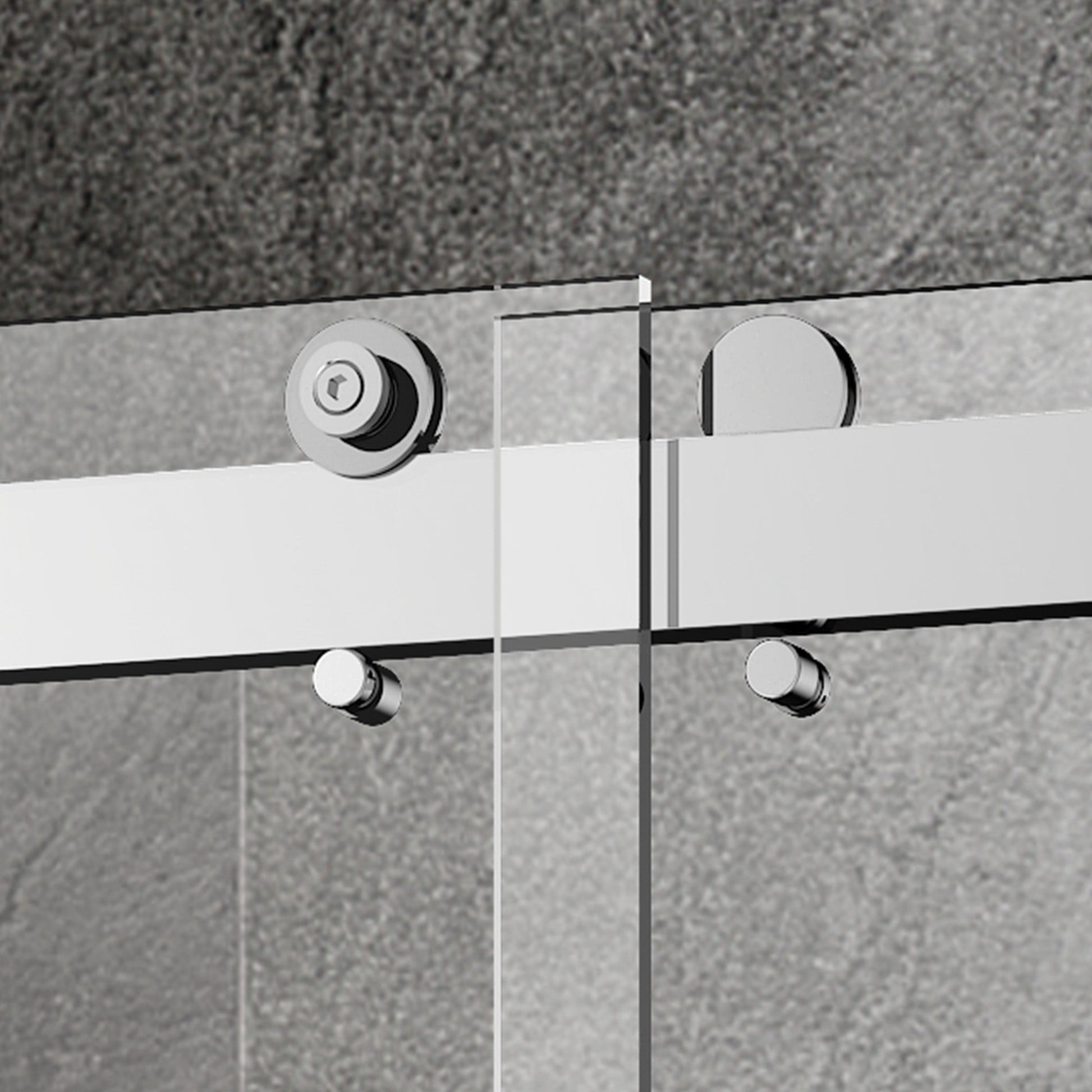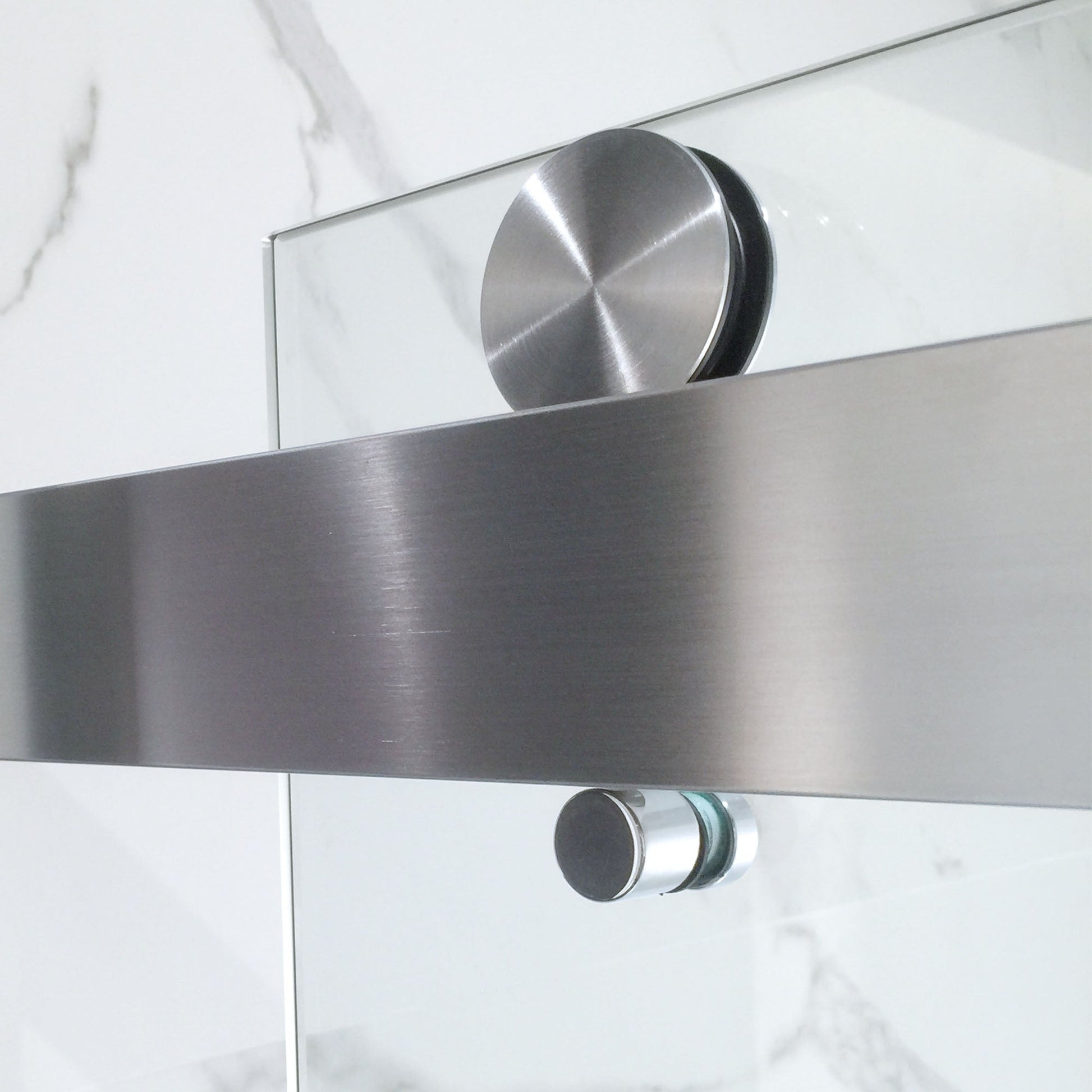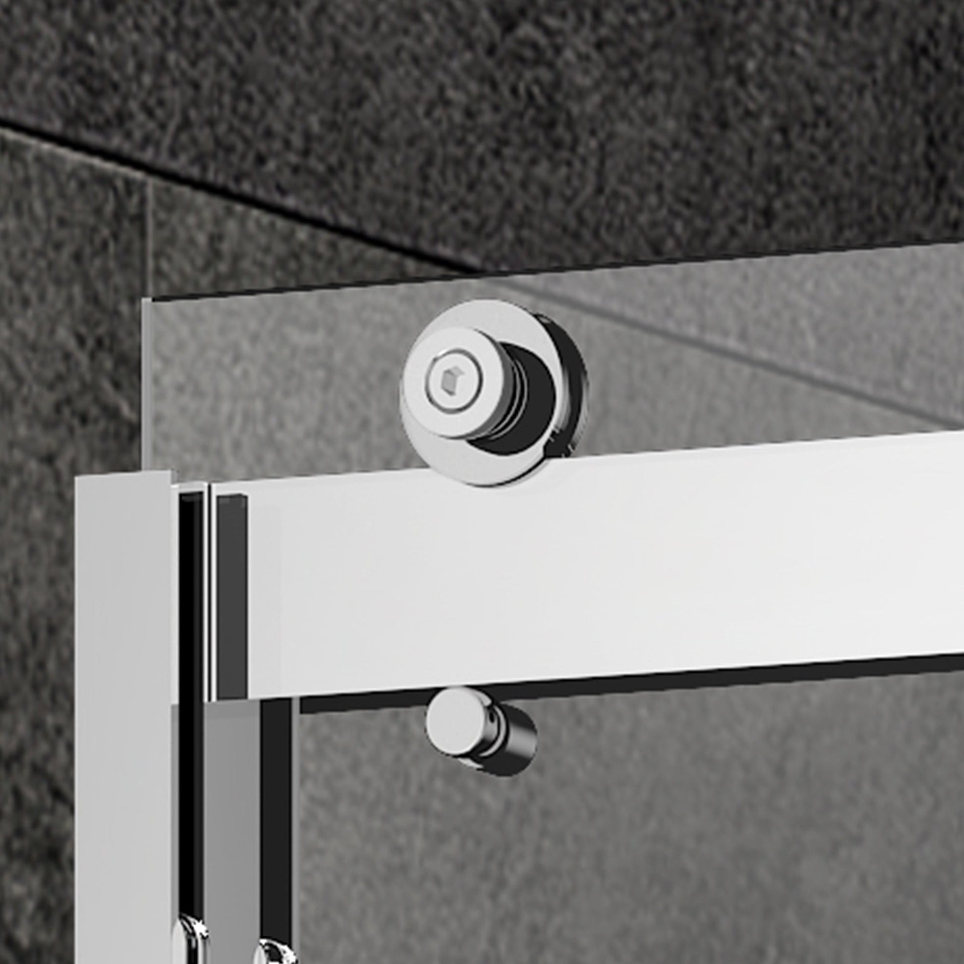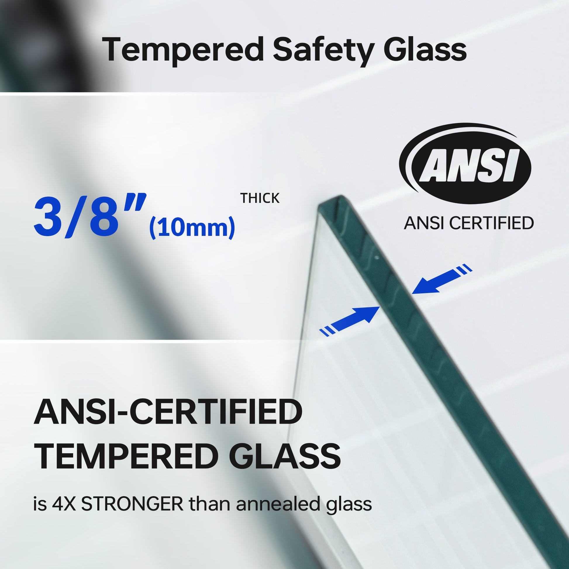 ? [HIGH QUALITY MATERIAL]: 3/8"(10mm) thick tempered safety glass with ANSI Z97.1 certified, for easy cleaning and to resist water spots; Large solid stainless steel rollers creating a quiet, smooth and effortless sliding