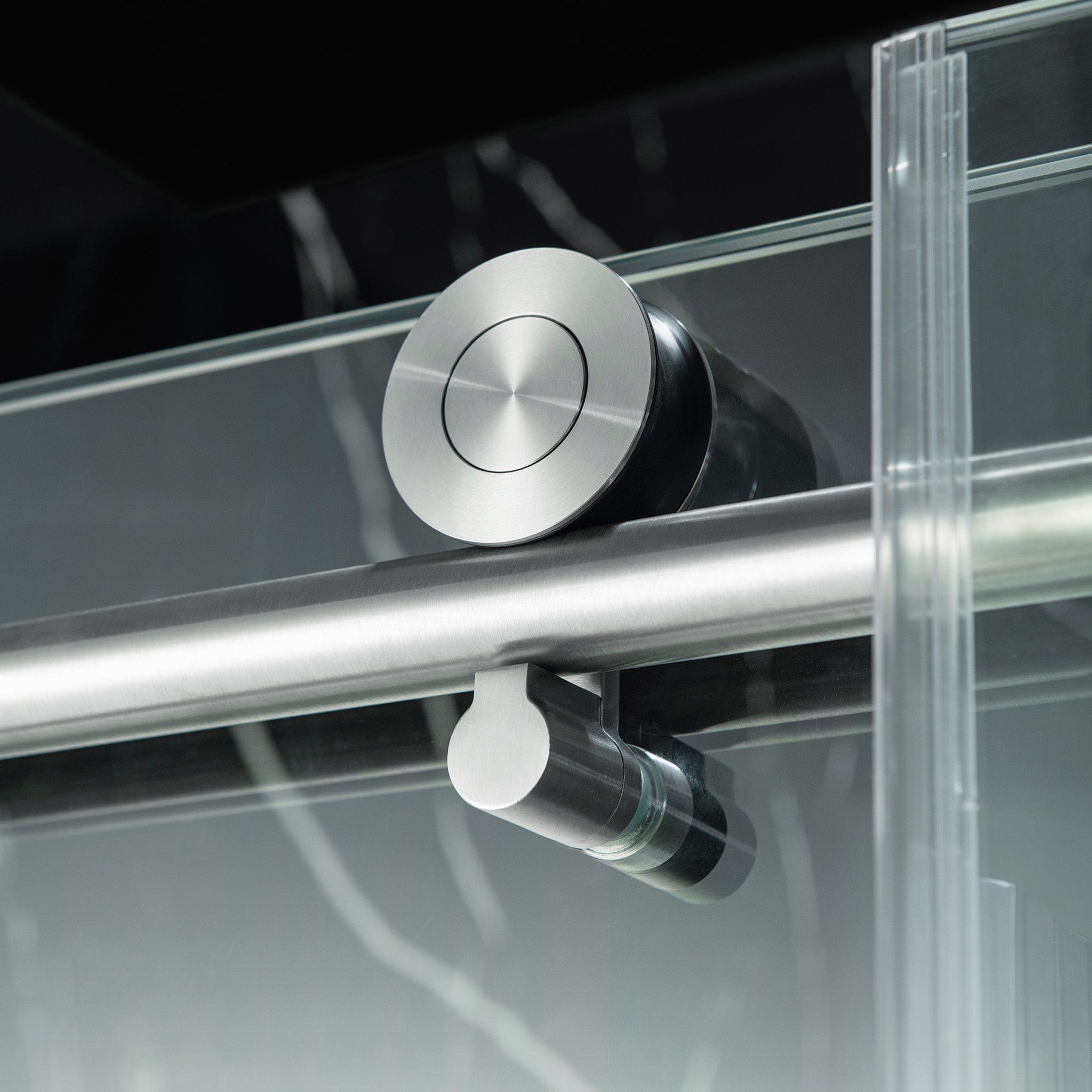 [HIGH QUALITY MATERIAL]:3/8"(10mm) thick tempered safety glass with ANSI Z97.1 certified, resist water spots and easy to clean; Large solid stainless steel rollers creating a quiet, smooth and effortless sliding.