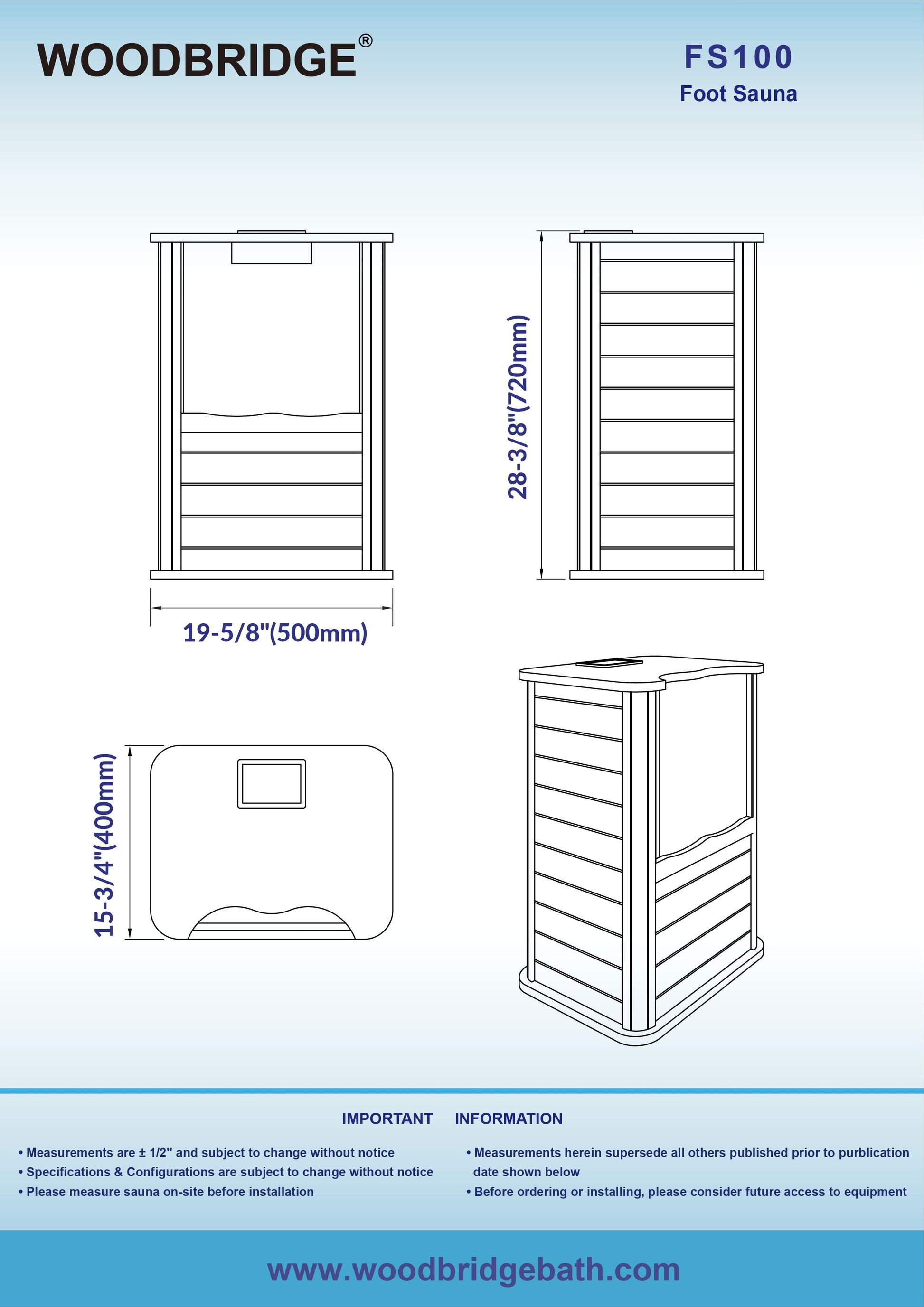 WOODBRIDGE FS100 Portable FAR Infra-Red Heating Foot Spa Sauna Bucket with Removable Leg Sleeve,No Water Pouring, 77–149°F Temp Range