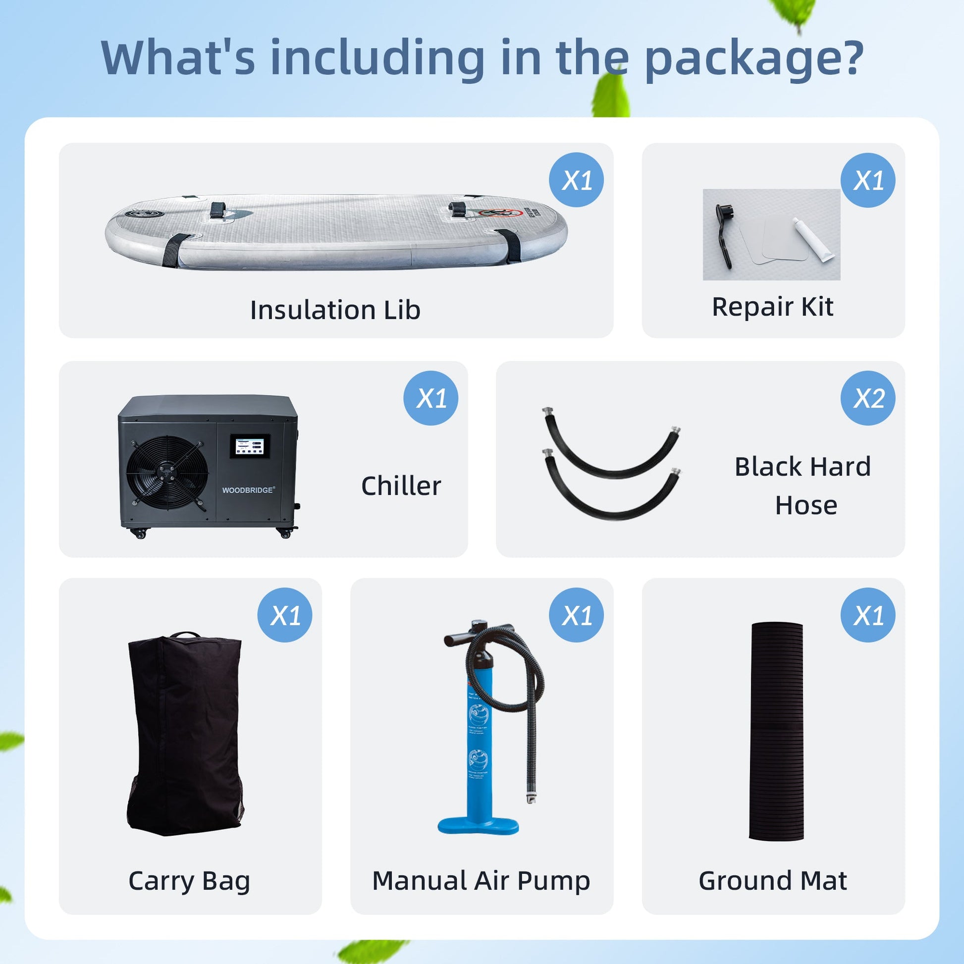 WOODBRIDGE Inflatable Cold Plunge Tub with 1.3 HP High-Performance Cooling and Heating Chiller in Gray,Filter circulation system, PVC Insulated Lid, Hand Pump and Repair Kit Included, Anti-Slid Bottom