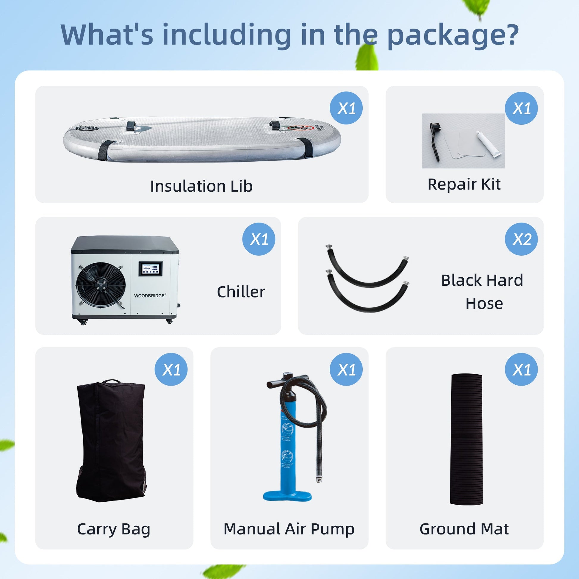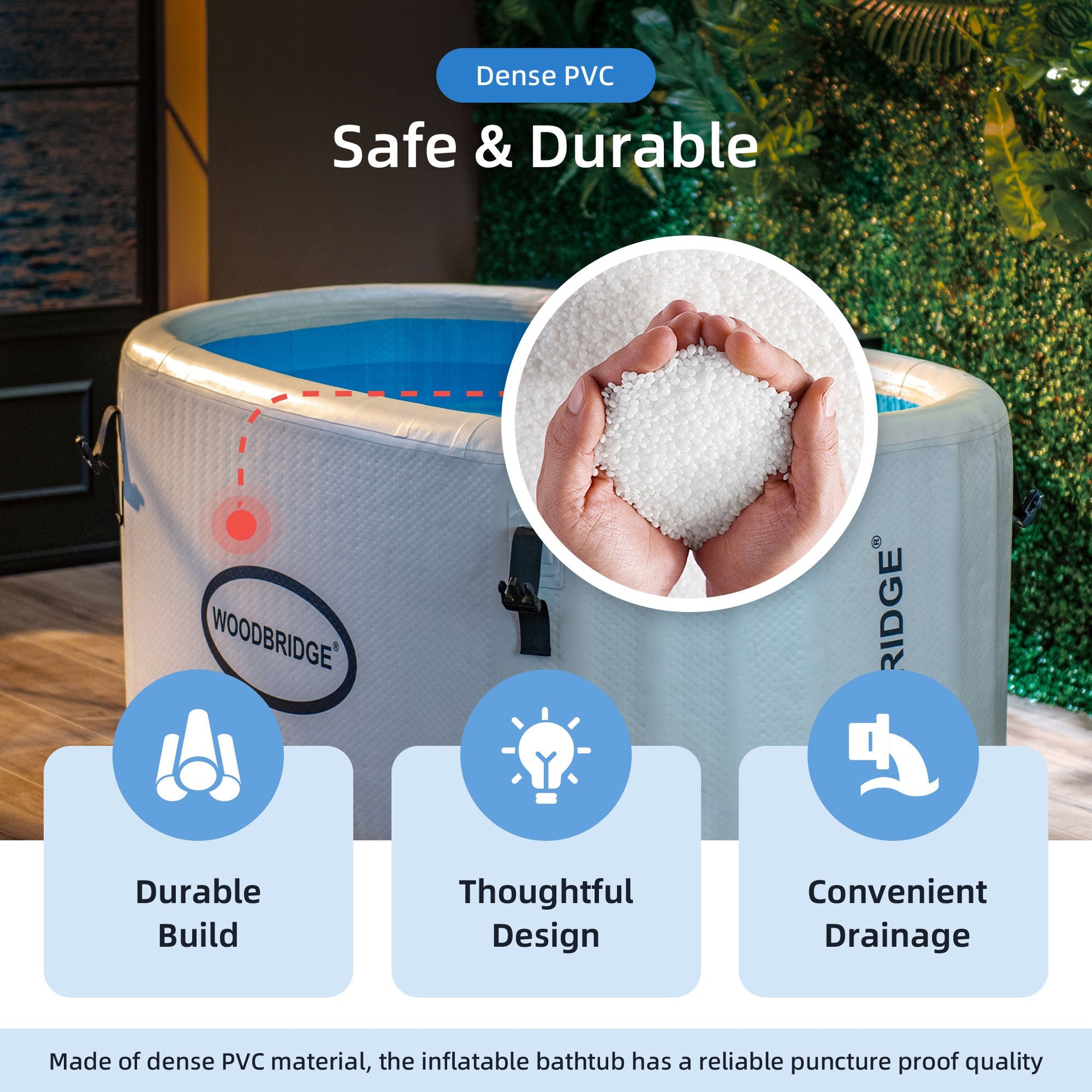 WOODBRIDGE Inflatable Cold Plunge Tub with 1.3 HP High-Performance Cooling and Heating Chiller in White,Filter circulation system,PVC Insulated Lid, Hand Pump and Repair Kit Included, Anti-Slid Bottom
