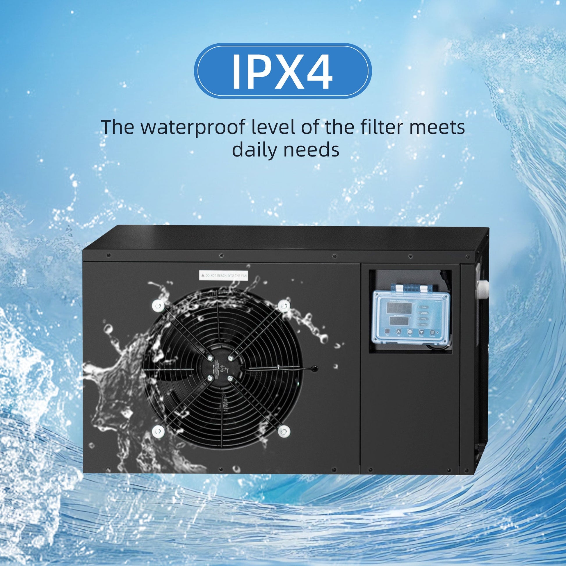 [INTEGRATED CHILLER SYSTEM]: Ultra-Efficient, Integrated Chiller with cooling and heating in one, keeps water temperatures between 40 – 104 ° F and chill down 7 - 10 ° F water temperature per hour.