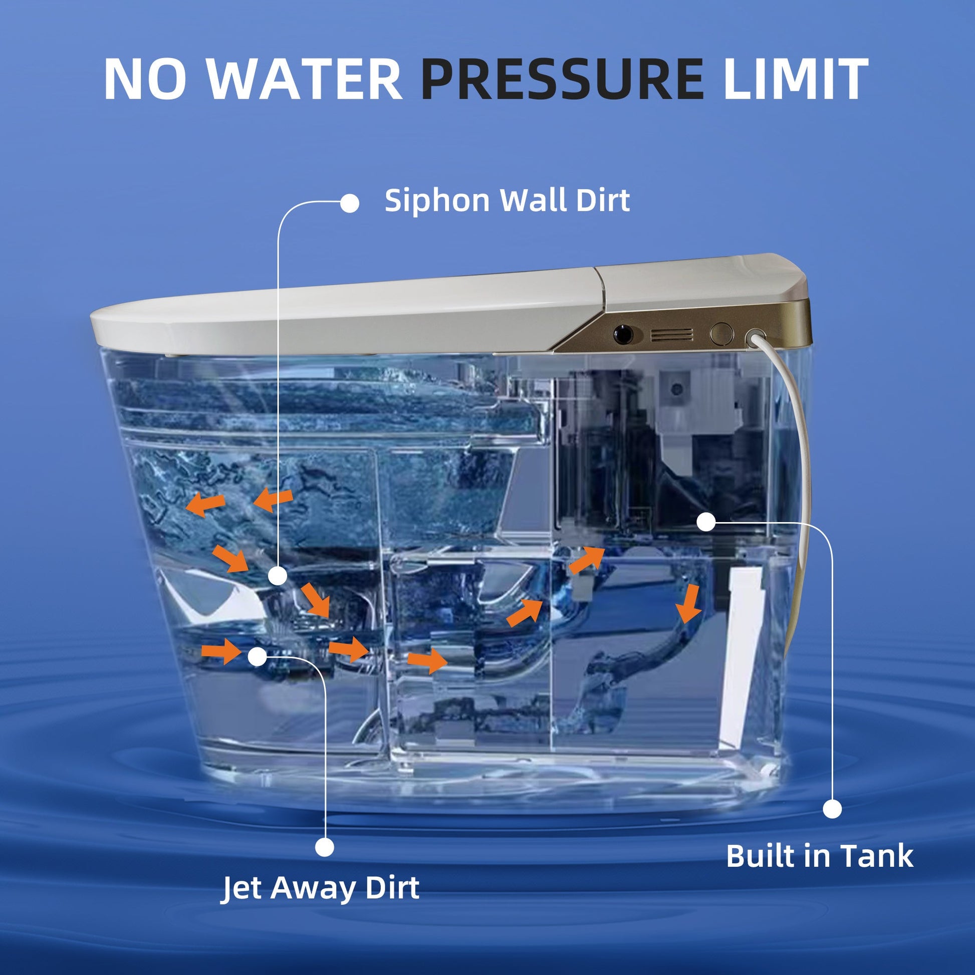 ? [LOW WATER PRESSURE AND QUIET]: With improved performance under low water pressure, the upgraded flushing system operates more quietly, ensuring it won't disrupt the peace, even at night.
