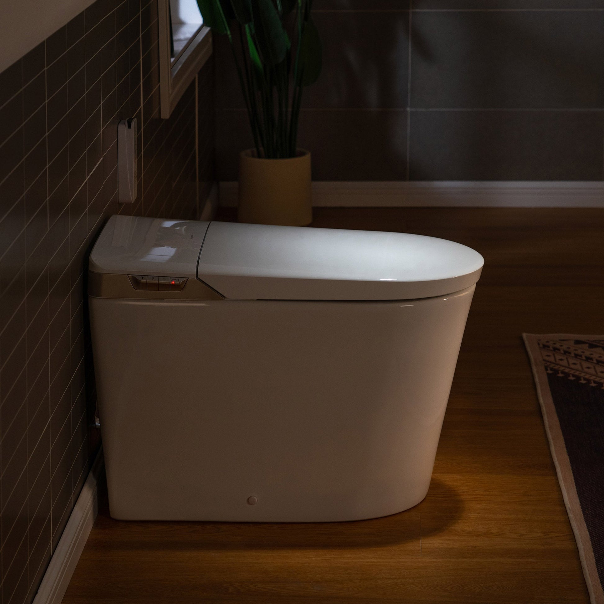 [ENHANCED COMFORT]: Equipped with a heated seat, deodorization, nightlight, and warm air dryer to deliver a luxurious and convenient bathroom experience.