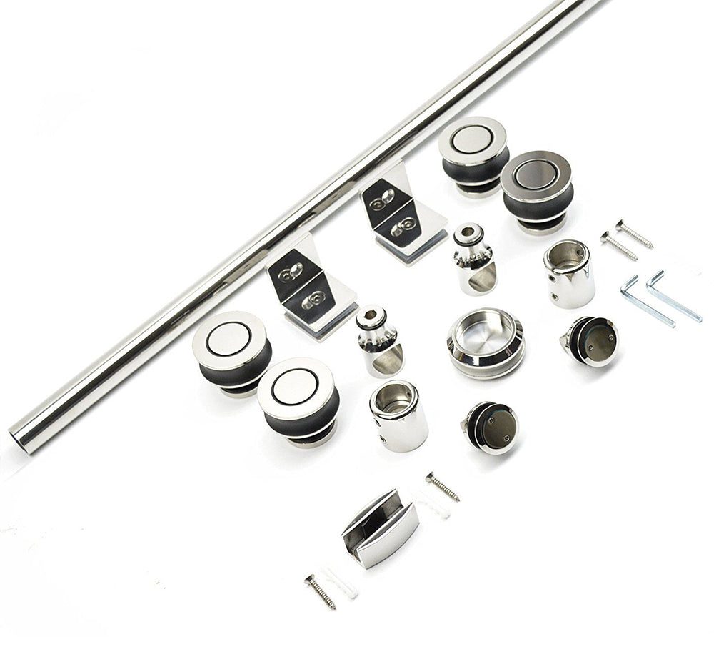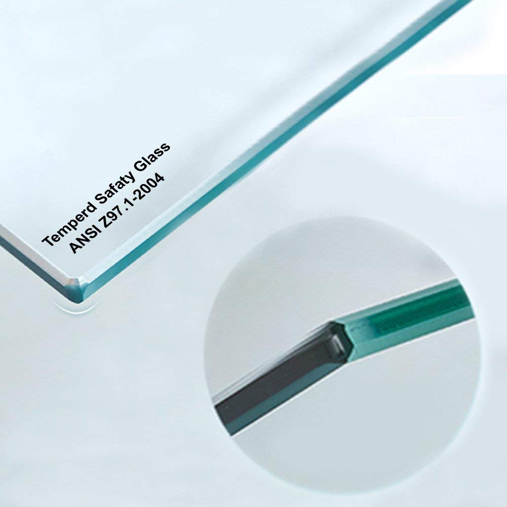 ? [HIGH QUALITY MATERIAL]: 3/8"(10mm) thick tempered safety glass with ANSI Z97.1 certified, for easy cleaning and to resist water spots; Large solid stainless steel rollers creating a quiet, smooth and effortless sliding