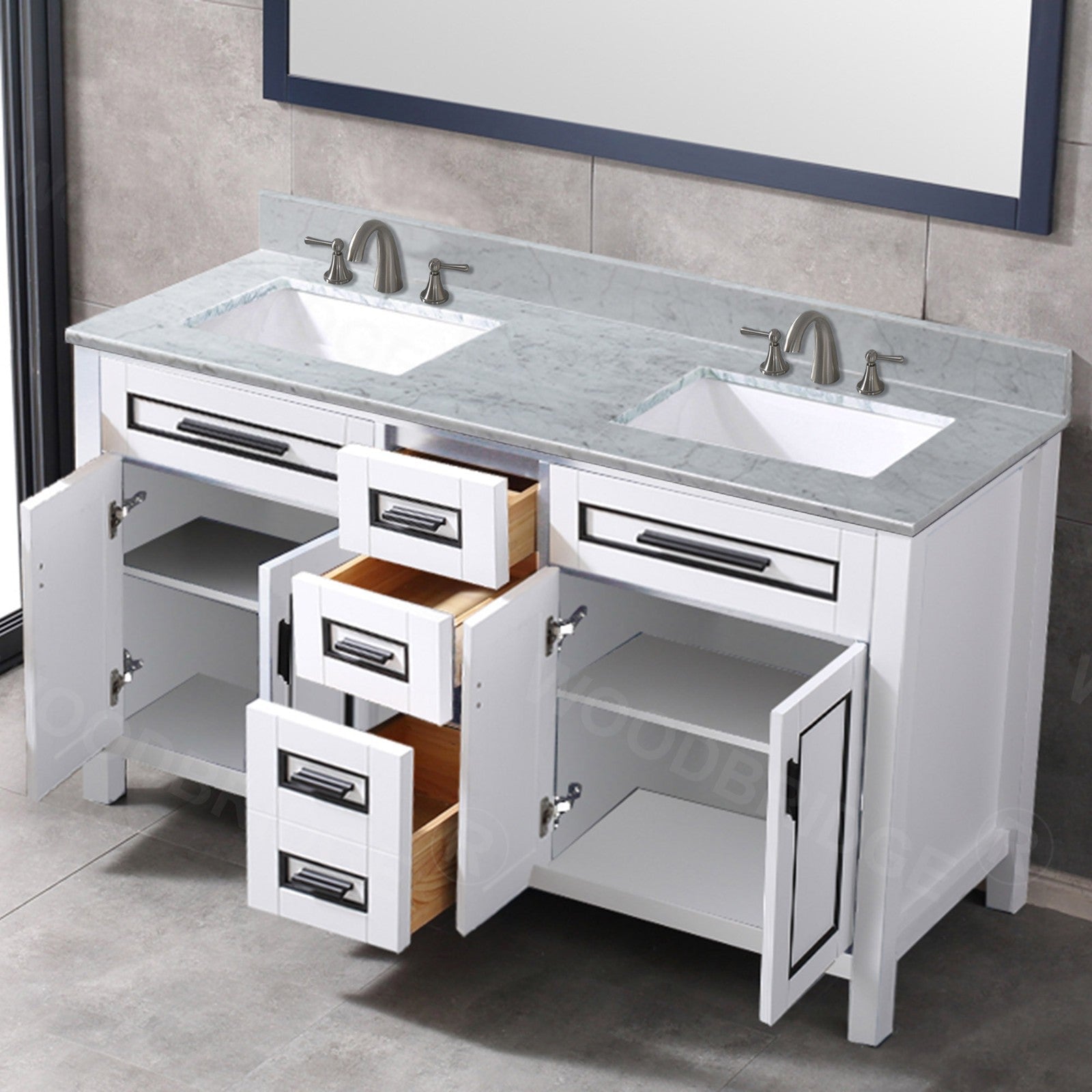 ? [RELIABLE and PERFORMANCE]: Soft-closing hinges and slides on drawers and door ensures to open and close your cabinet in quiet without noise, preventing damage to the sides around it. Dovetail jointed drawers with undercount slide; Black door knobs a perfect match to contemporary bathroom decor. Inside and outside of the cabinet are painted with matching finish of high-quality low-odor paint in layers.