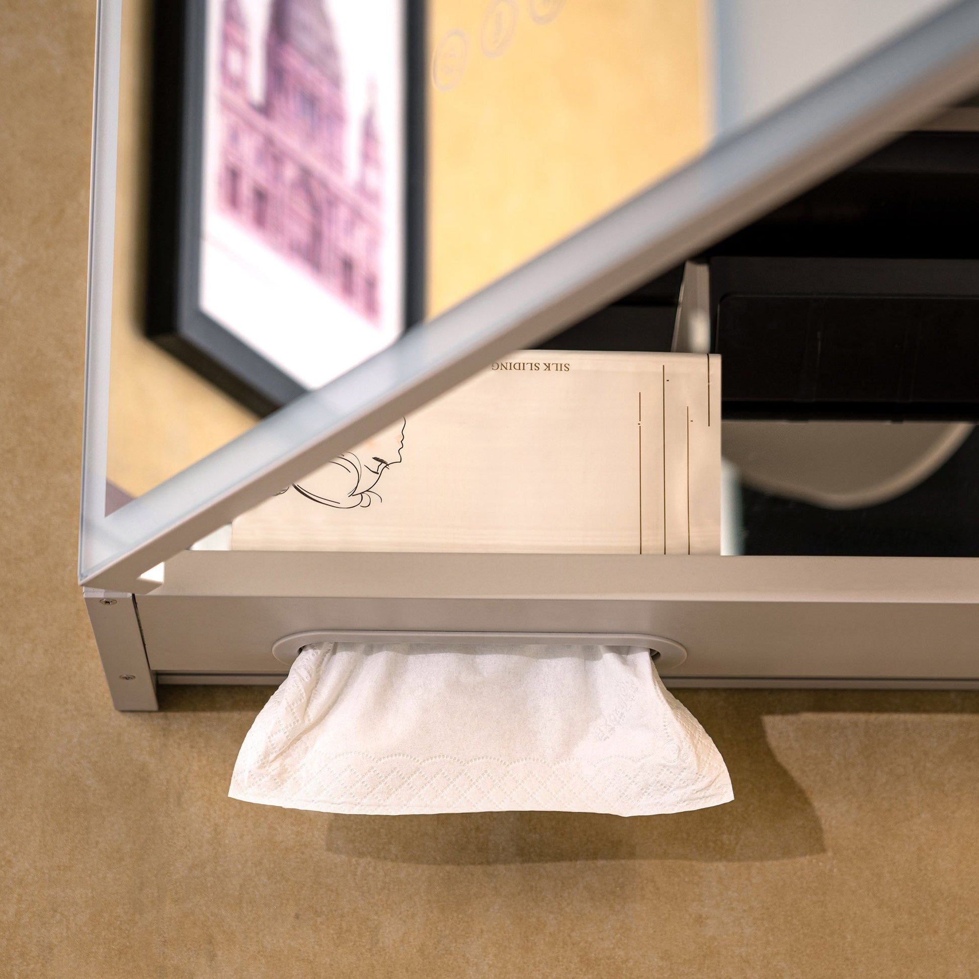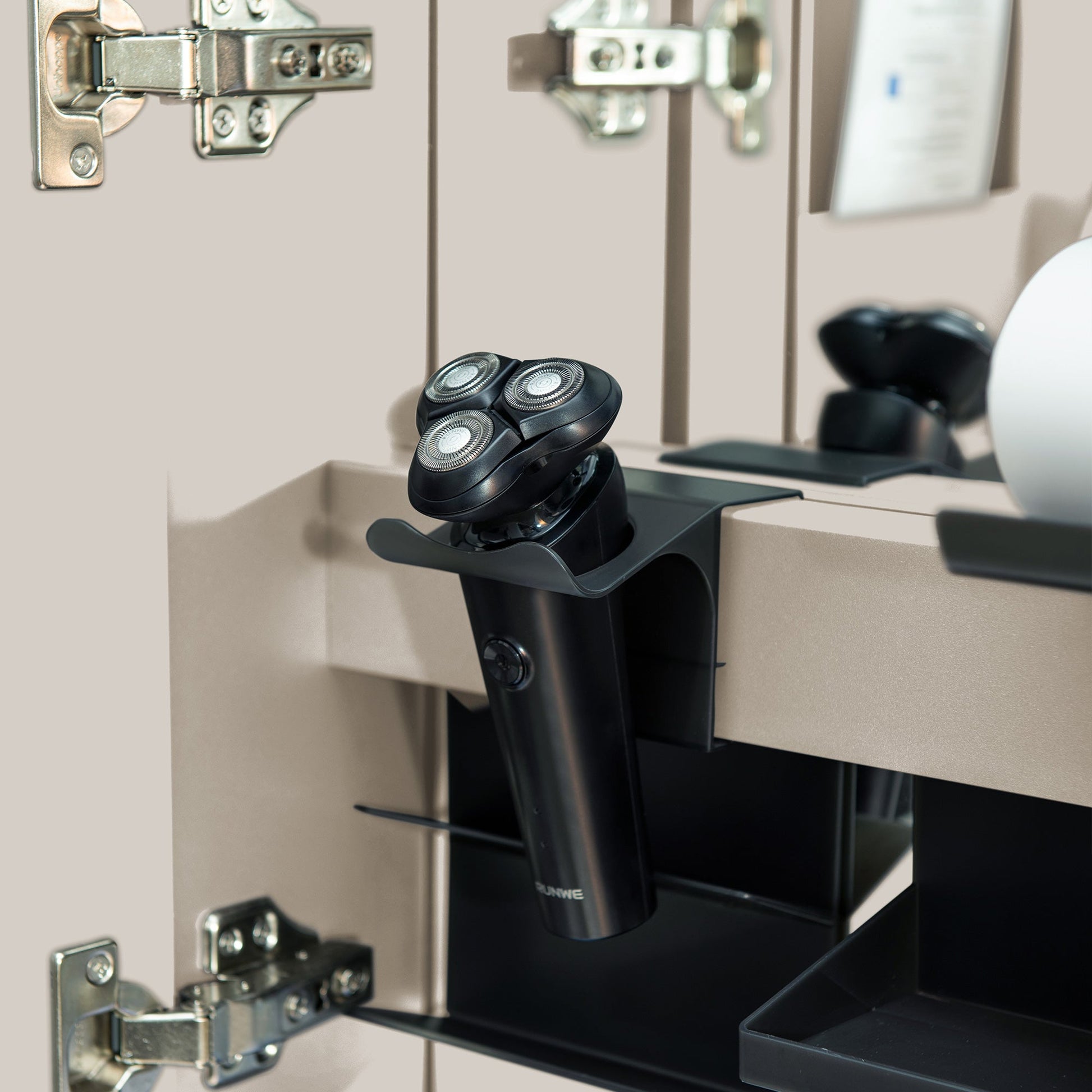 ? [MAGNIFYING MIRROR]: Built-in 3x magnifier slides vertically and rotates horizontally.