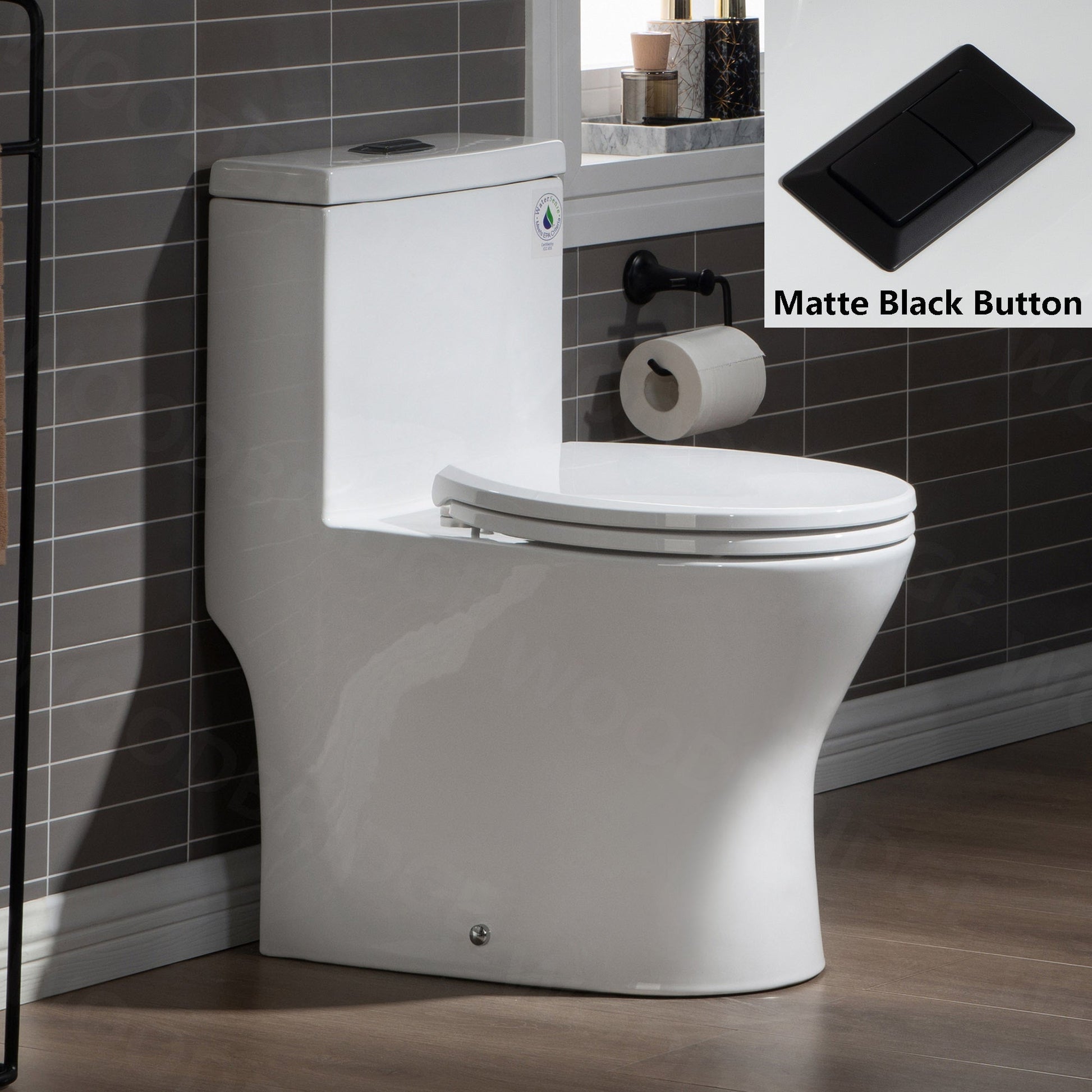 WOODBRIDGE One Piece Short Compact Bathroom Tiny Mini Commode Water Closet Dual Flush Concealed Trapway