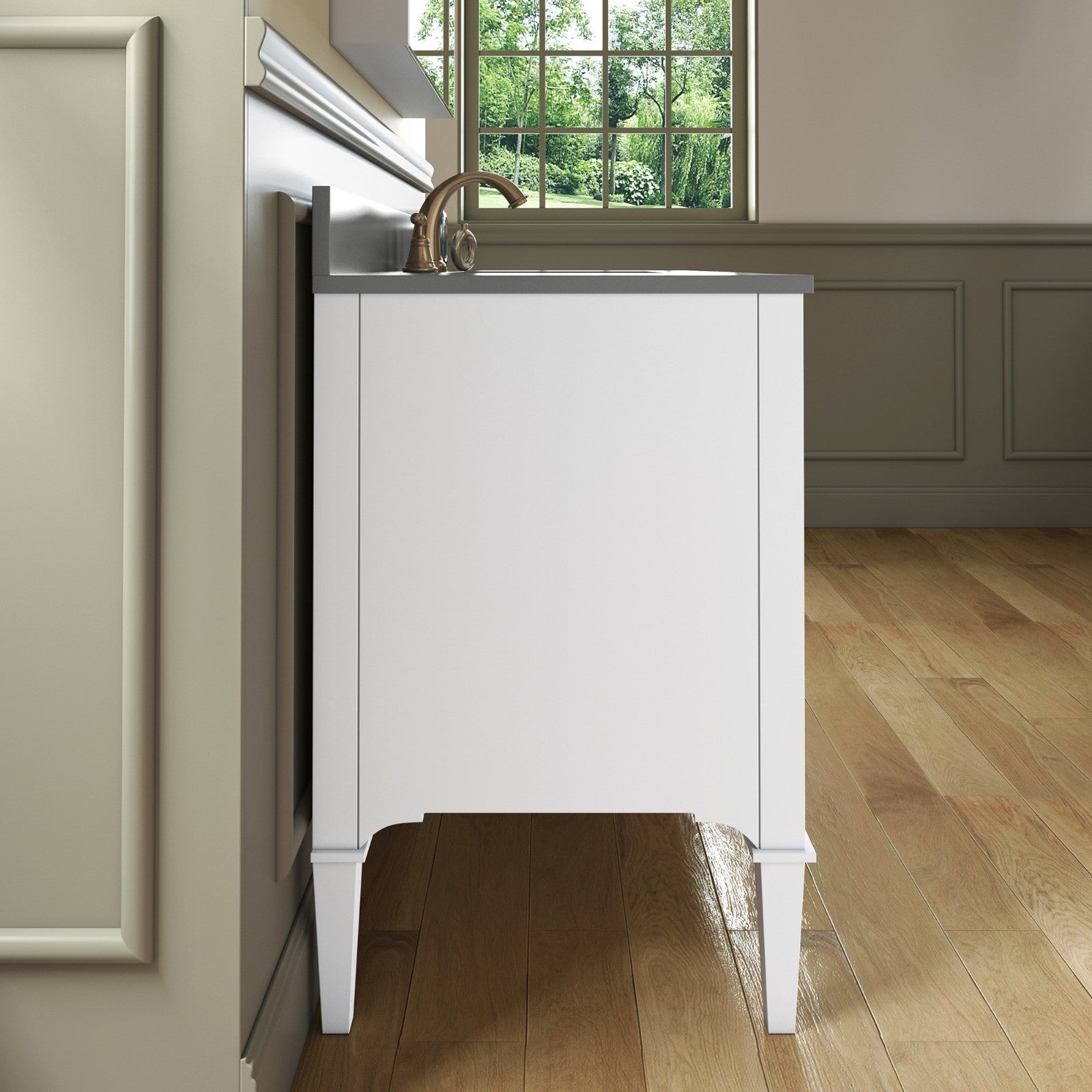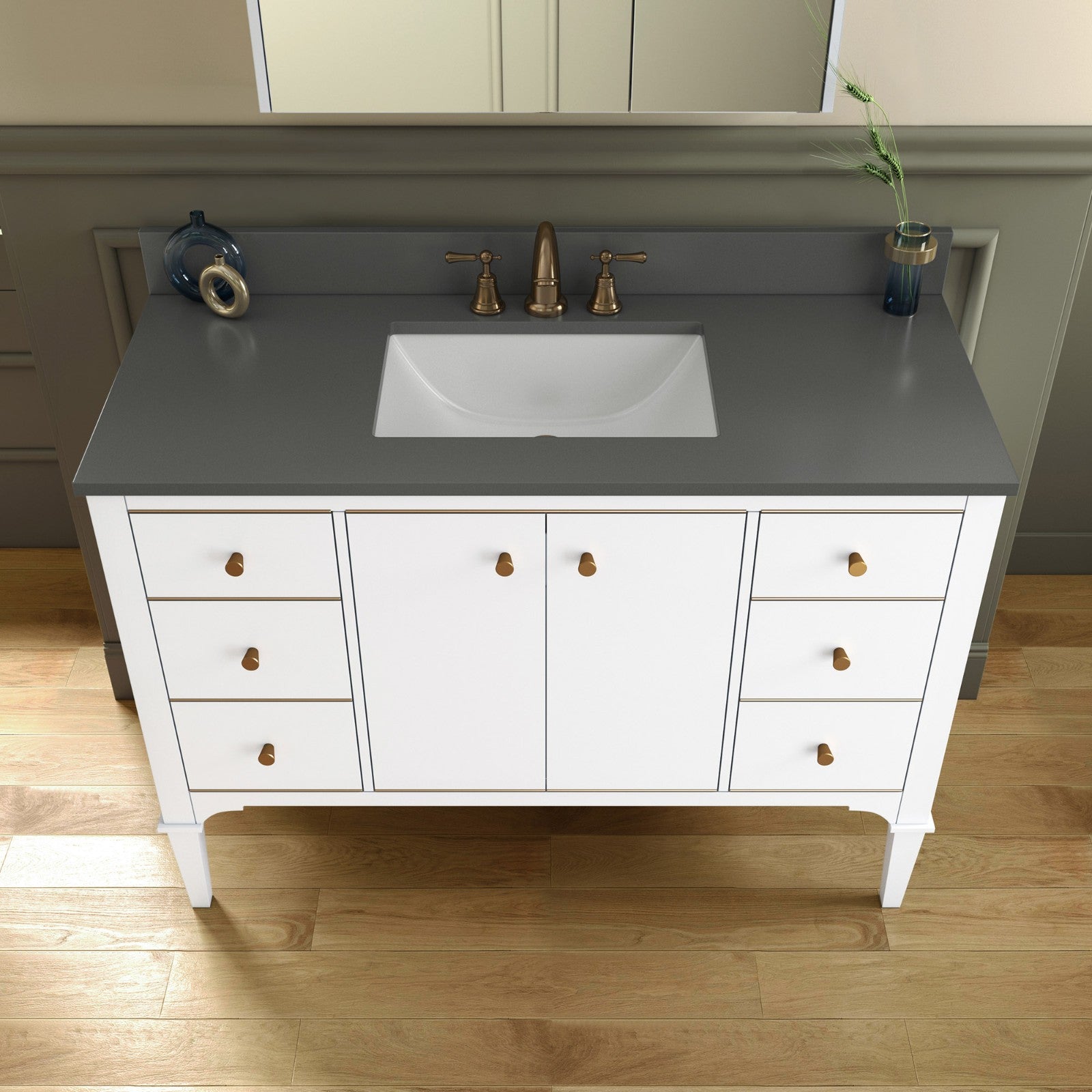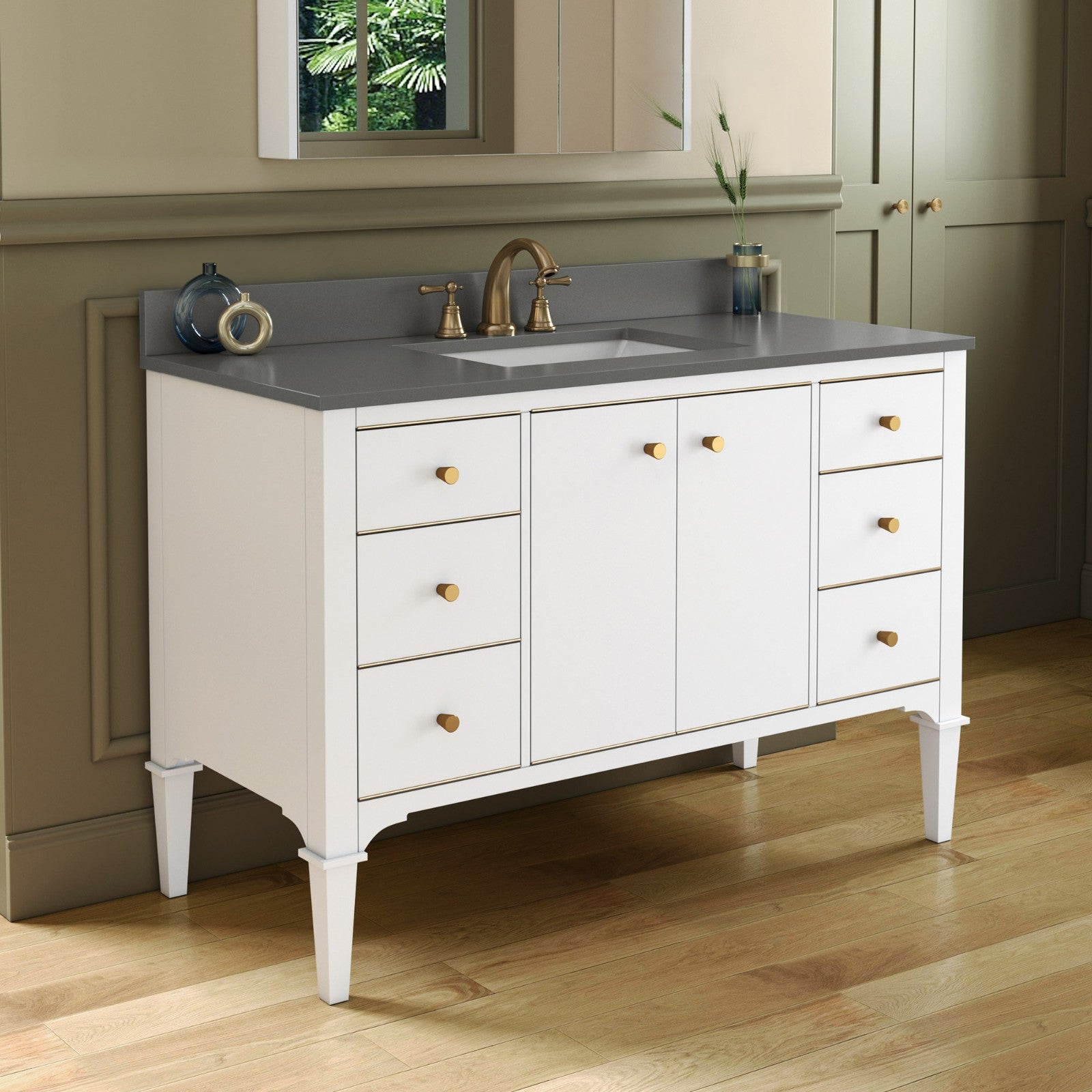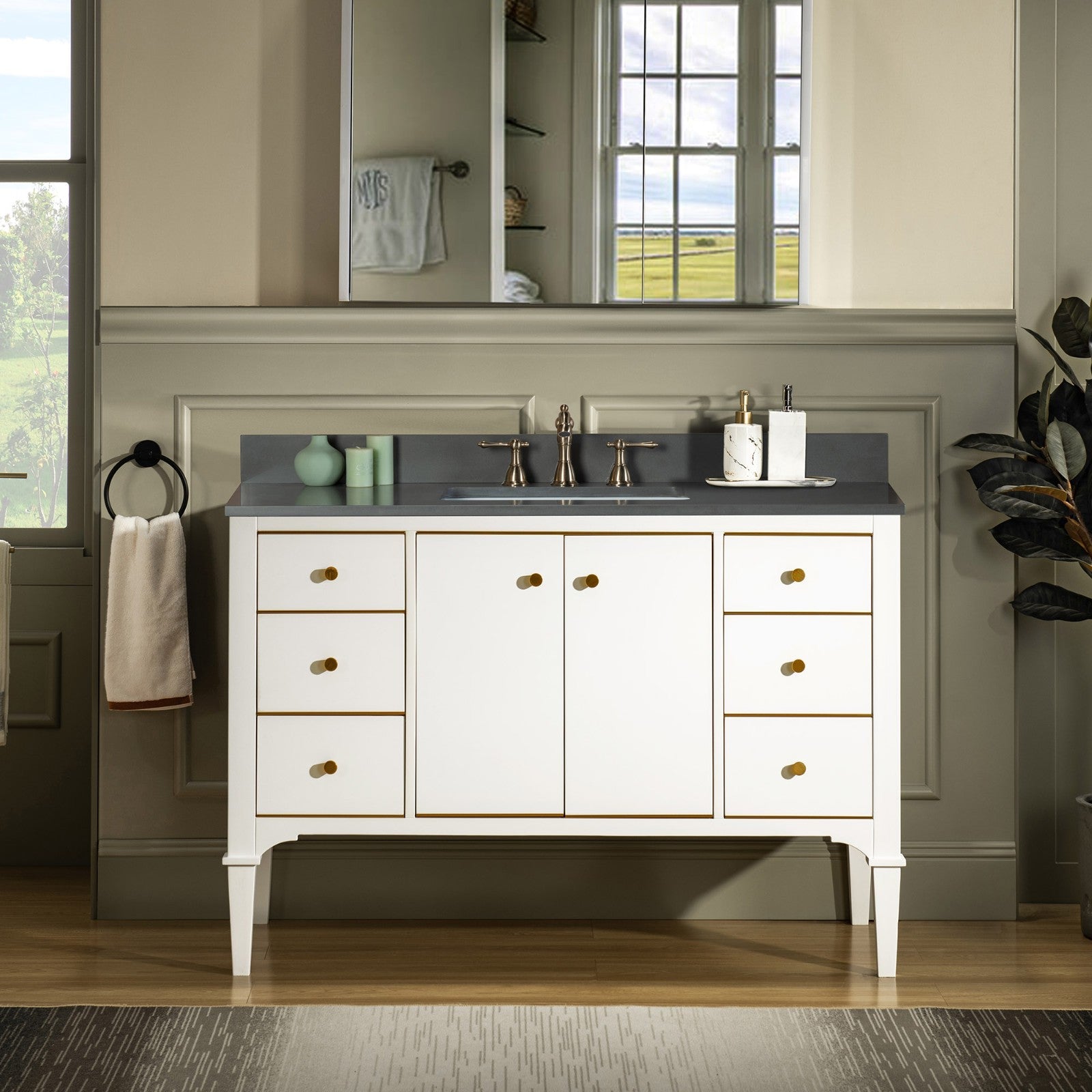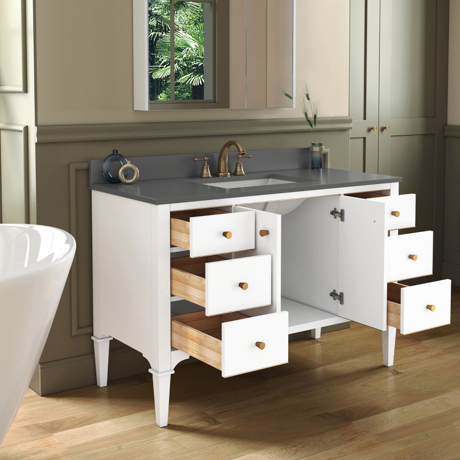 WOODBRIDGE Roma 49"x22"x38" Solid Wood Bath Vanity in White with Gold Hardware and Dark Gray Engineered Stone Composite vanity top with 3 Pre-Drilled Holes, Roma-4821-White+DGVT4922D-8