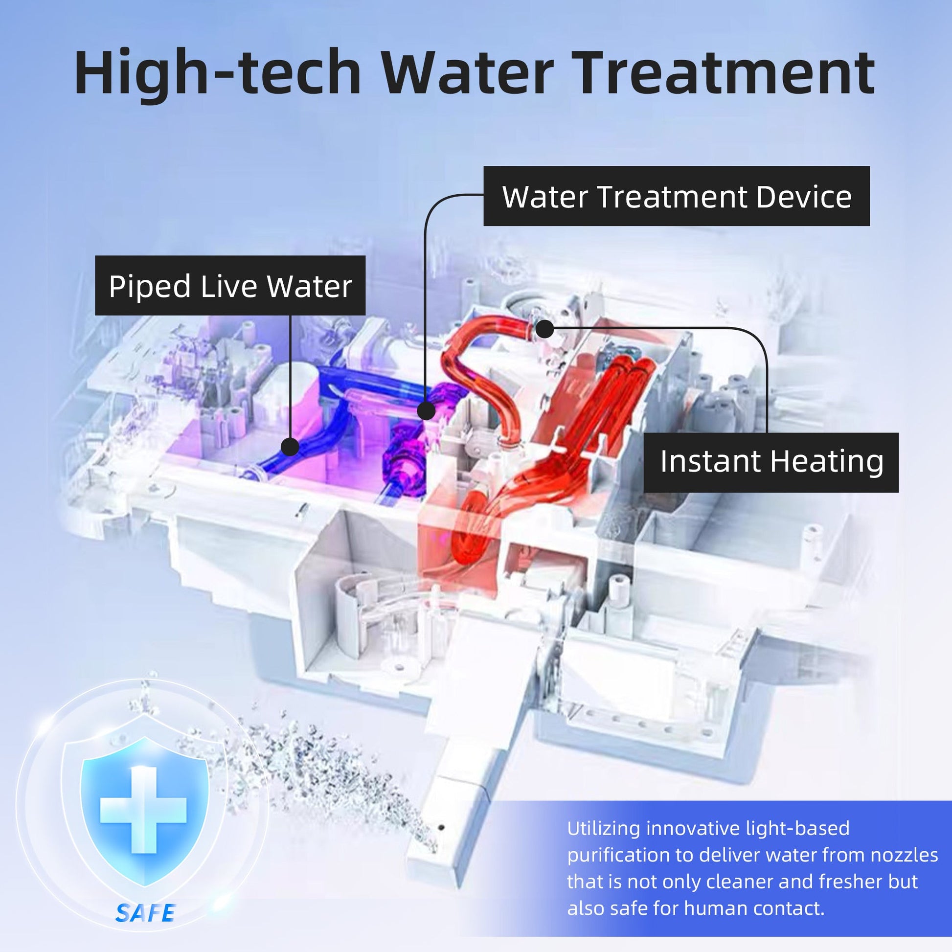 [NEXT-GENERATION LIGHT TECHNOLOGY FOR PURIFIED WATER]: Utilizing innovative light-based purification to deliver water from nozzles that is not only cleaner and fresher but also safe for human contact.