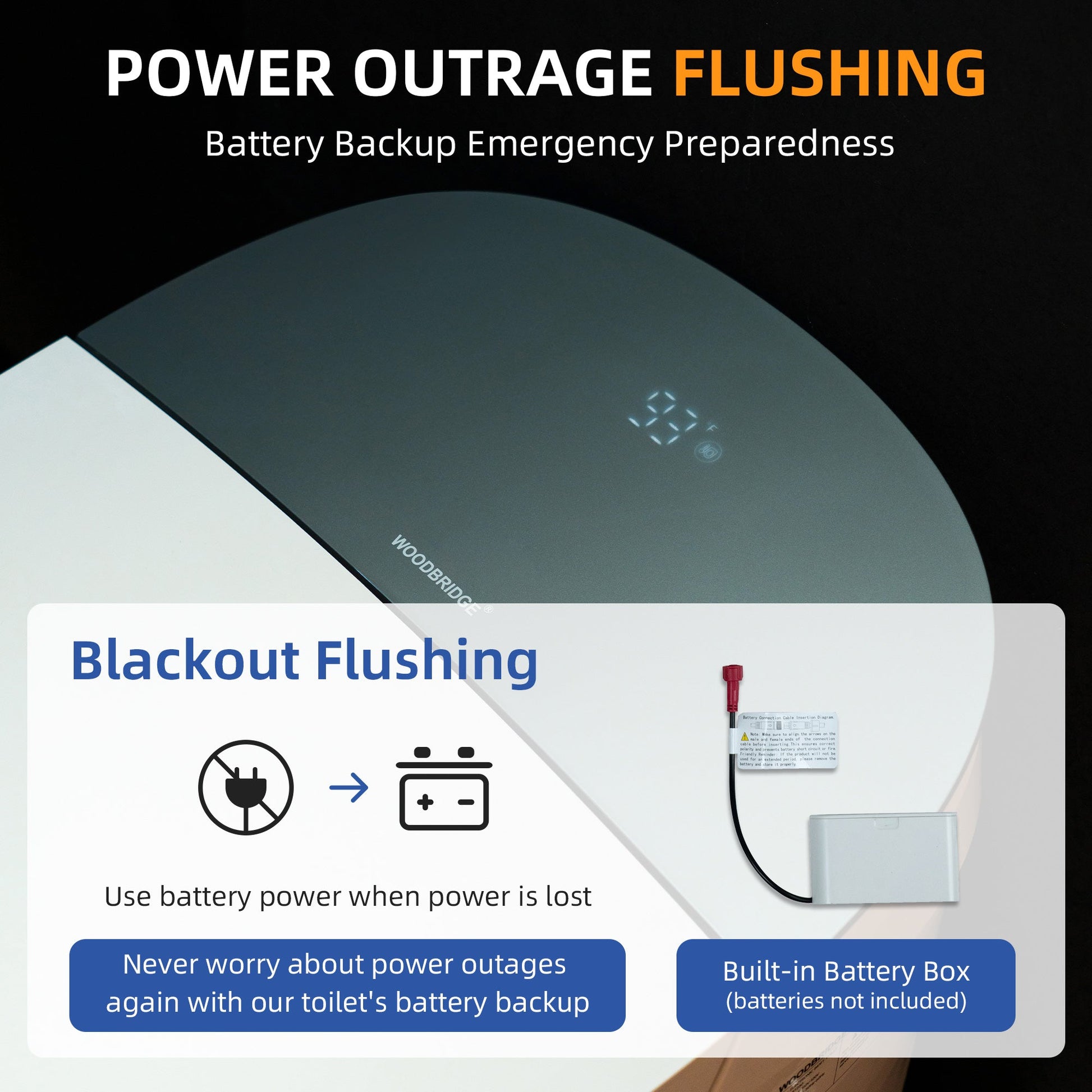 ? [BACKUP MANUAL FLUSH]: Ensures continuous functionality by providing reliable flushing performance even in the event of a power failure.