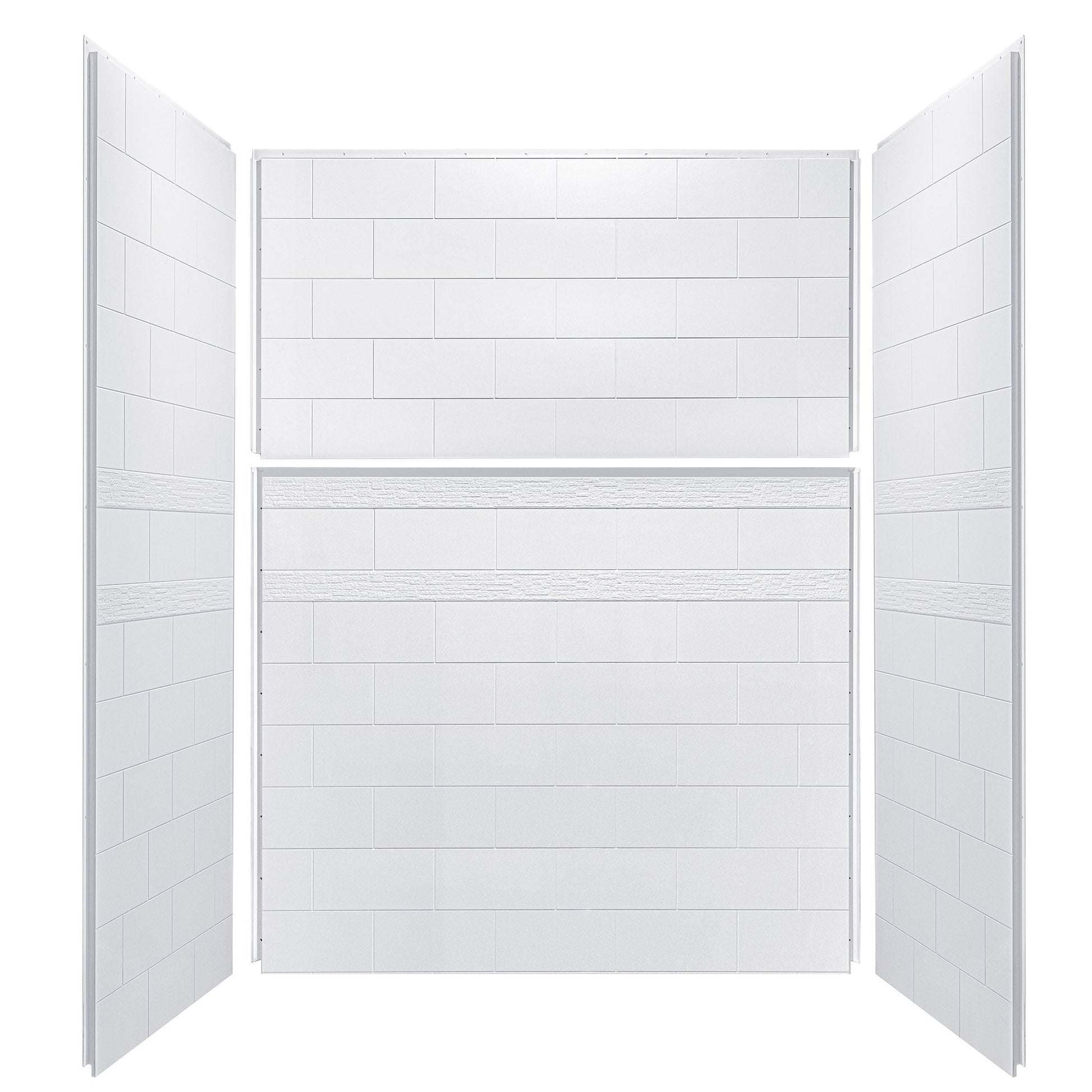 Woodbridge Solid Surface 60" W X 34'' D X 79" H Shower Wall Panel Surround, Two Install Option, Cuttable, Staggered Brick Pattern